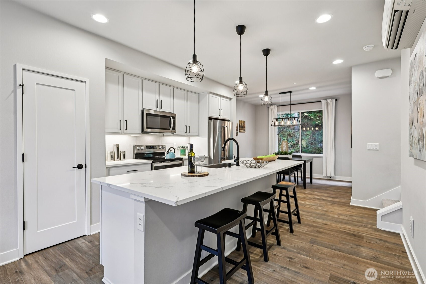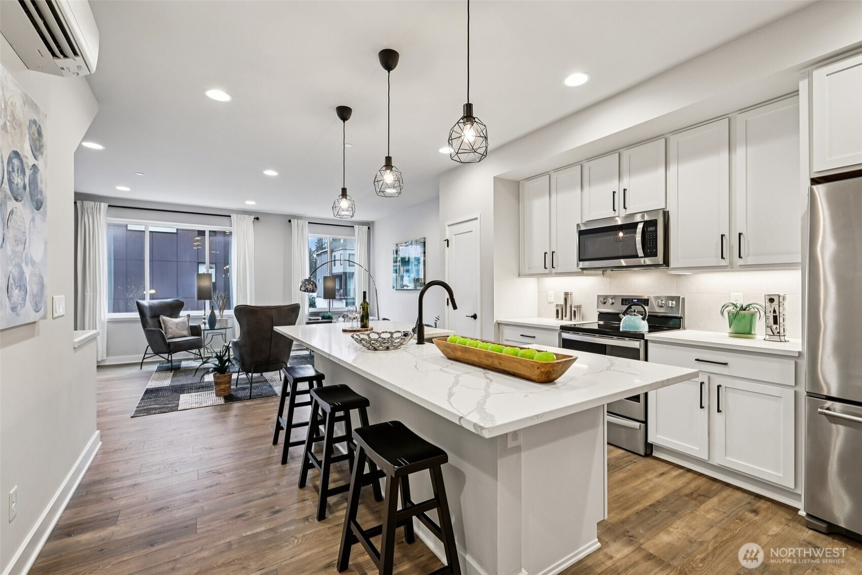 Welcome to this like-new modern townhouse offering a stylish blend of comfort and contemporary design. This home features a thoughtfully designed layout that maximizes both function and style. The bright and open main level showcases a spacious living area that flows seamlessly into the dining space and sleek kitchen, making it ideal for both everyday living and entertaining. Modern finishes, clean lines, and large windows create a light-filled atmosphere throughout the home. Each of the three bedrooms offers privacy and comfort, while the well-appointed kitchen is designed with both form and function in mind, featuring ample cabinetry, contemporary surfaces, and plenty of space to cook and gather. Thoughtful design details and its like-new condition give this home the feel of new construction without the wait. Located in a well-maintained community, the townhouse offers low-maintenance living with easy access to nearby amenities, shopping, dining, and commuter routes. Whether relaxing at home or exploring the surrounding area, this property delivers modern living in a convenient and desirable setting.