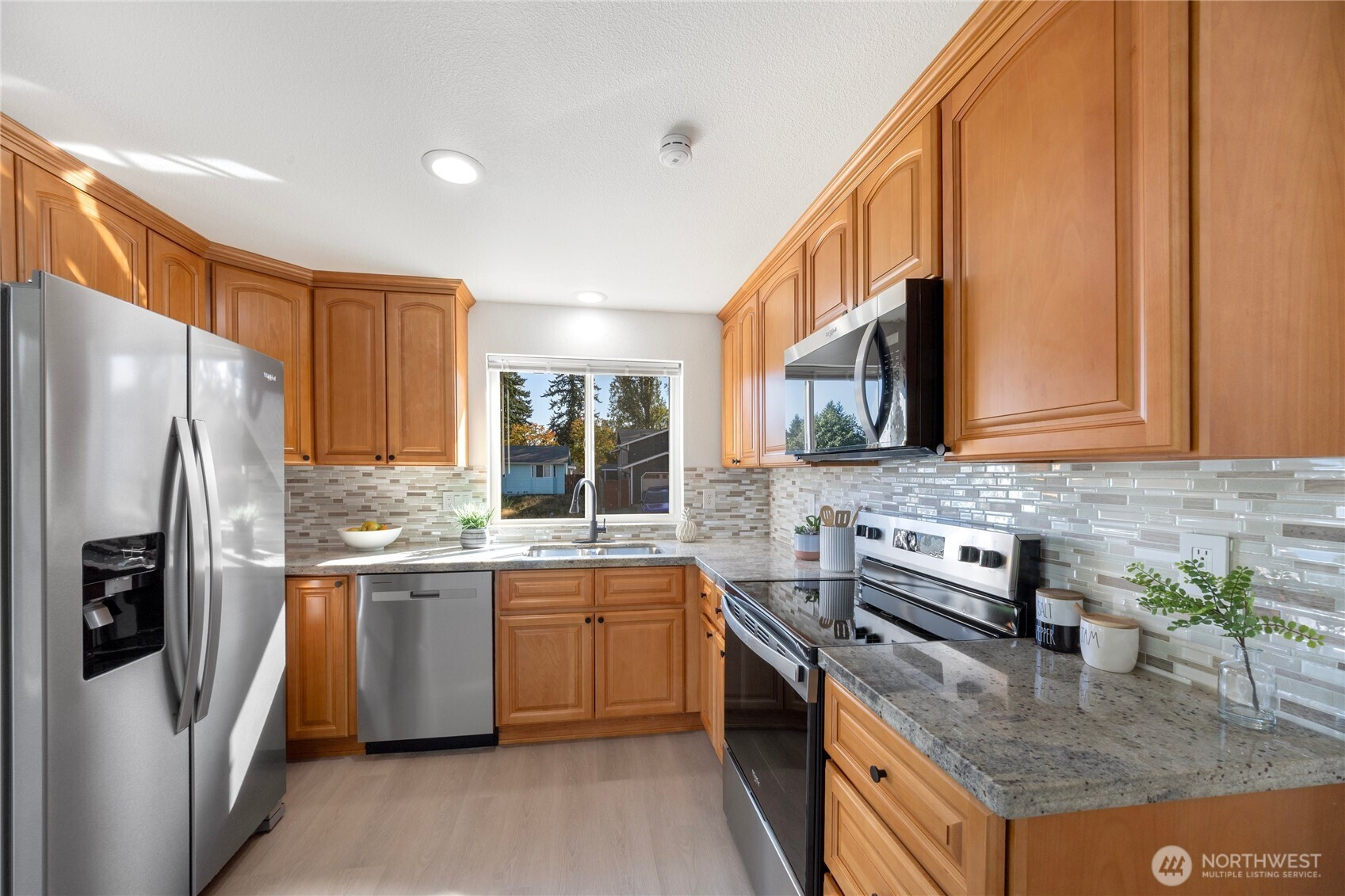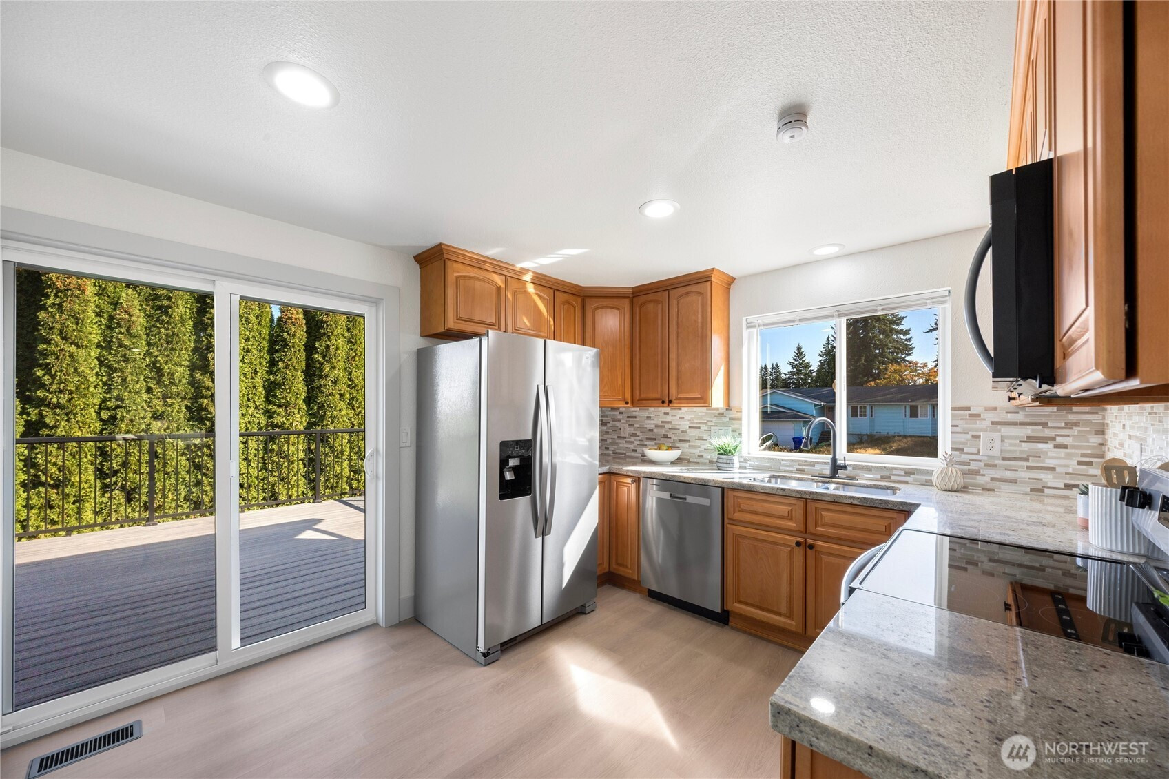 (503) 893-8874In Everett’s enchanting Evergreen community, this renovated Rambler radiates sophistication. A custom front door opens to new Hardiplank siding and a modern roof. Inside, a new furnace, updated hot water heater, newer windows, and air conditioning ensure comfort. The gourmet kitchen dazzles with granite countertops, stainless steel appliances, and glass sliders to a spacious Trex deck. Fresh paint and LVP flooring create a refined ambiance. The primary suite features an opulent ensuite with gold fixtures, walk-in closet, and tiled shower. A restored crawlspace with new insulation ensures durability. In the Mukilteo School District, near Boeing, Paine Field, Everett Mall, I-5, and Hwy 99.