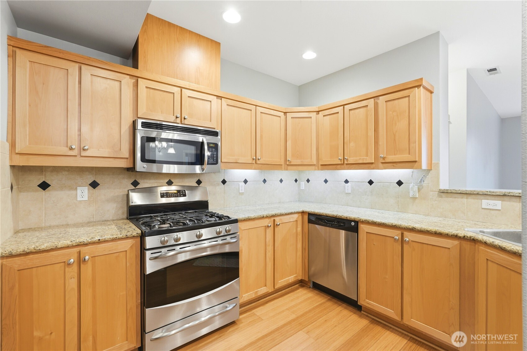 Rare ground-floor opportunity with no stairs and direct access to an attached single car garage! This beautifully designed single-level home offers 2 bedrooms and 1.75 baths with a smart, open floor plan. Bamboo flooring flows through the entry, hallway, kitchen, and living room, creating a warm and cohesive feel. The kitchen features granite countertops, a full tile backsplash, and a gas range, opening seamlessly to the inviting living room with a cozy gas fireplace. An oversized sliding door leads to a large, private patio overlooking a peaceful greenbelt—ideal for relaxing or entertaining. The spacious primary bedroom includes a walk-in closet and an ensuite bath with dual shower heads. Additional highlights include no rental cap and no special assessments, making this an excellent option for both homeowners and investors. Recent updates by the current owners include a new washer and dryer, refrigerator, water heater, primary bathroom fan, carpet in both bedrooms, and updated flooring in the guest bath. Two air conditioning units are also included and can be conveniently controlled via an app for year-round comfort.