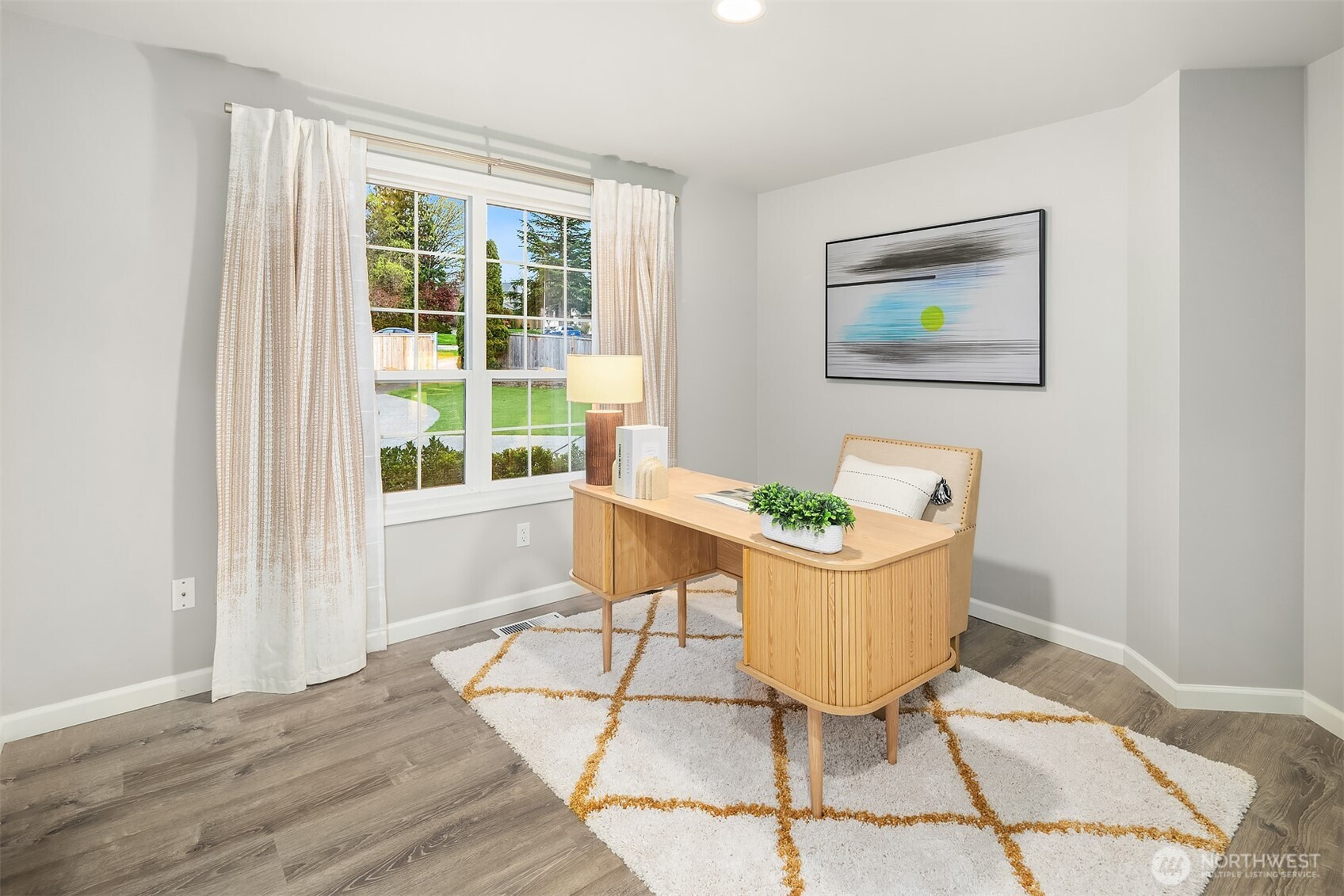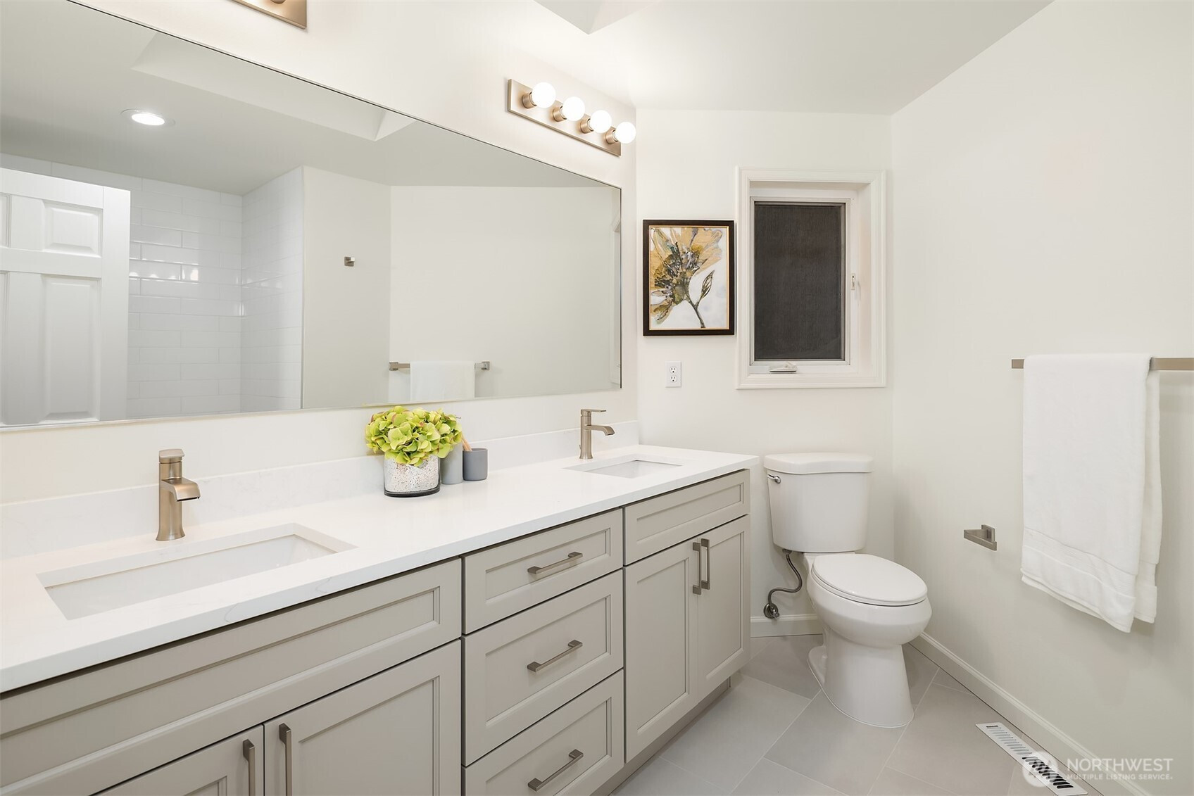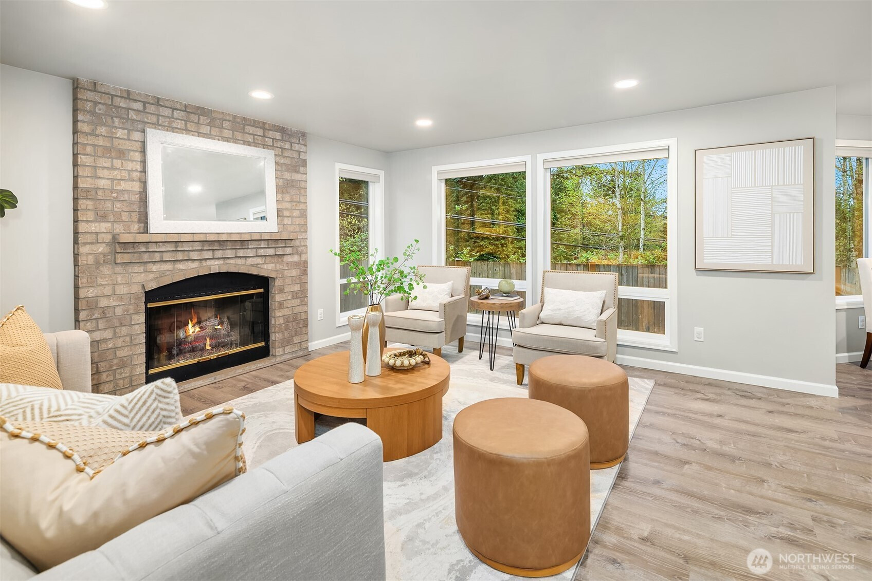 Better than new! Welcome to this beautifully updated Murray Franklin resale nestled in a quiet cul-de-sac in a desirable Bothell neighborhood. Located in the top-rated Northshore School District, this 4-bedroom + bonus, 2.5-bath home offers a thoughtfully designed and highly functional floor plan with elegant upgrades throughout, including brand new bathroom flooring, vanities, quartz vanity tops, and hardware. The inviting living room features soaring vaulted ceilings that fill the space with natural light, while a dedicated main-floor office provides the perfect work-from-home setup. The renovated gourmet kitchen is a true centerpiece, designed for both everyday living and entertaining. Upstairs, you’ll find four spacious bedrooms, including a generously sized primary suite with a well-appointed 5-piece ensuite bath. Situated on a large, level lot, the fully fenced yard offers privacy and plenty of room to relax, play, and enjoy the best of Pacific Northwest outdoor living, with a sprinkler system for added ease of maintenance. Just minutes from downtown Bothell’s vibrant shops, parks and restaurants, I-405, and the highly regarded Northshore schools.