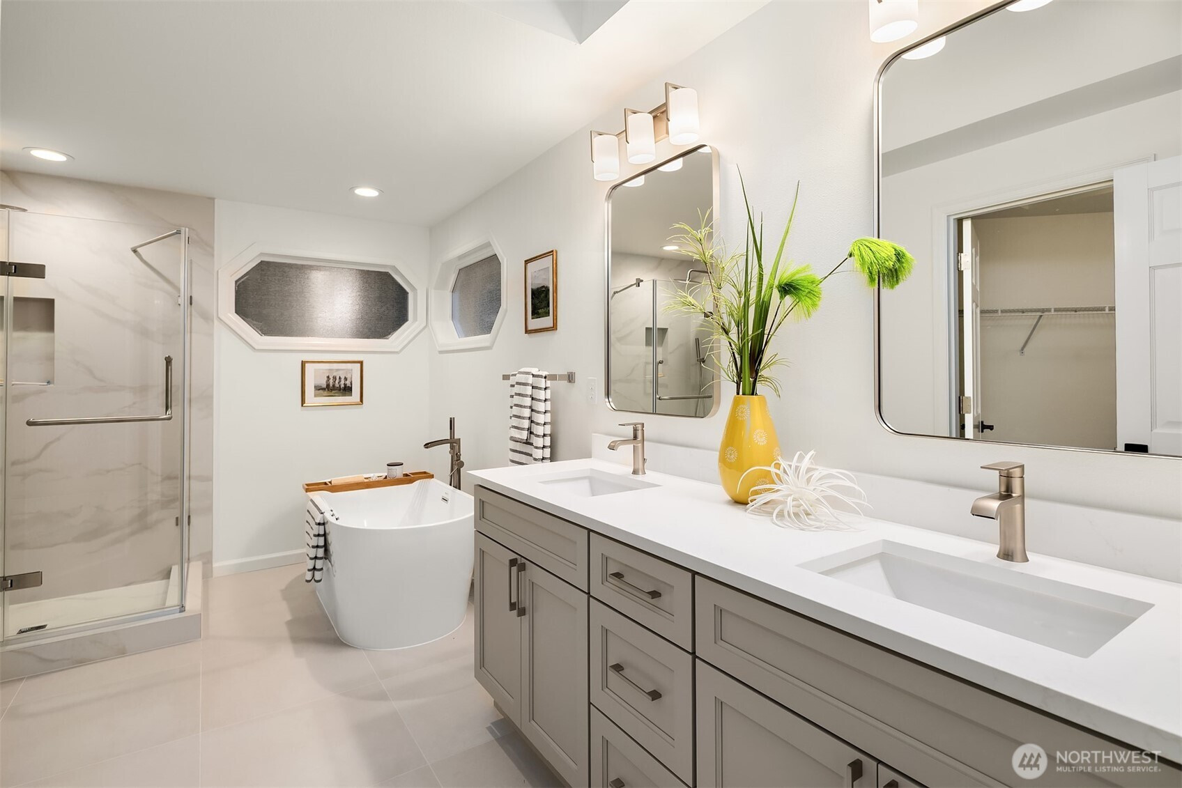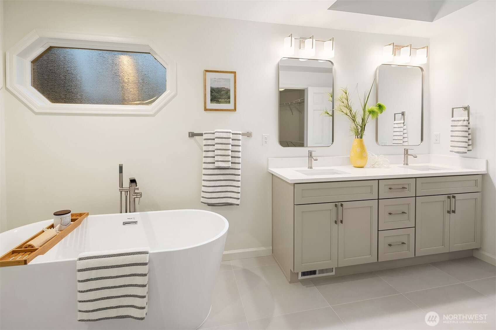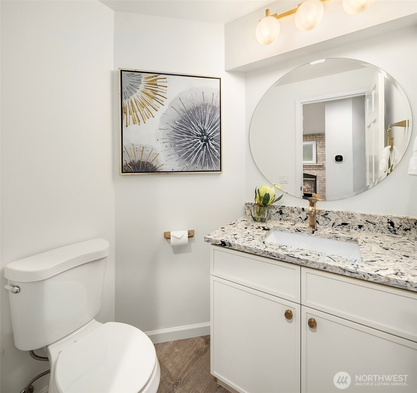 Better than new! Welcome to this beautifully updated Murray Franklin resale nestled in a quiet cul-de-sac in a desirable Bothell neighborhood. Located in the top-rated Northshore School District, this 4-bedroom + bonus, 2.5-bath home offers a thoughtfully designed and highly functional floor plan with elegant upgrades throughout, including brand new bathroom flooring, vanities, quartz vanity tops, and hardware. The inviting living room features soaring vaulted ceilings that fill the space with natural light, while a dedicated main-floor office provides the perfect work-from-home setup. The renovated gourmet kitchen is a true centerpiece, designed for both everyday living and entertaining. Upstairs, you’ll find four spacious bedrooms, including a generously sized primary suite with a well-appointed 5-piece ensuite bath. Situated on a large, level lot, the fully fenced yard offers privacy and plenty of room to relax, play, and enjoy the best of Pacific Northwest outdoor living, with a sprinkler system for added ease of maintenance. Just minutes from downtown Bothell’s vibrant shops, parks and restaurants, I-405, and the highly regarded Northshore schools.