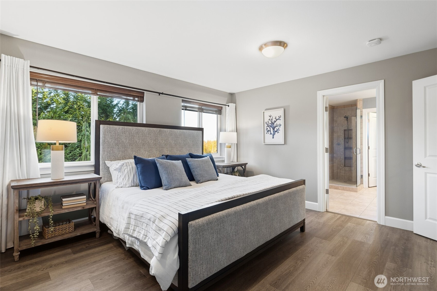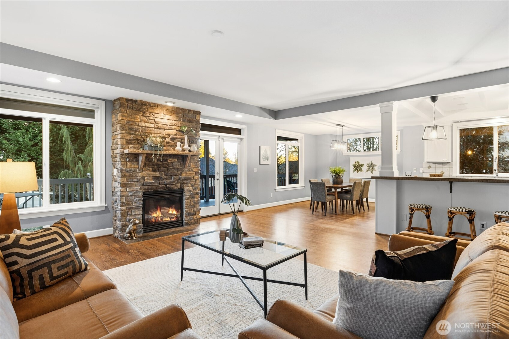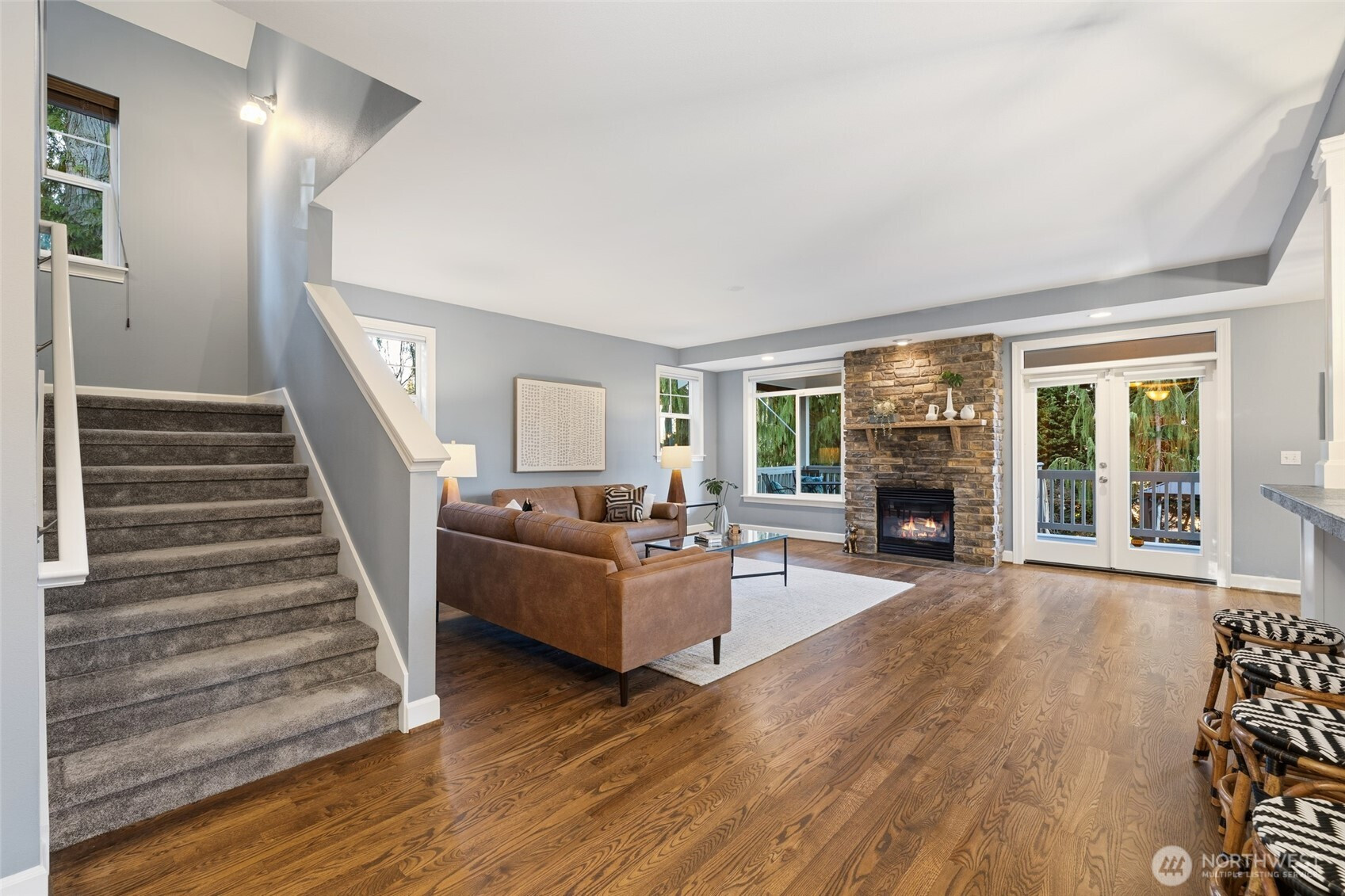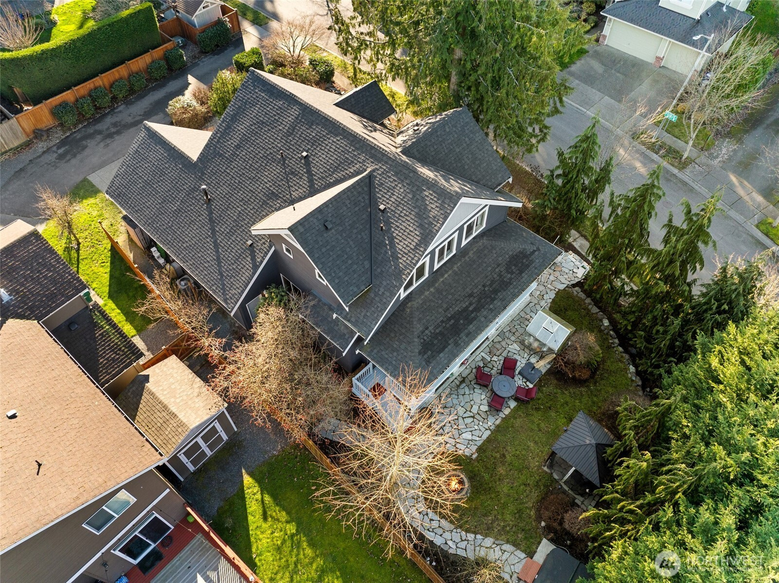 Set on a corner lot with a private, retreat-like feel, this 3-bedroom, 2.5-bath home offers 2,501 square feet designed for both everyday comfort and effortless entertaining. Light-filled living and dining spaces flow seamlessly, creating an inviting atmosphere for gatherings large or small. The kitchen connects naturally to the main living areas, making it easy to cook, host, and stay engaged all at once. Step outside to a spacious covered back deck that extends your living space year-round—perfect for outdoor dining, relaxing evenings, or weekend get-togethers. An included hot tub adds a spa-like touch, while dedicated garden space invites you to plant, grow, and enjoy the outdoors at your own pace. The corner lot enhances privacy and usability, offering room to spread out without sacrificing convenience. Upstairs, well-proportioned bedrooms and baths provide flexibility for guests, work-from-home needs, or hobbies. Recent updates include a newer roof, water heater, and air conditioning, offering added peace of mind and comfort. Ideally located with easy access to both I-5 and I-405, this home combines privacy, functionality, and connectivity—supporting a lifestyle that balances indoor ease with outdoor enjoyment.