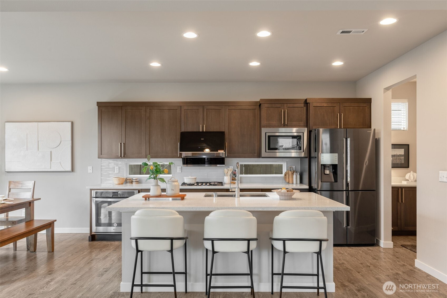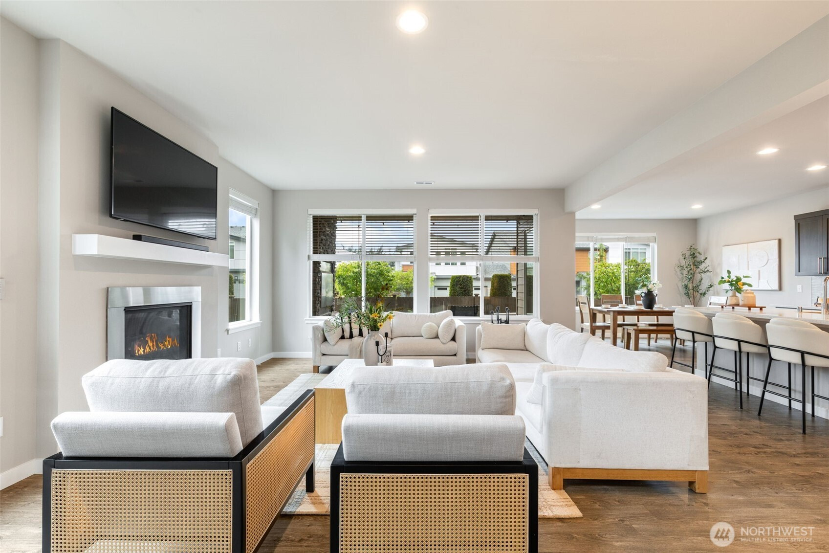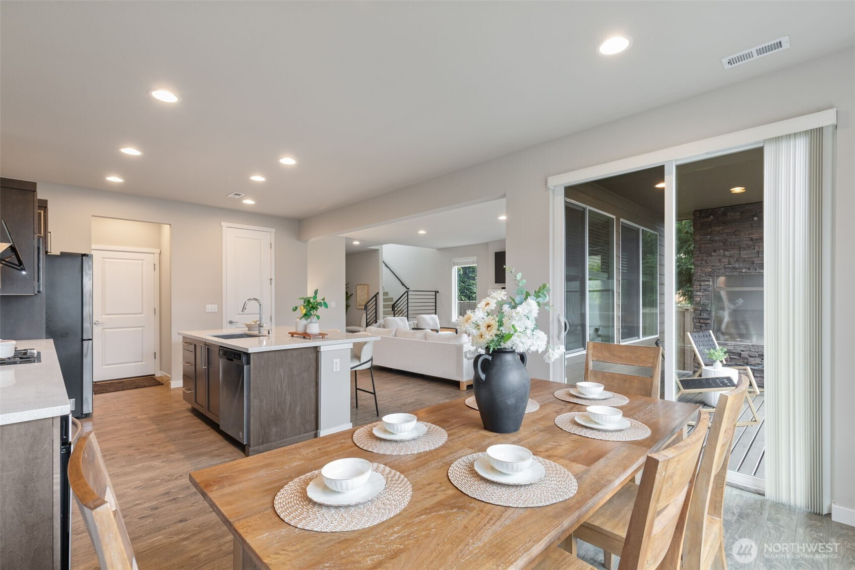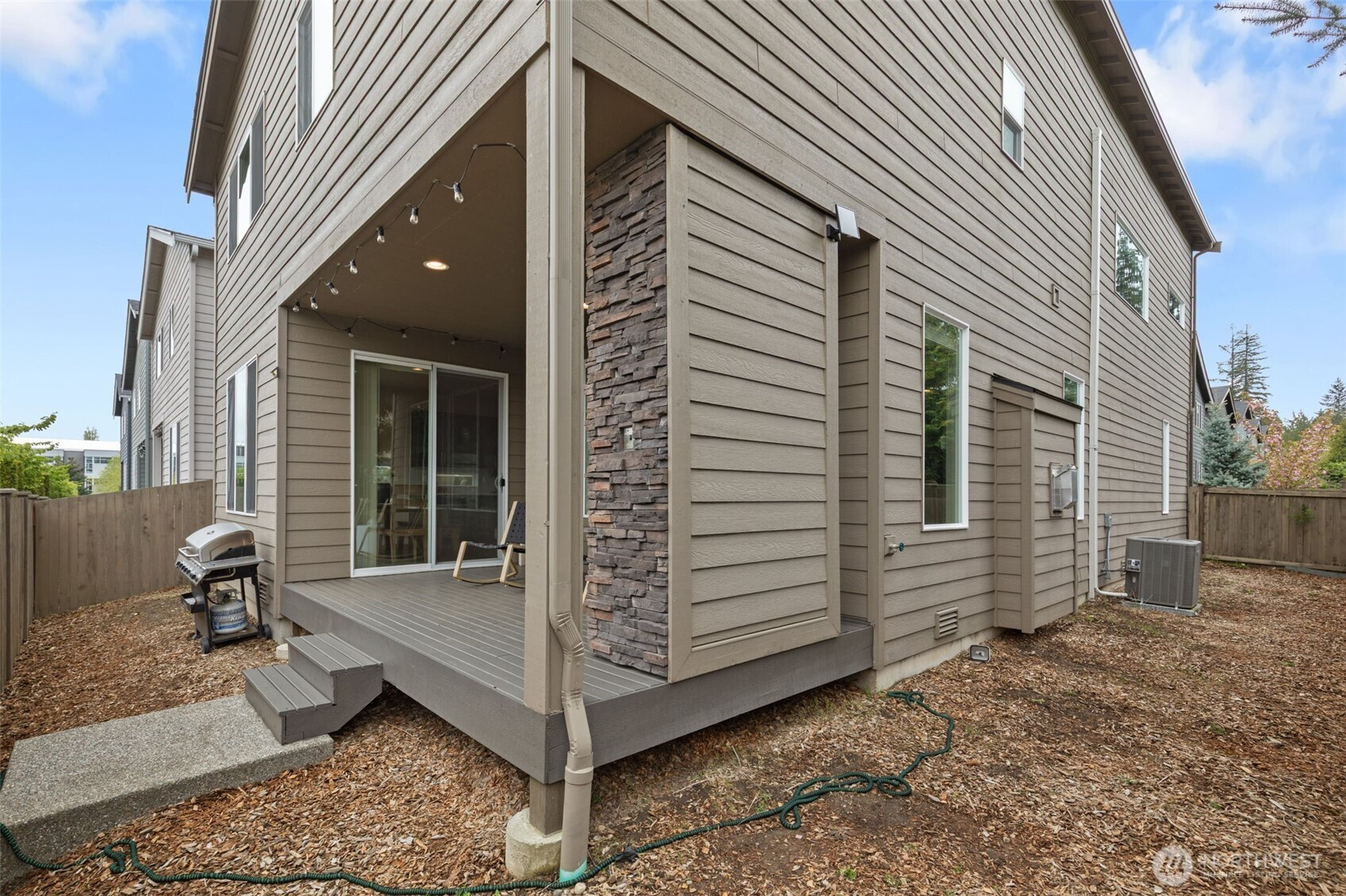 Ideally positioned on a corner lot at the end of a quiet road, this north-facing resale in Bear Creek Heights offers a rare blend of privacy, natural light, and the charm of an established community. Built in 2017, the home features a versatile and well-balanced floor plan designed for modern living, complete with central A/C for year-round comfort. The main level showcases an open-concept layout anchored by a chef’s kitchen and a warm, inviting great room with fireplace, flowing effortlessly to a covered patio and low-maintenance backyard—perfect for both everyday living and entertaining. Upstairs, a sun-filled loft-style bonus room with 10-foot ceilings provides flexible space for a home office, media room, or play area, while the spacious primary suite includes a five-piece bath, complemented by three additional bedrooms and a well-sized laundry room with utility sink. Located within the highly rated Northshore School District, with easy access to North Creek High School, nearby parks, and just minutes to shopping, dining, Costco, and major commute routes.
