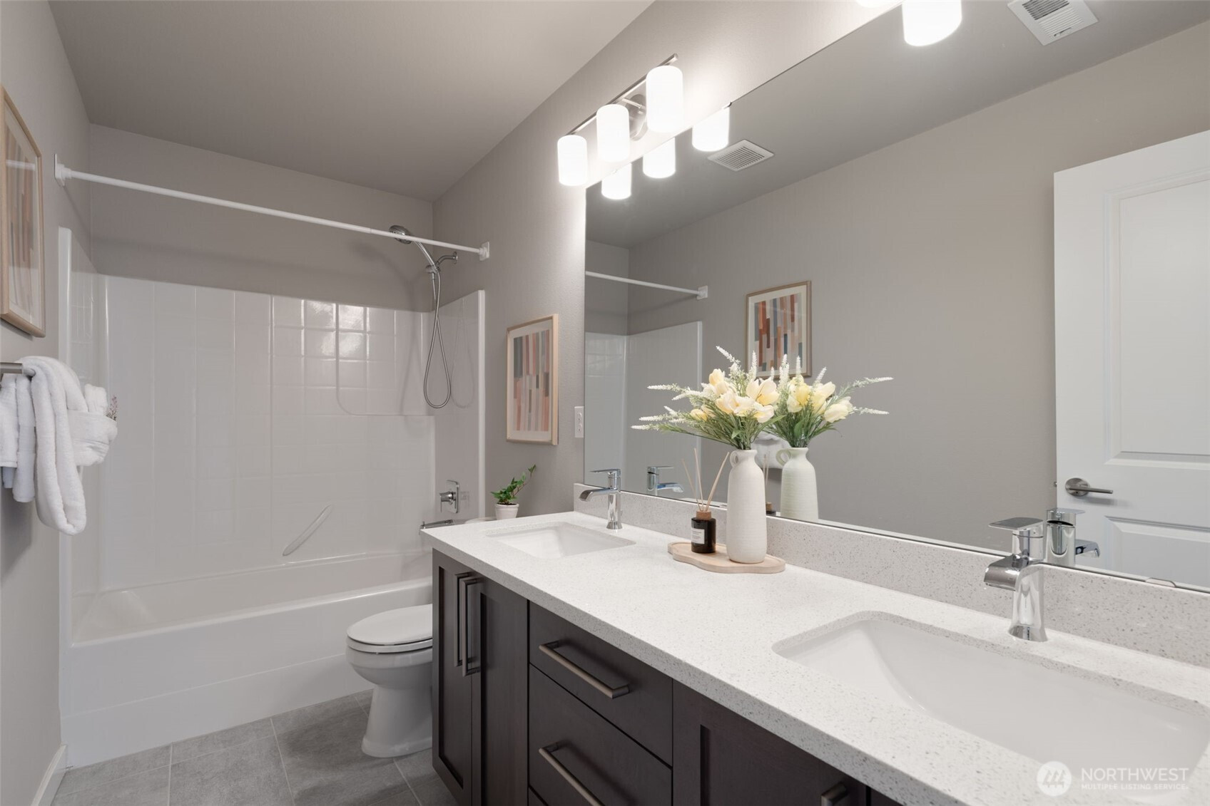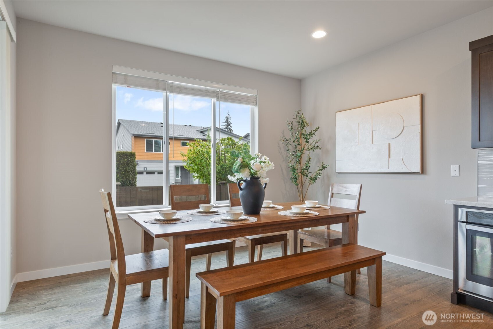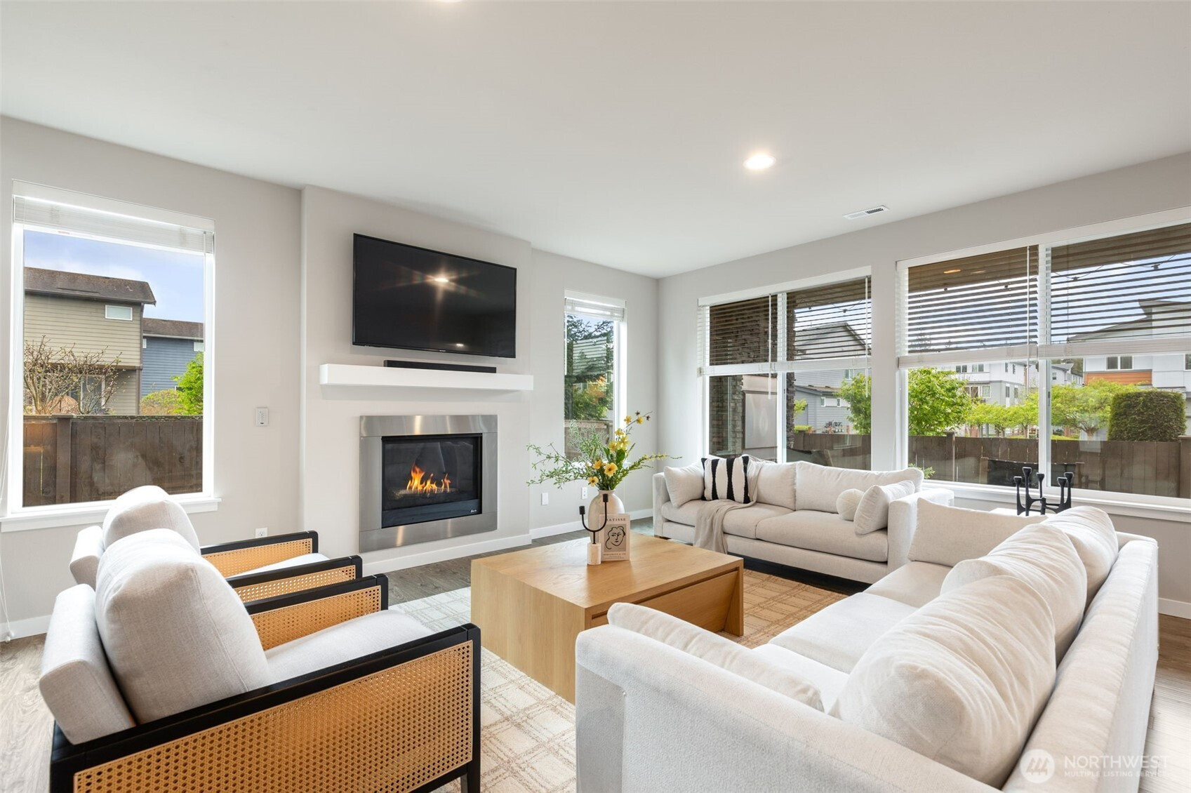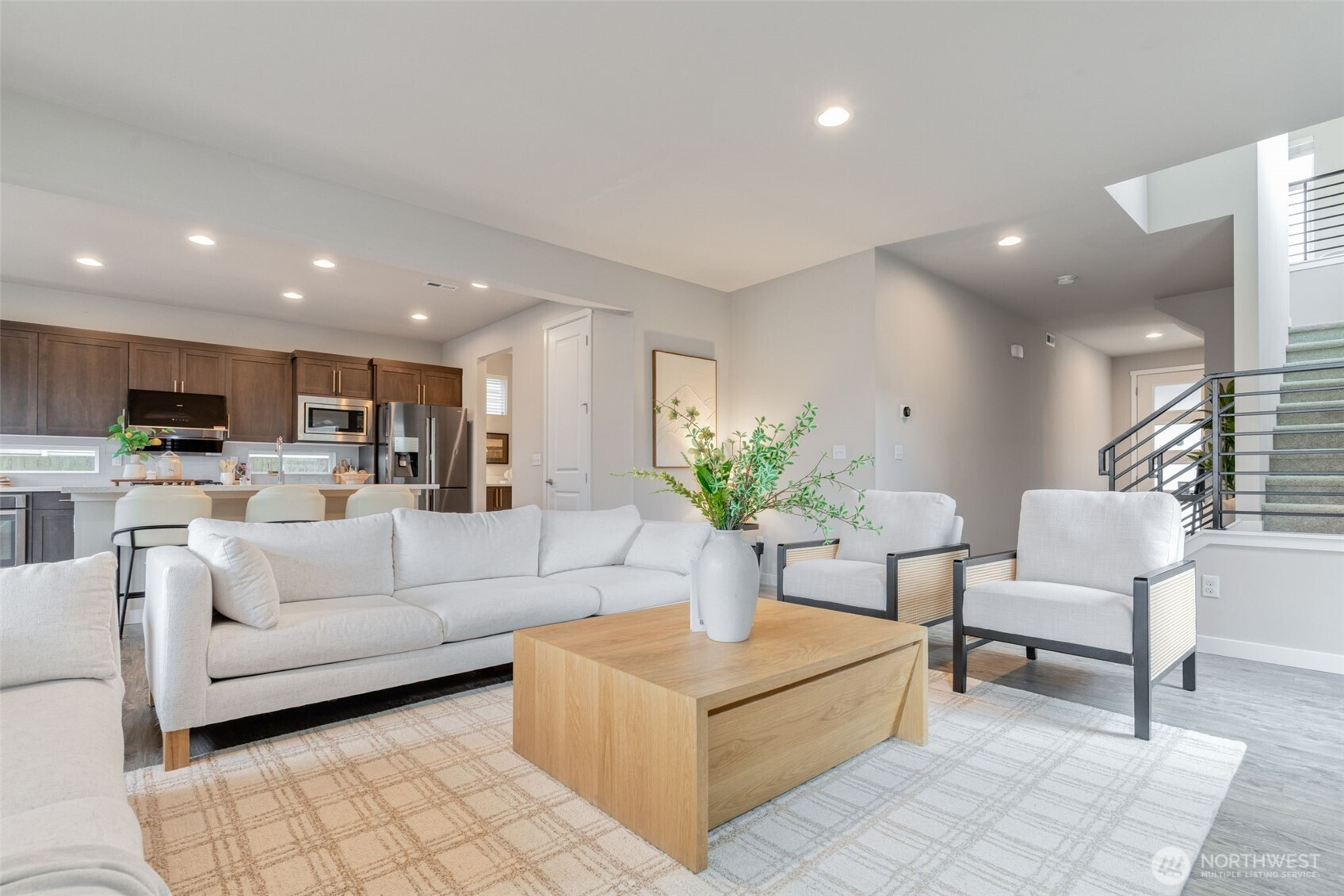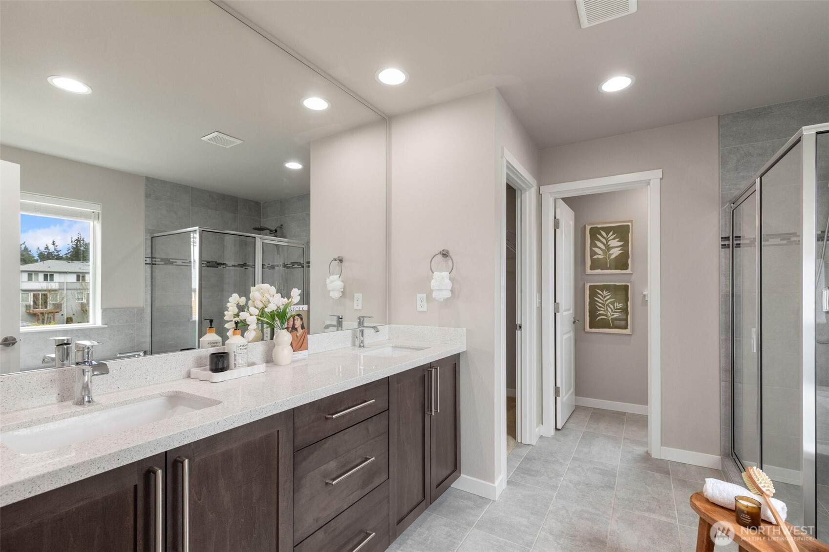 Ideally positioned on a corner lot at the end of a quiet road, this north-facing resale in Bear Creek Heights offers a rare blend of privacy, natural light, and the charm of an established community. Built in 2017, the home features a versatile and well-balanced floor plan designed for modern living, complete with central A/C for year-round comfort. The main level showcases an open-concept layout anchored by a chef’s kitchen and a warm, inviting great room with fireplace, flowing effortlessly to a covered patio and low-maintenance backyard—perfect for both everyday living and entertaining. Upstairs, a sun-filled loft-style bonus room with 10-foot ceilings provides flexible space for a home office, media room, or play area, while the spacious primary suite includes a five-piece bath, complemented by three additional bedrooms and a well-sized laundry room with utility sink. Located within the highly rated Northshore School District, with easy access to North Creek High School, nearby parks, and just minutes to shopping, dining, Costco, and major commute routes.