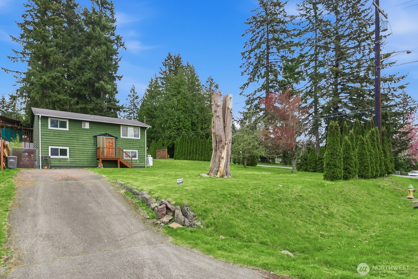 GREAT LOCATION & GREAT OPPORTUNITY! The possibilities for this property are endless... fix, rent, flip, develop...so many options! This well-designed split-level gem, located on a sprawling corner lot, is a diamond in the rough. It has great bones with great potential & possible investment opportunity. Sitting on .25 acre, the value may be in the land as this coveted area of Lake Stevens is currently going through a lot of growth. The home’s main level features a large open living area with incredible natural light, a formal dining area with slider to an entertainment-size deck, a spacious kitchen with stainless appliances, two large bedrooms, & a bathroom with a large walk-in shower. The lower-level features 2 additional bedrooms, a family room w/propane stove & a slider to the backyard, & a laundry room/bathroom combo. The park-like backyard features several outbuildings & mature landscaping. Bring your creative touches & easily make this property shine again. Prime location on dead-end cul-de-sac, close to amenities, parks, and schools. Just a few miles to shimmering Lake Stevens, offering swimming, boating, fishing, walking paths, and picnicking. Here is your opportunity to get into a great neighborhood for less than you would expect in today's market. (Note - sewer line available in street.) Sold as-is.