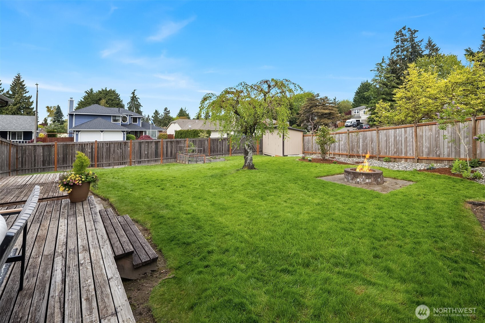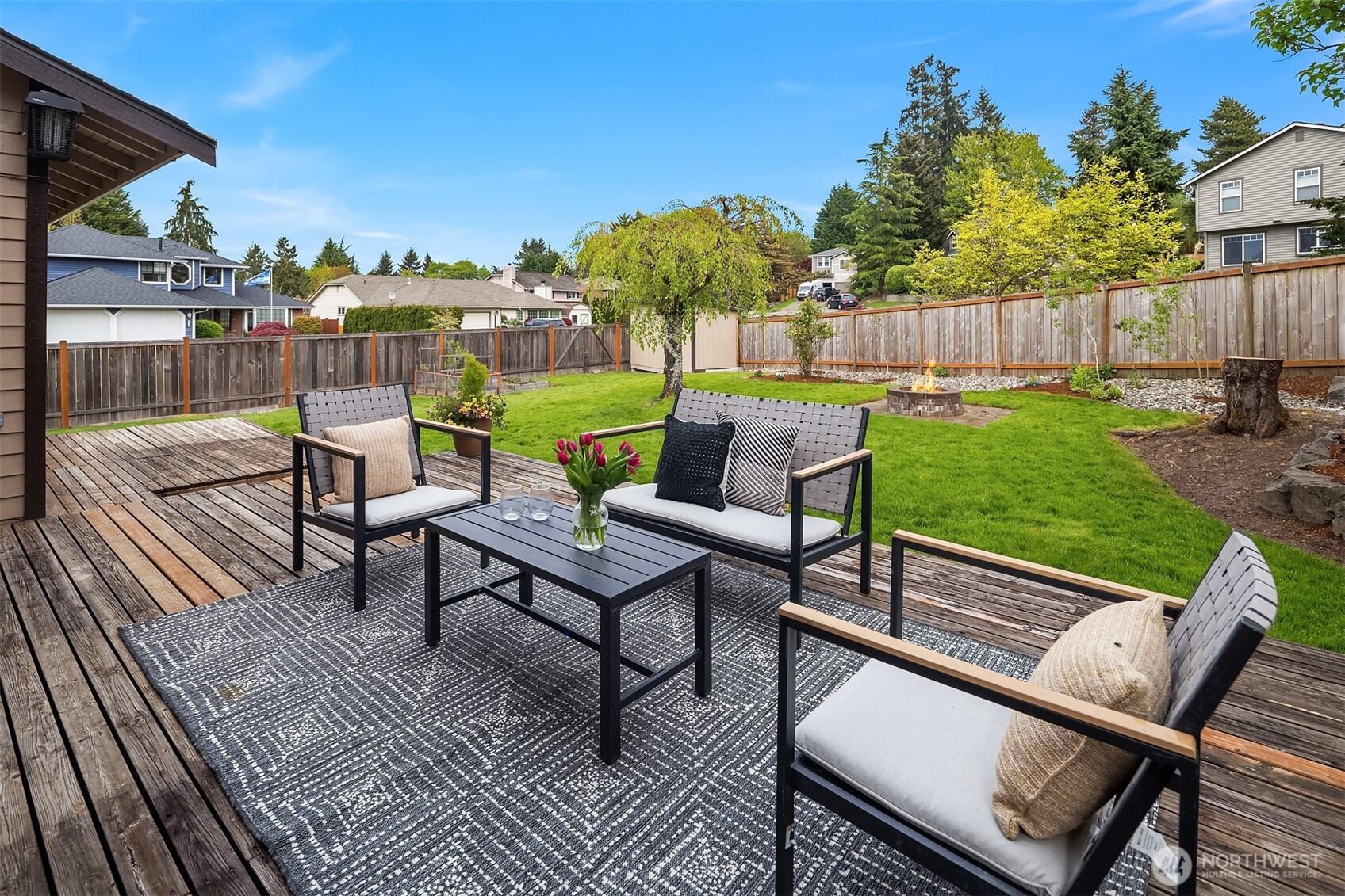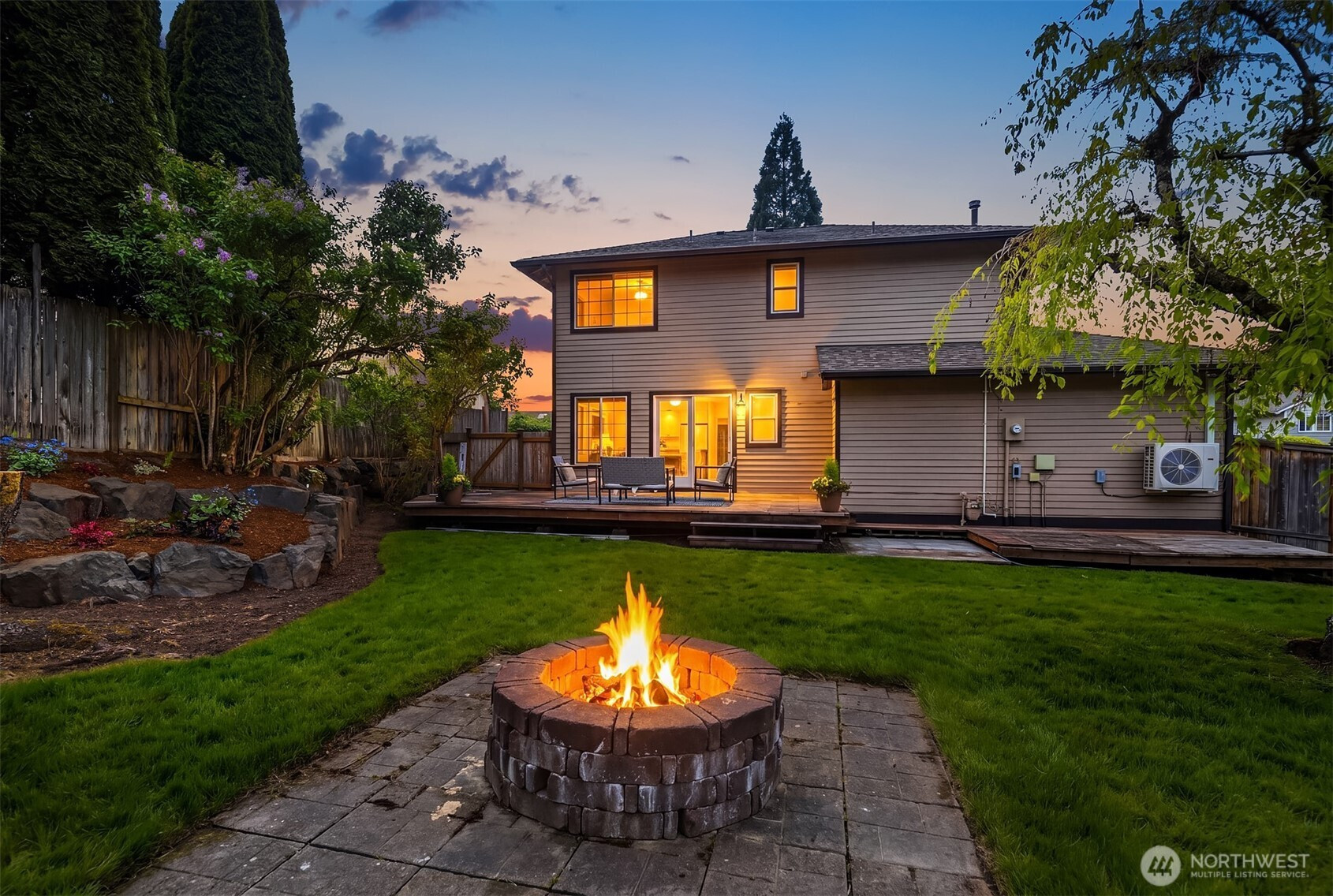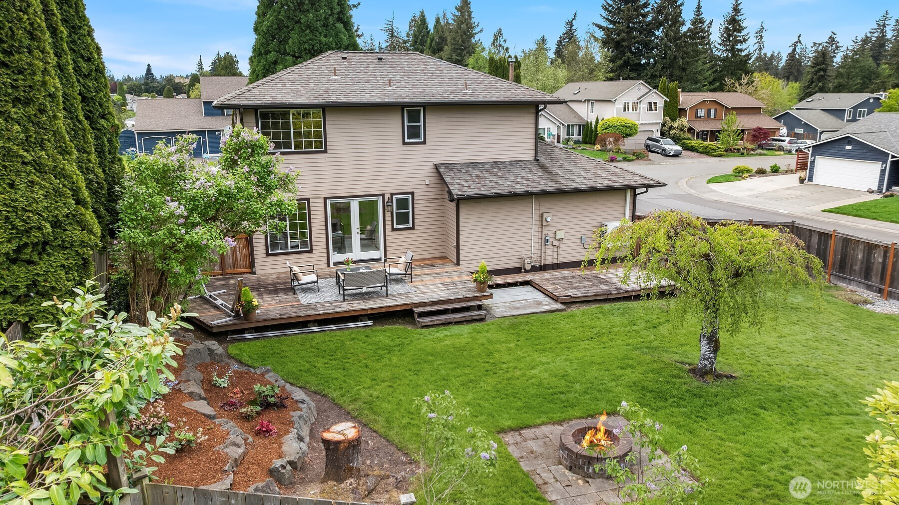 Nestled on a corner lot in a quiet Bothell neighborhood, this beautifully updated 4-bedroom, 2.25-bath residence offers a warm and functional two-story design. The main level features a formal living room and dining room at the front of the home, flowing into a newly remodeled kitchen complete with stainless steel appliances and an eating bar. The kitchen opens into a comfortable family room, and from there the backyard beckons, making indoor-outdoor living & entertaining effortless. Natural light pours in throughout, and A/C ensures year-round comfort. Upstairs, four bedrooms provide room for everyone, including a spacious primary suite with a private ensuite featuring dual sinks and a walk-in closet. Step outside to a large deck overlooking a fully fenced backyard complete with a fire pit, perfect for summer evenings and gatherings. The oversized two-car garage provides generous storage, and a second driveway adds flexible parking for guests, recreational vehicles, or extra toys. A new furnace and water heater installed in 2023 add peace of mind. Ideally situated just minutes from downtown Bothell's vibrant shops, restaurants, and parks, with quick access to I-405 and served by the highly sought-after Northshore School District, this home combines location, lifestyle, and quality.