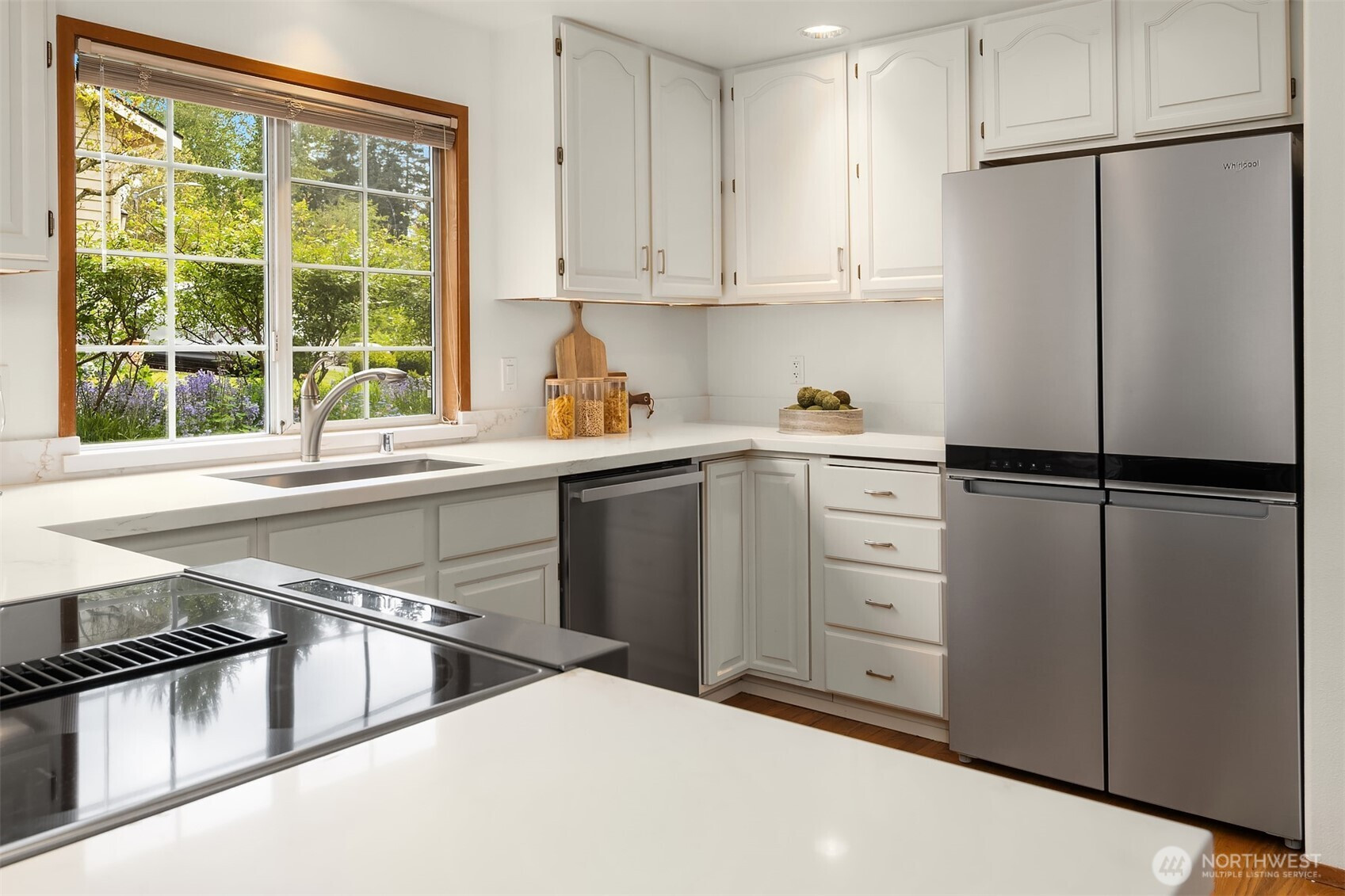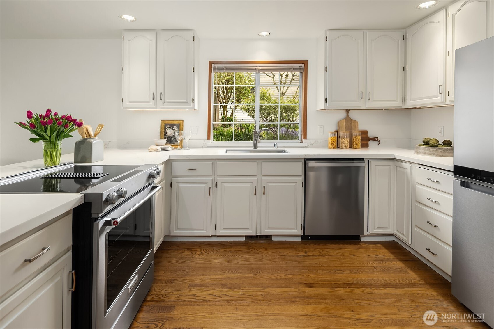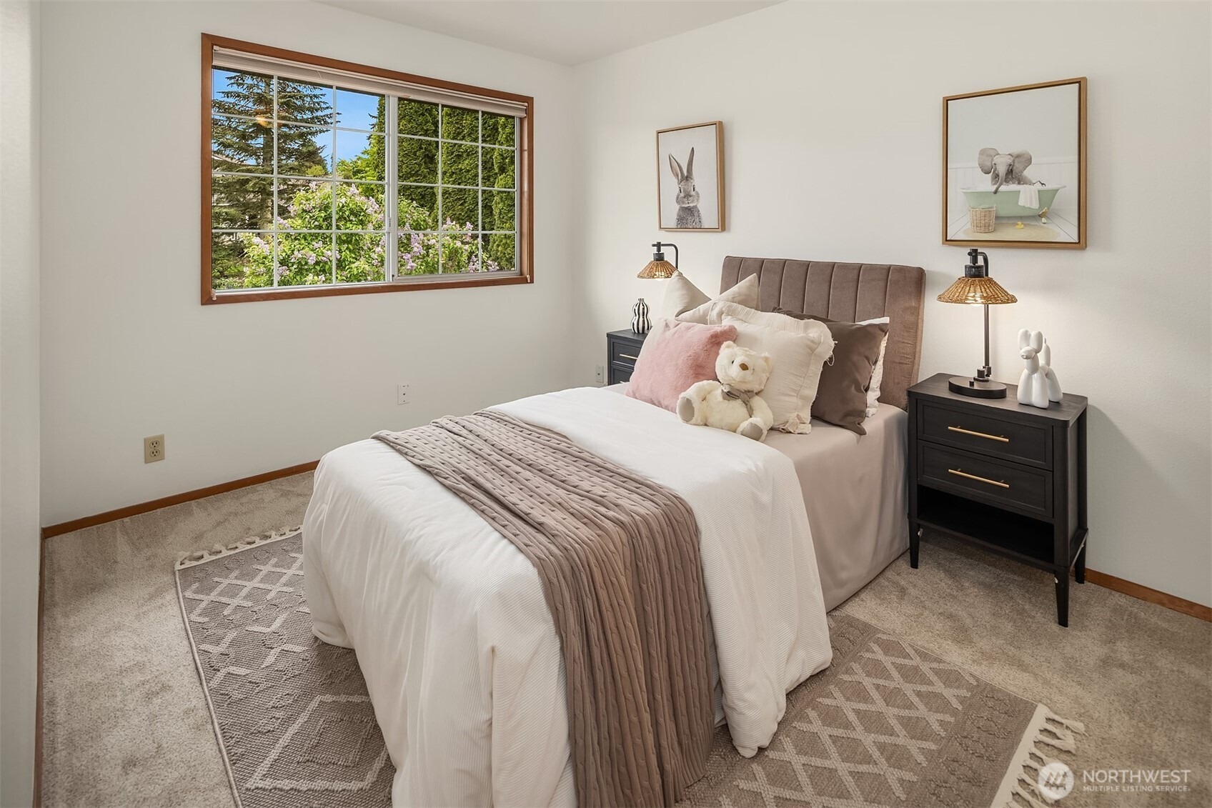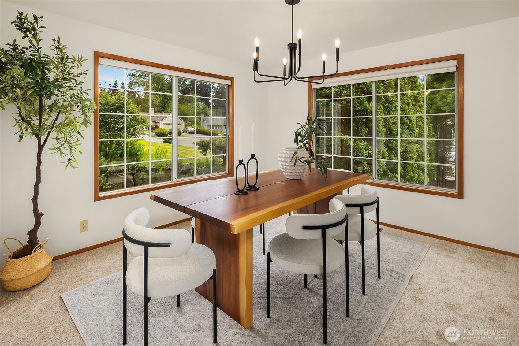 Nestled on a corner lot in a quiet Bothell neighborhood, this beautifully updated 4-bedroom, 2.25-bath residence offers a warm and functional two-story design. The main level features a formal living room and dining room at the front of the home, flowing into a newly remodeled kitchen complete with stainless steel appliances and an eating bar. The kitchen opens into a comfortable family room, and from there the backyard beckons, making indoor-outdoor living & entertaining effortless. Natural light pours in throughout, and A/C ensures year-round comfort. Upstairs, four bedrooms provide room for everyone, including a spacious primary suite with a private ensuite featuring dual sinks and a walk-in closet. Step outside to a large deck overlooking a fully fenced backyard complete with a fire pit, perfect for summer evenings and gatherings. The oversized two-car garage provides generous storage, and a second driveway adds flexible parking for guests, recreational vehicles, or extra toys. A new furnace and water heater installed in 2023 add peace of mind. Ideally situated just minutes from downtown Bothell's vibrant shops, restaurants, and parks, with quick access to I-405 and served by the highly sought-after Northshore School District, this home combines location, lifestyle, and quality.