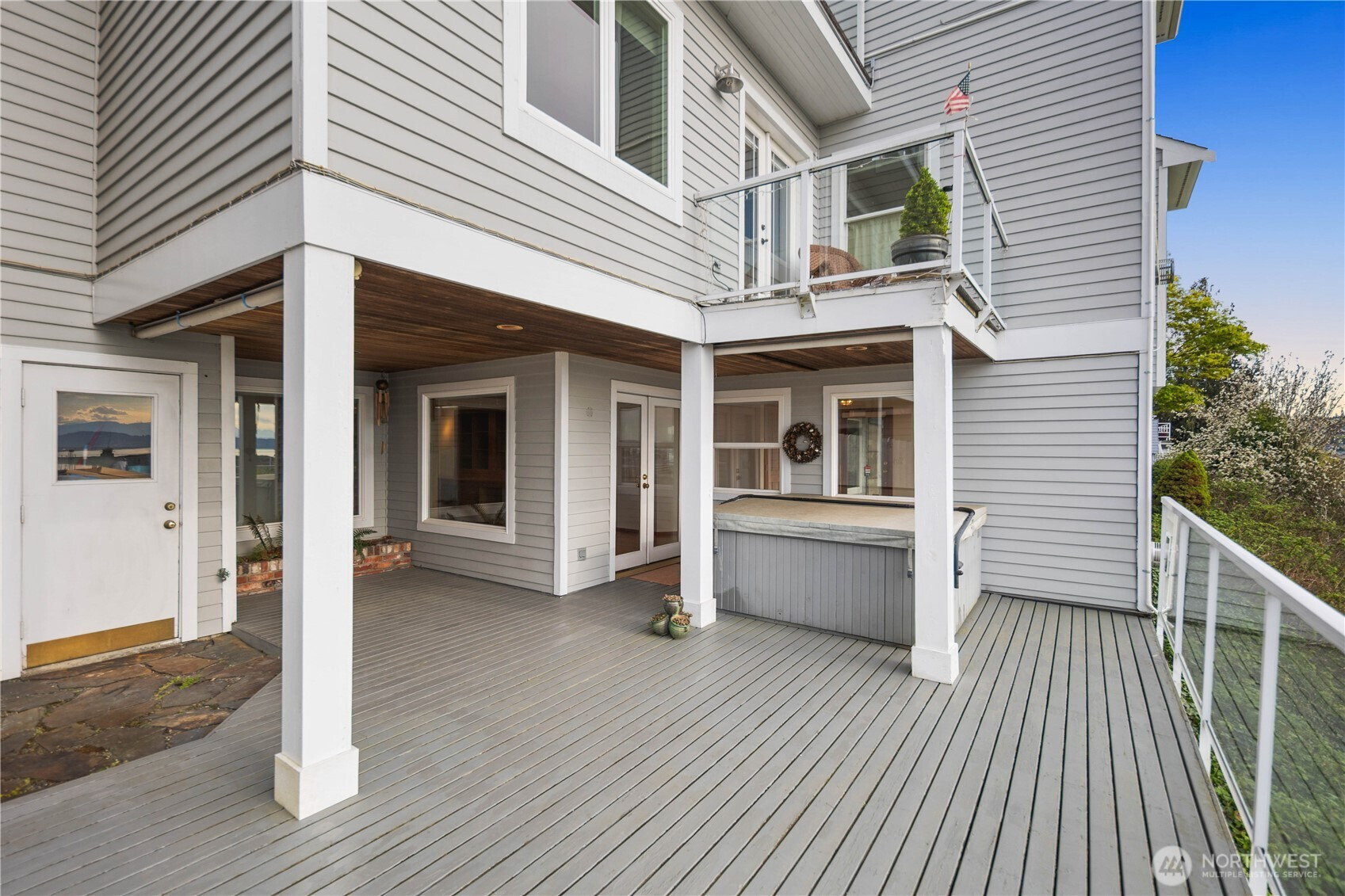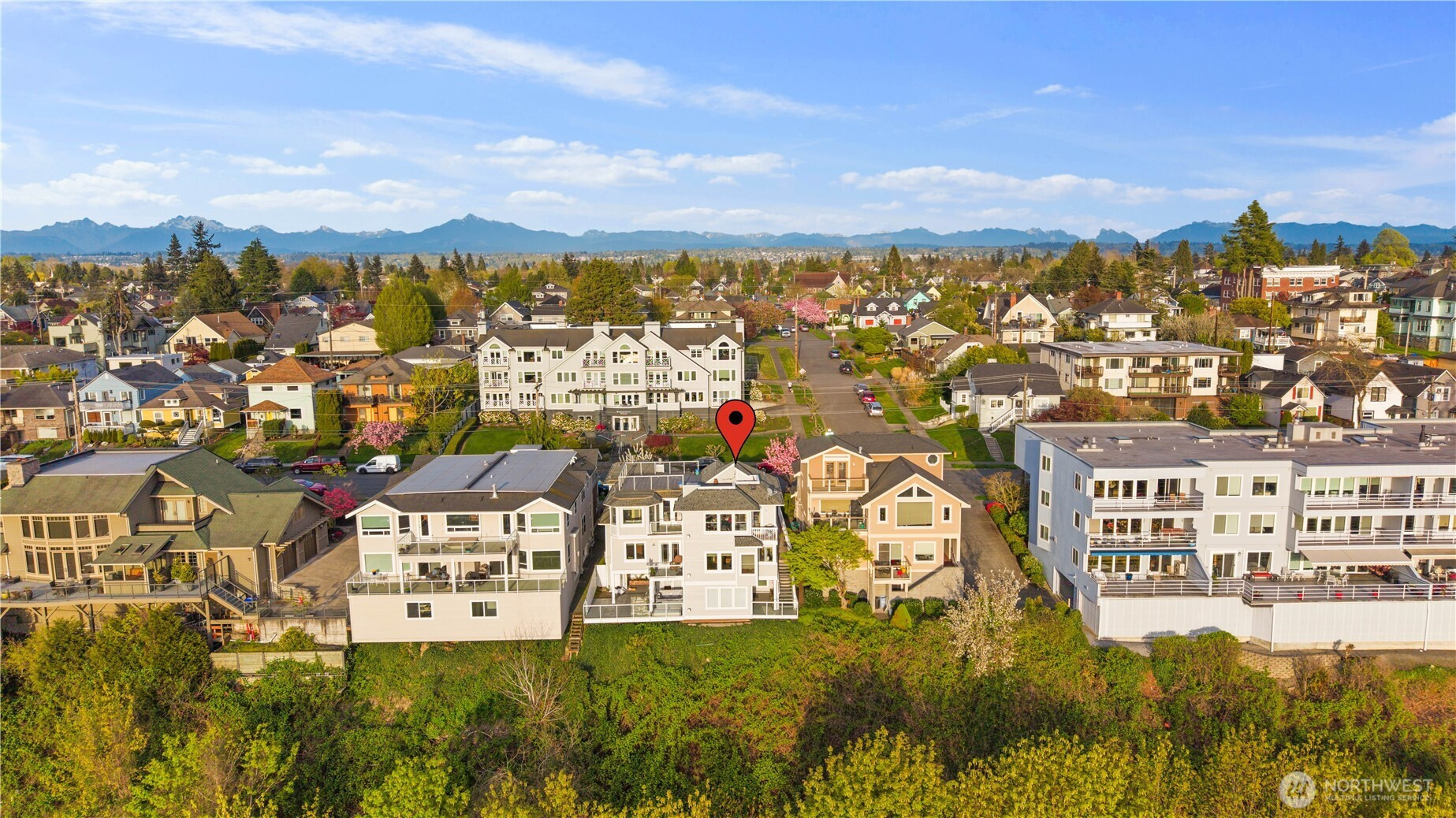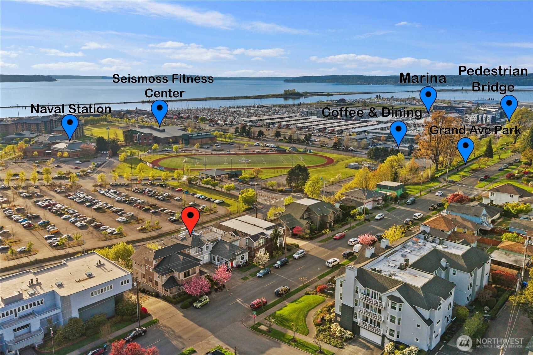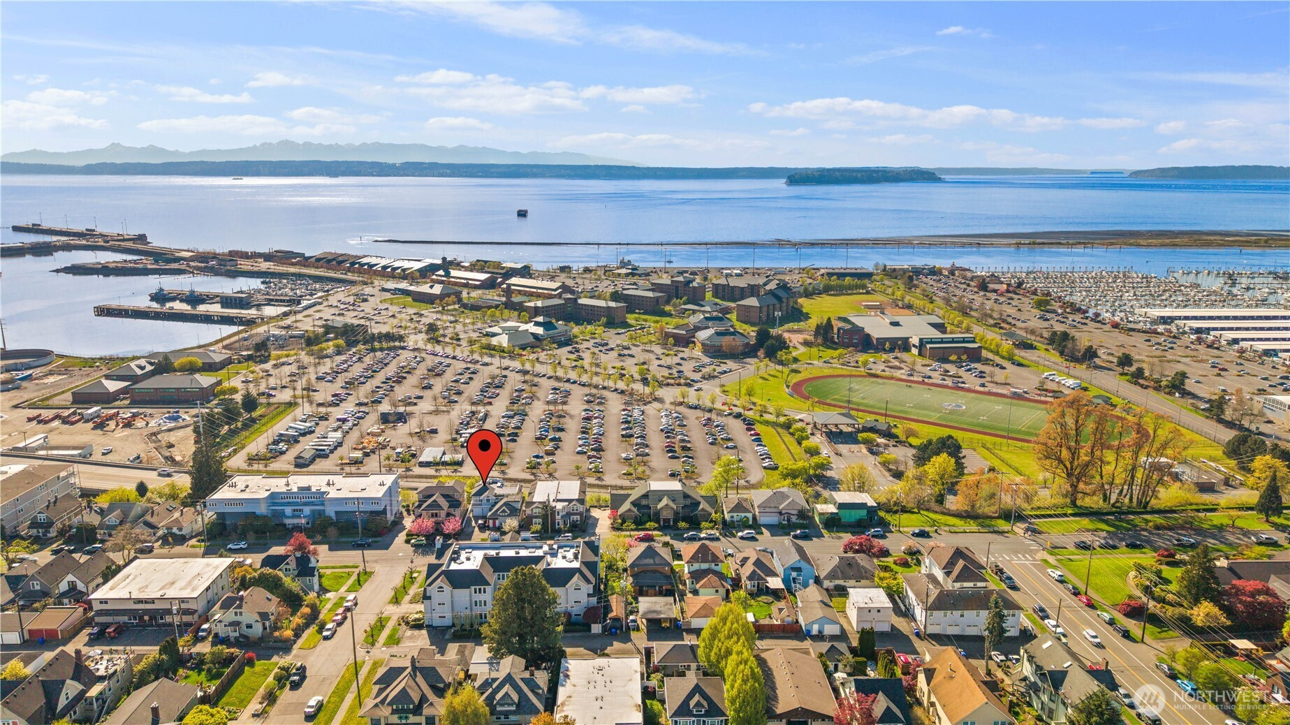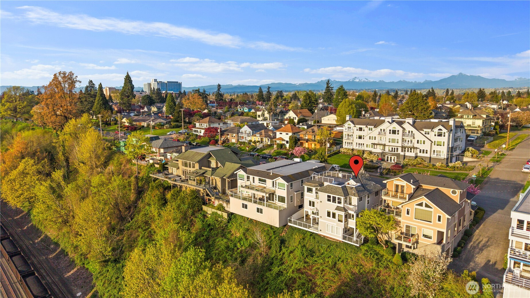 Welcome to Everett’s sought-after Bayside neighborhood! This 3bd/2ba home offers stunning ~150° Panoramic Puget Sound views + garage, blending comfort w/an unbeatable location. Inside, enjoy open living spaces w/fireplace and large windows framing stunning water & sunset vistas. Unwind in the primary suite's Jacuzzi tub with views of the Sound! The primary bath includes dual sinks complete with vanity nook. 2 additional bedrooms perfect for guestroom, office, or flex space. Functional kitchen w/built ins, pantry and gas stove. Hardwood and new carpet complete the space. Relax in the spa on your large private deck, soaking in breathtaking sunset views over the water. Step outside & you’re moments from Grand Ave Park’s bluff-top viewpoints, trails & convenient pedestrian bridge to the waterfront. Minutes to Port of Everett marina for popular dining or coffee, walks & coastal vibes, plus downtown Everett’s shops, cafes & entertainment. Walkable, scenic & commuter-friendly with quick I-5 access—this home delivers the lifestyle buyers seek: peaceful streets, nearby water views & everything within reach. The views are a must-see in person!