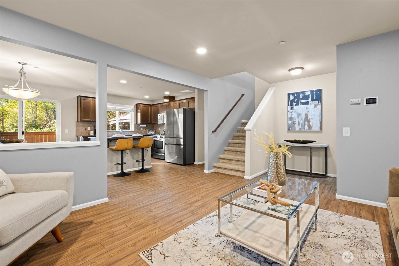 Stunning NW Craftsman in the sought-after Filbert Park community! This 3-bedroom, 2.25-bath home blends timeless design with modern comfort. The open-concept layout is filled with natural light, creating a warm and inviting feel throughout. The gourmet kitchen features quartz countertops, stainless steel appliances, island, and pantry; perfect for everyday living or entertaining. Upstairs offers a serene primary suite with walk-in closet, two bedrooms, and convenient laundry. Enjoy central A/C, a fully fenced yard backing to a greenbelt, and an ideal location near parks, great schools, Alderwood Mall, and close access to SR 524/525 and I-405/I-5 for an easy commute.