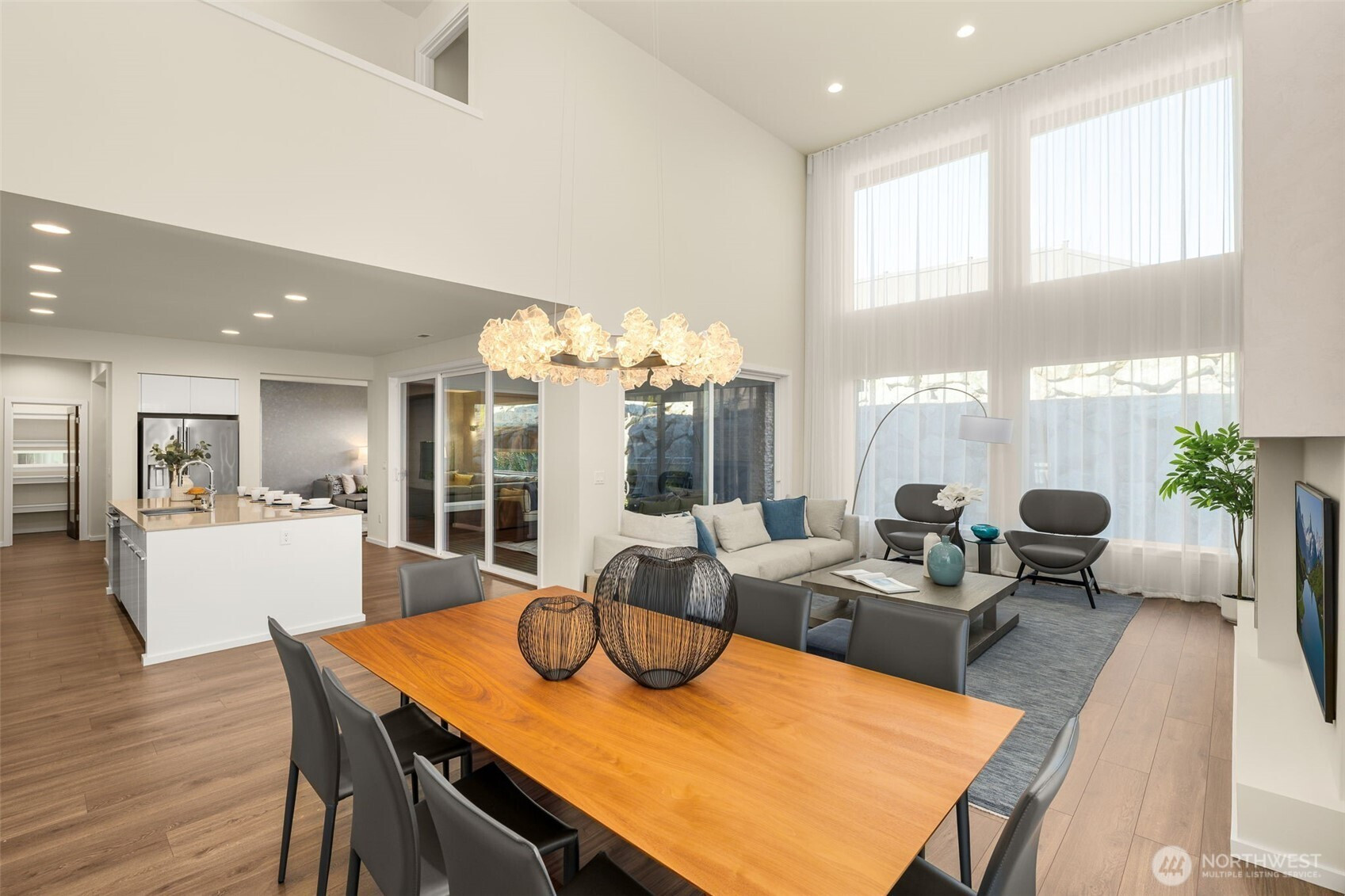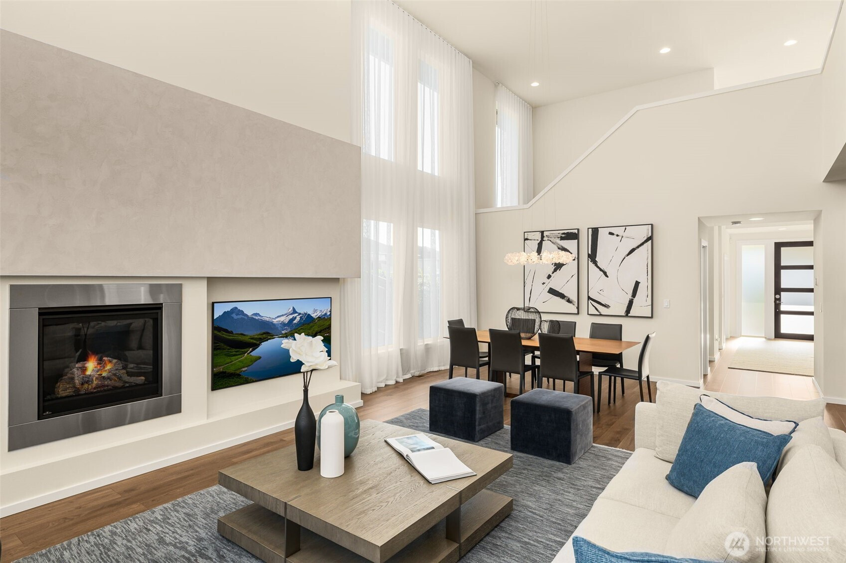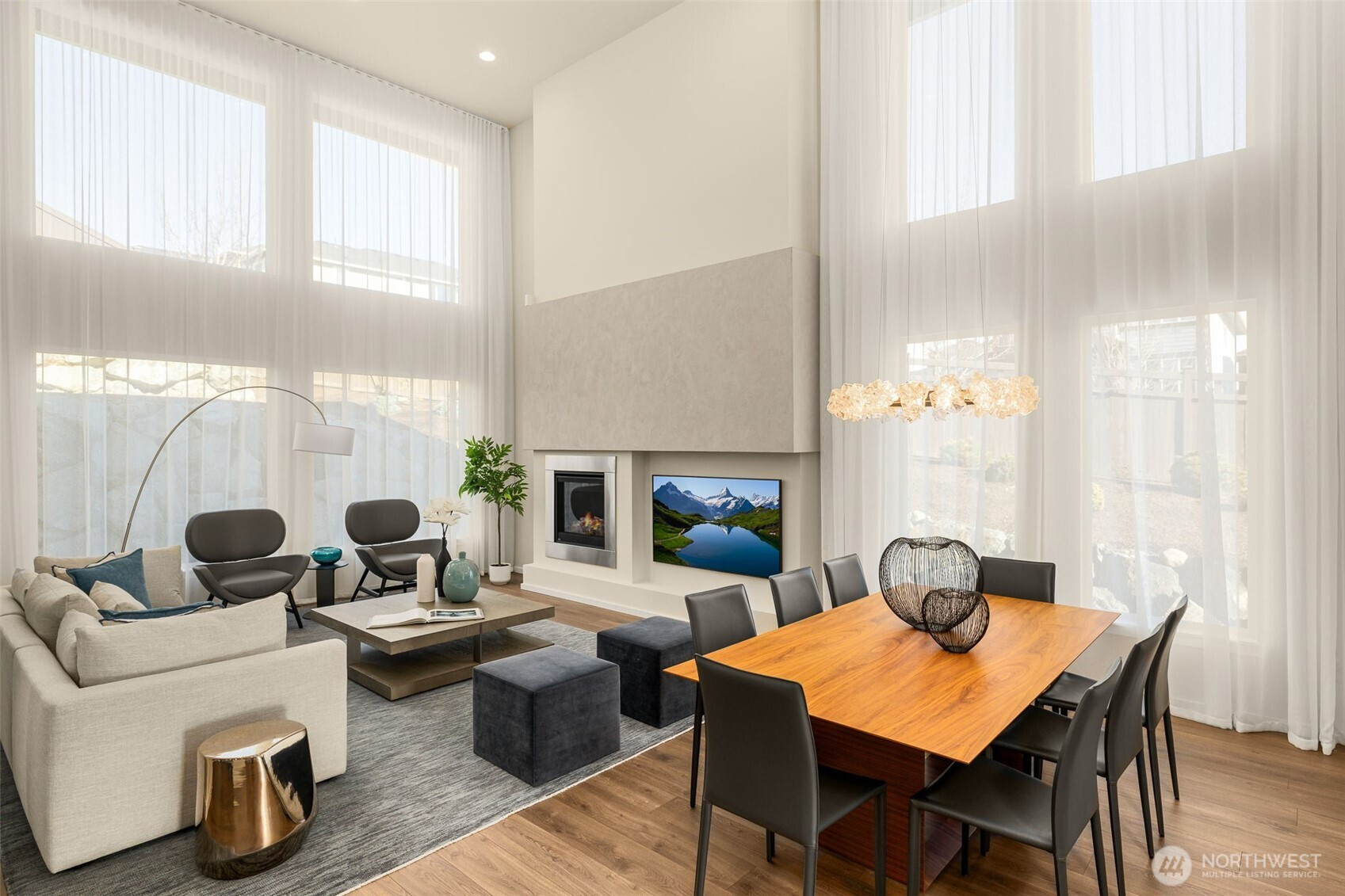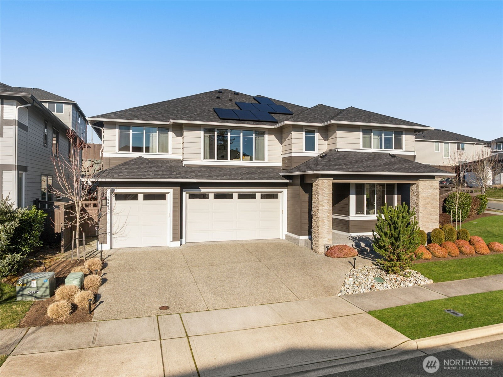 Welcome to this exceptional MainVue Home at Eaglemont, showcasing one of the builder’s largest floor plans and boasting over $200K in upgrades and soaring 19-ft ceilings. A grand foyer opens to a versatile room, a private office, and a chef’s kitchen with quartz counters, a massive island, stainless steel appliances, and a Butler’s Pantry with an extra sink. The great room flows into the dining area and a Signature Outdoor Room with an extended deck and fireplace. The Grand Suite features marble tile, dual vanities, a frameless shower, a soaking tub, and a custom closet. Additional bedrooms, bonus and leisure rooms add flexibility, while a guest suite with a ¾ bath ensures comfort. Smart-living features include solar panels, an EV charger, Ethernet wiring, a finished 3-car garage, and landscaped grounds offering full privacy. This home delivers elegance, efficiency, and modern luxury—a must-see in person.