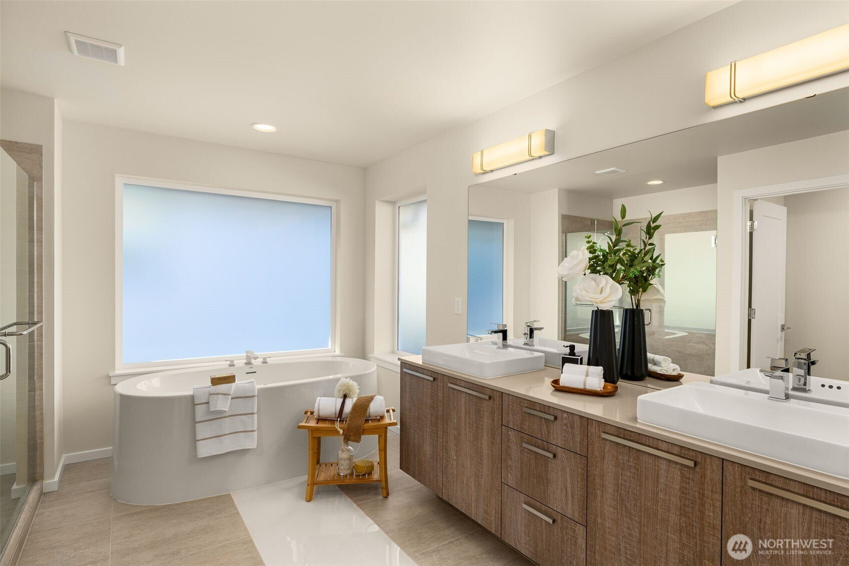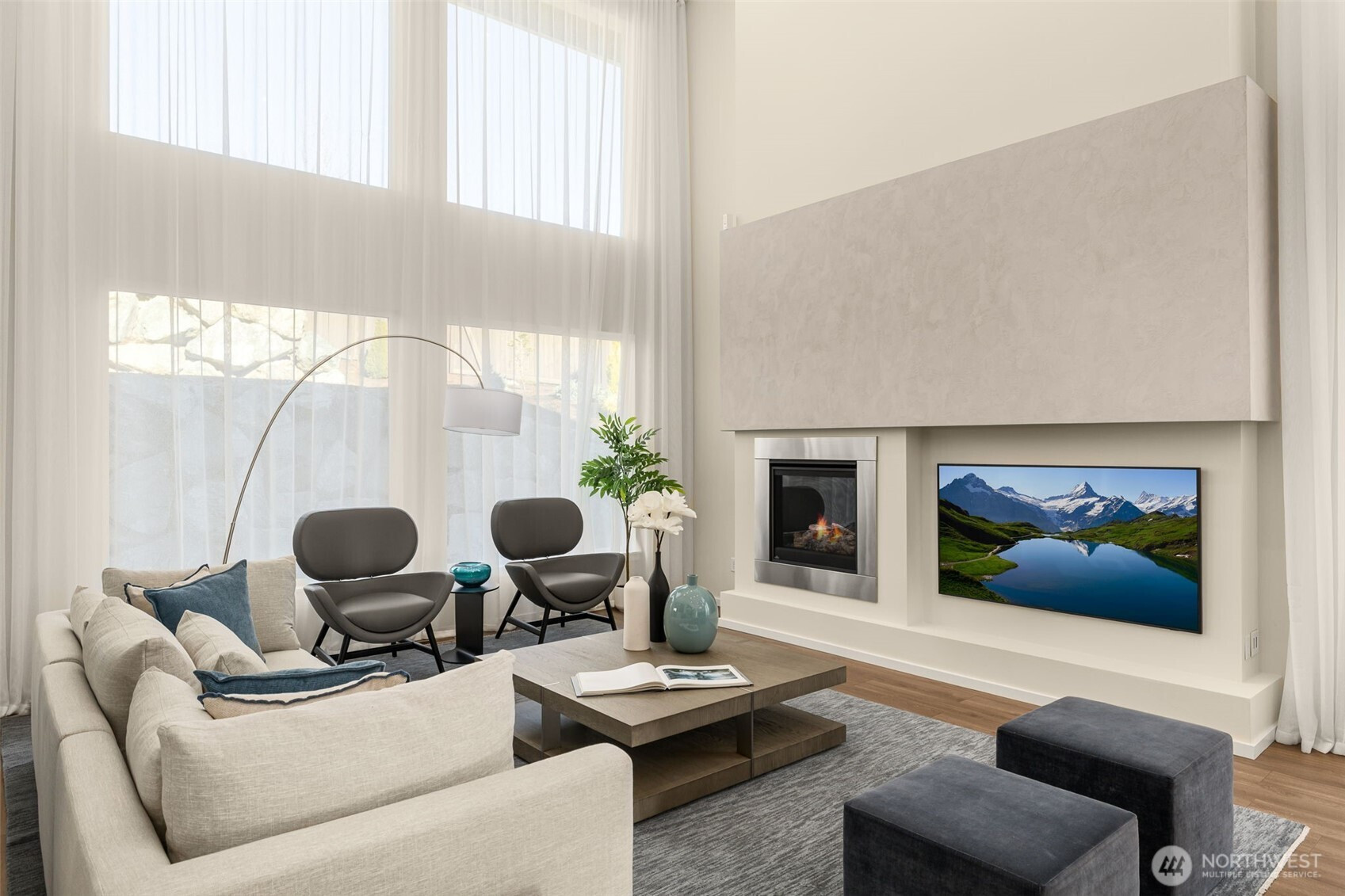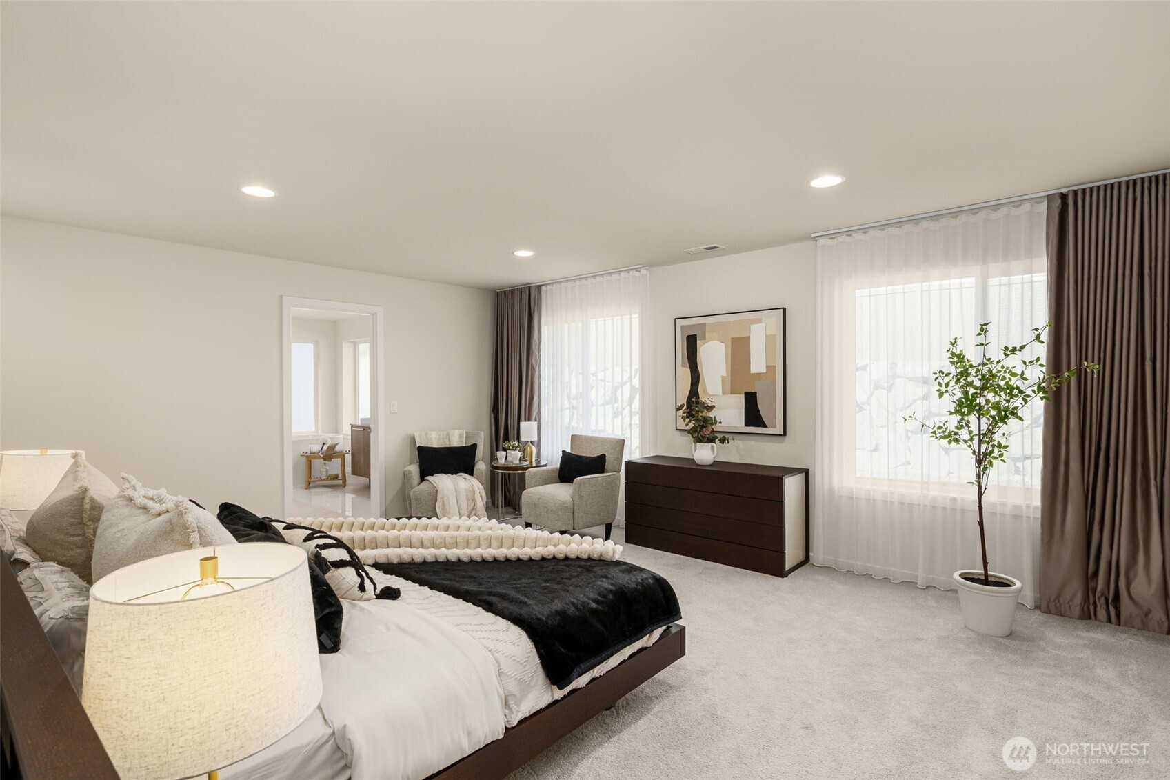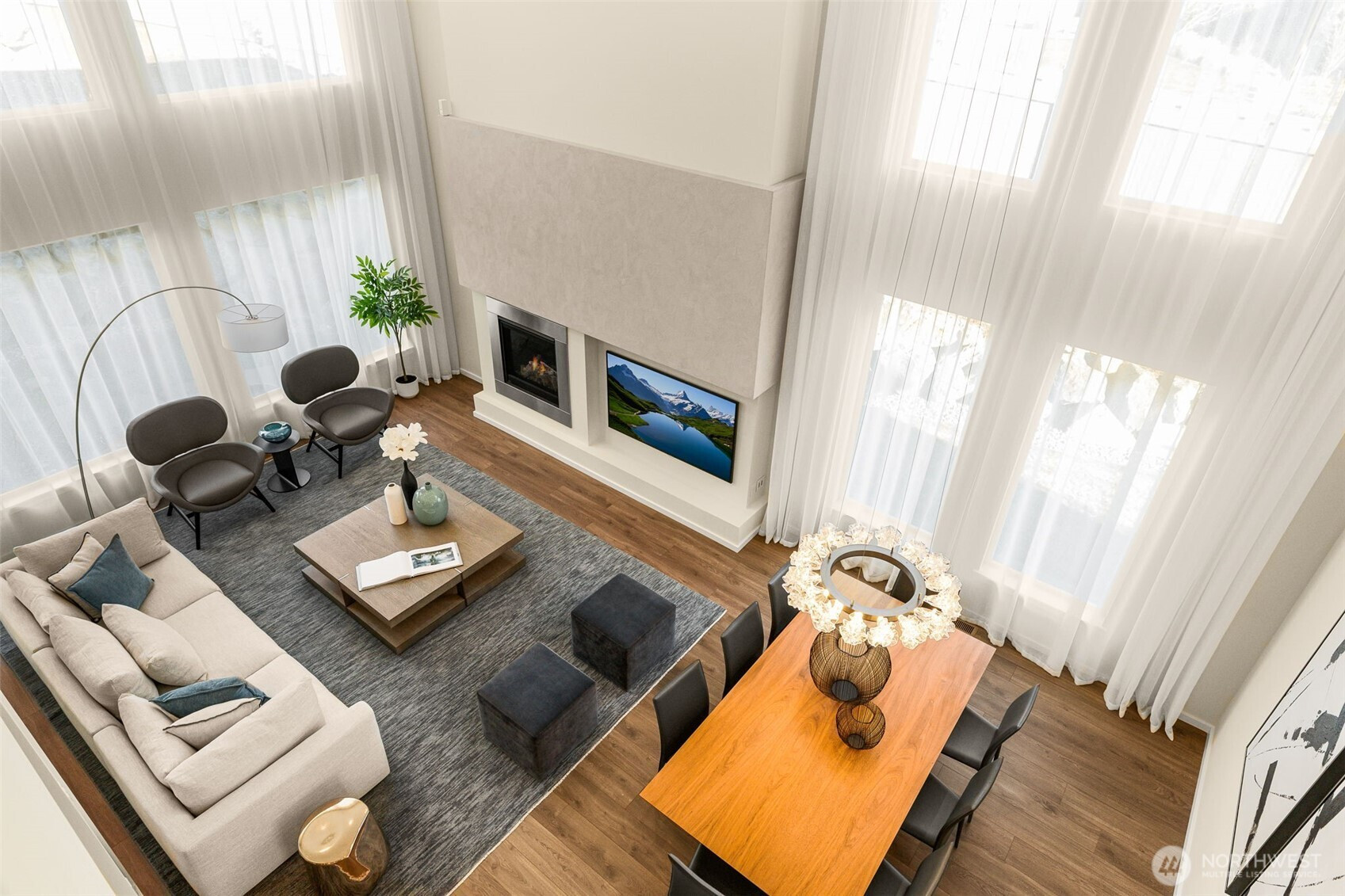 Welcome to this exceptional MainVue Home at Eaglemont, showcasing one of the builder’s largest floor plans and boasting over $200K in upgrades and soaring 19-ft ceilings. A grand foyer opens to a versatile room, a private office, and a chef’s kitchen with quartz counters, a massive island, stainless steel appliances, and a Butler’s Pantry with an extra sink. The great room flows into the dining area and a Signature Outdoor Room with an extended deck and fireplace. The Grand Suite features marble tile, dual vanities, a frameless shower, a soaking tub, and a custom closet. Additional bedrooms, bonus and leisure rooms add flexibility, while a guest suite with a ¾ bath ensures comfort. Smart-living features include solar panels, an EV charger, Ethernet wiring, a finished 3-car garage, and landscaped grounds offering full privacy. This home delivers elegance, efficiency, and modern luxury—a must-see in person.
