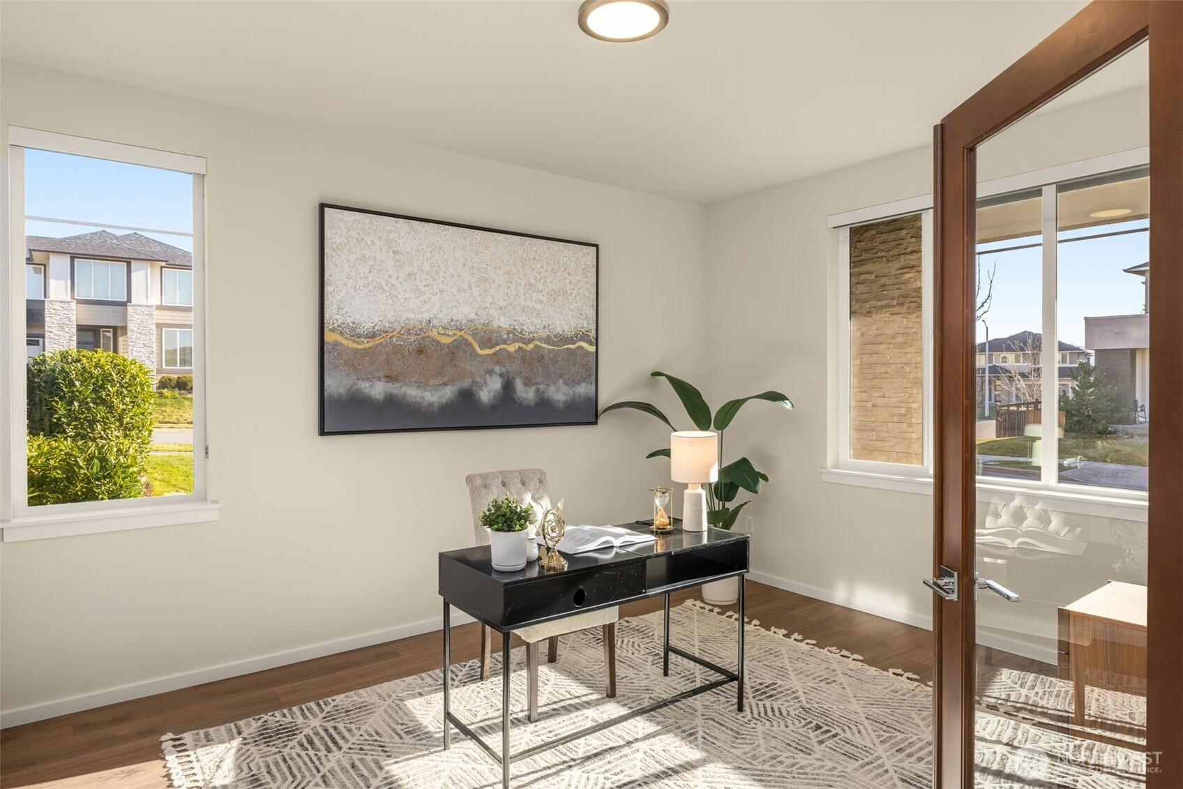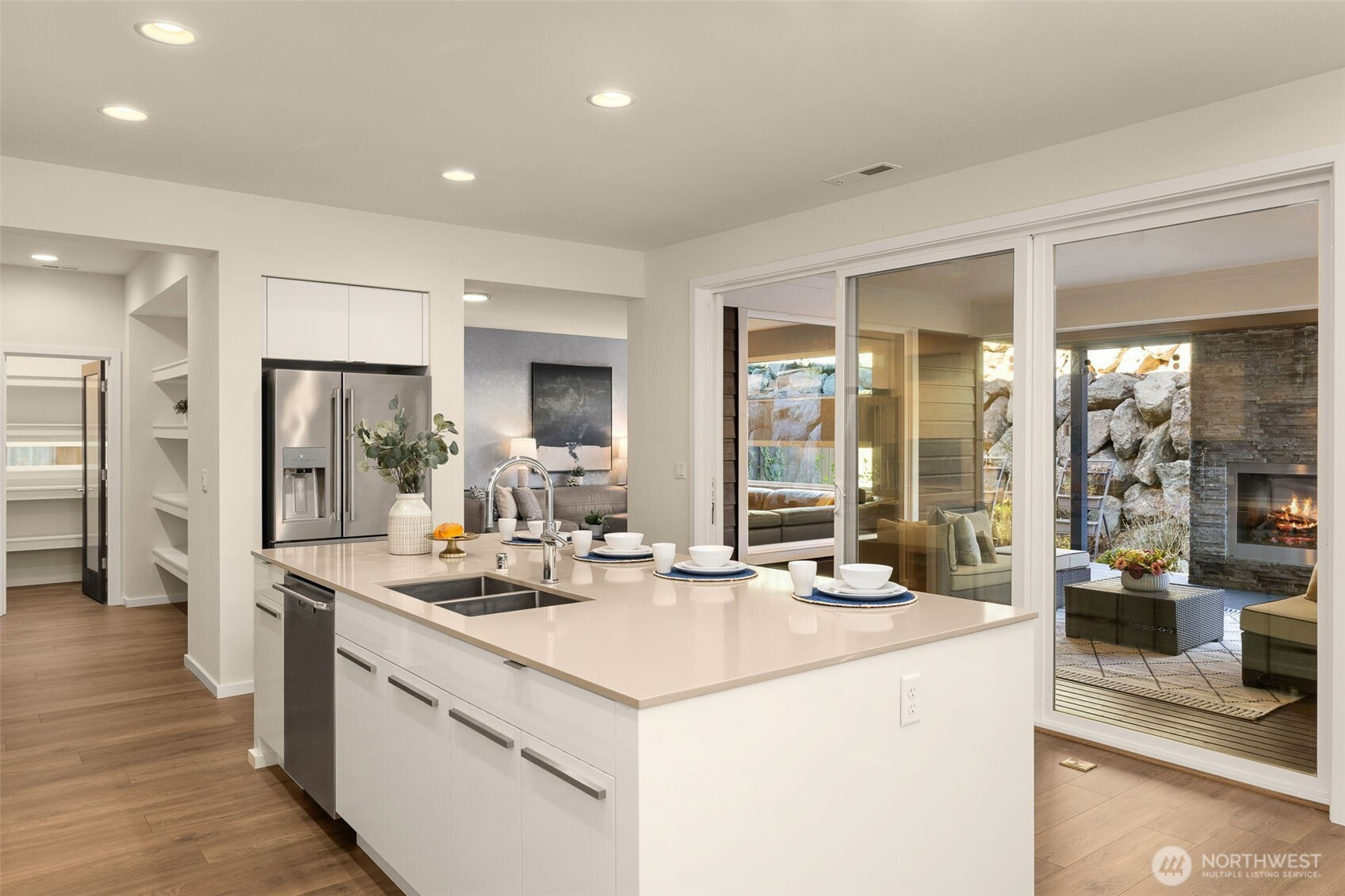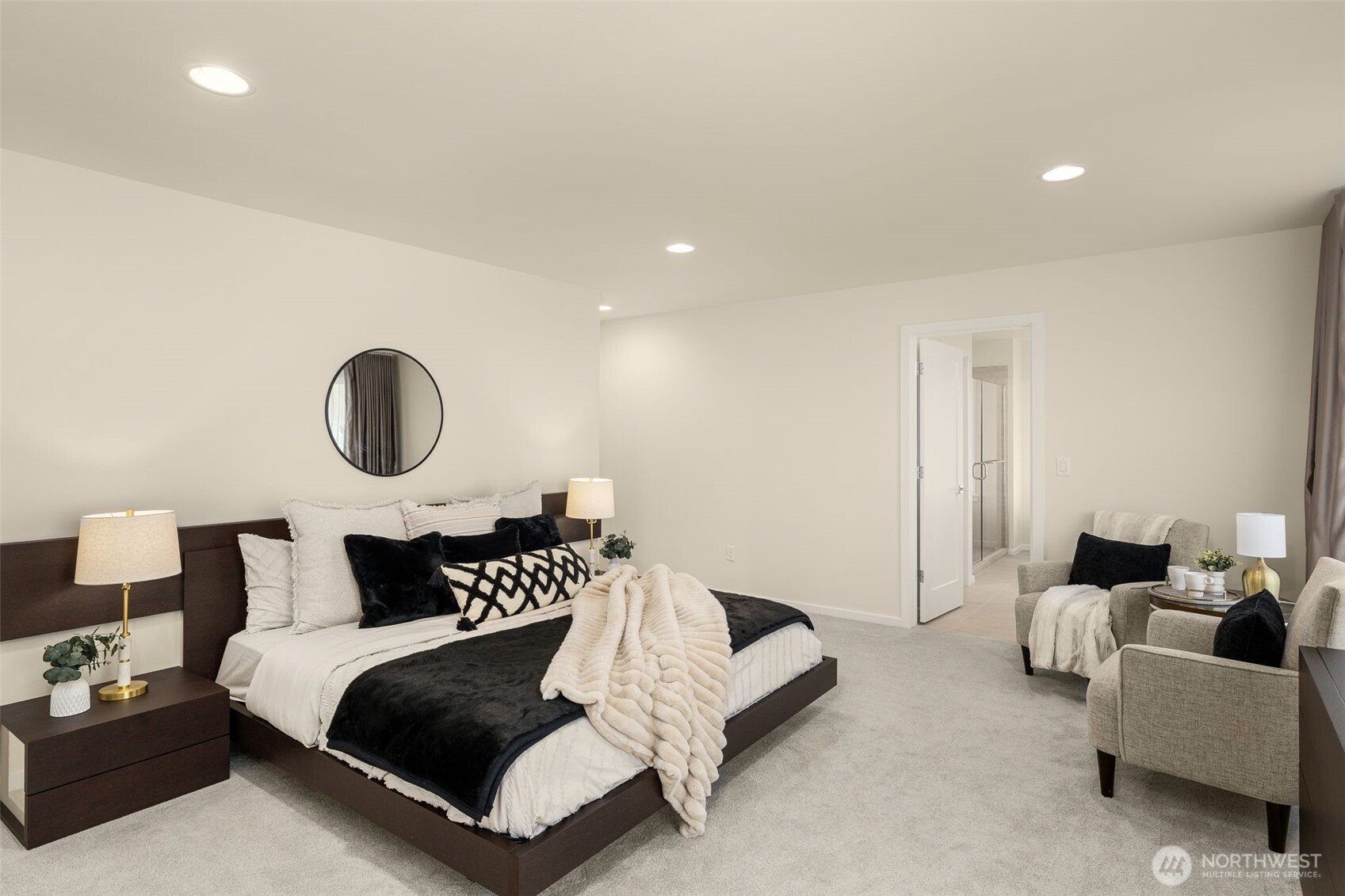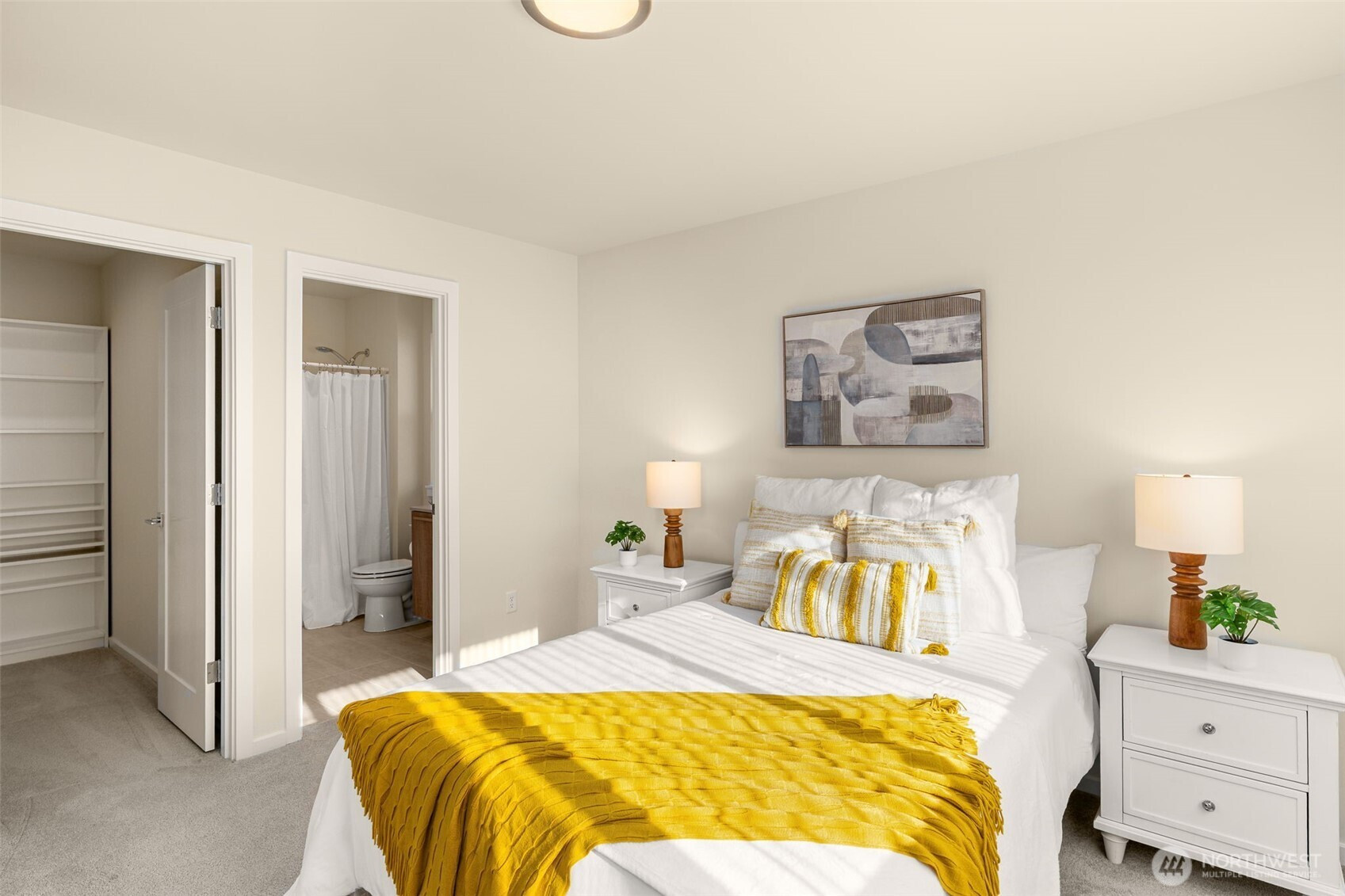 Welcome to this exceptional MainVue Home at Eaglemont, showcasing one of the builder’s largest floor plans and boasting over $200K in upgrades and soaring 19-ft ceilings. A grand foyer opens to a versatile room, a private office, and a chef’s kitchen with quartz counters, a massive island, stainless steel appliances, and a Butler’s Pantry with an extra sink. The great room flows into the dining area and a Signature Outdoor Room with an extended deck and fireplace. The Grand Suite features marble tile, dual vanities, a frameless shower, a soaking tub, and a custom closet. Additional bedrooms, bonus and leisure rooms add flexibility, while a guest suite with a ¾ bath ensures comfort. Smart-living features include solar panels, an EV charger, Ethernet wiring, a finished 3-car garage, and landscaped grounds offering full privacy. This home delivers elegance, efficiency, and modern luxury—a must-see in person.