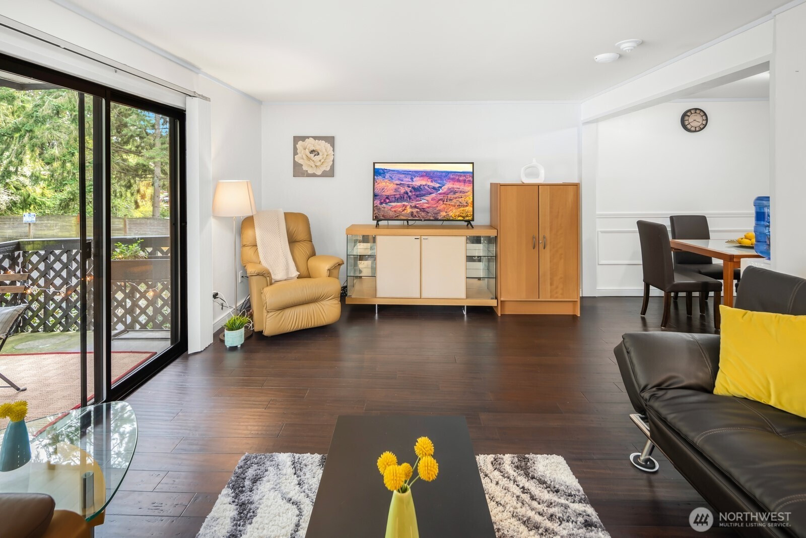 Quiet 2 bedroom condo tucked away in a great walkable location close to the best amenities Lynnwood has to offer. Open room concept with large living room, dining area and kitchen. Southeast facing outdoor deck overlooking Wilcox Park is perfect for morning sunrises. Warming electric fireplace and efficient hot water heater. Large closets including a primary bedroom walk-in closet. No rental cap, no pets except service animals. One assigned parking and sizable storage unit. Just minutes to coffee shops, shopping, restaurants, light rail transit, and highway access. Across from Scriber Lake Park - grab a coffee at Starbucks and take a beautiful walk. Unit is located at the far back of Casa Del Rey and visitor parking is available.