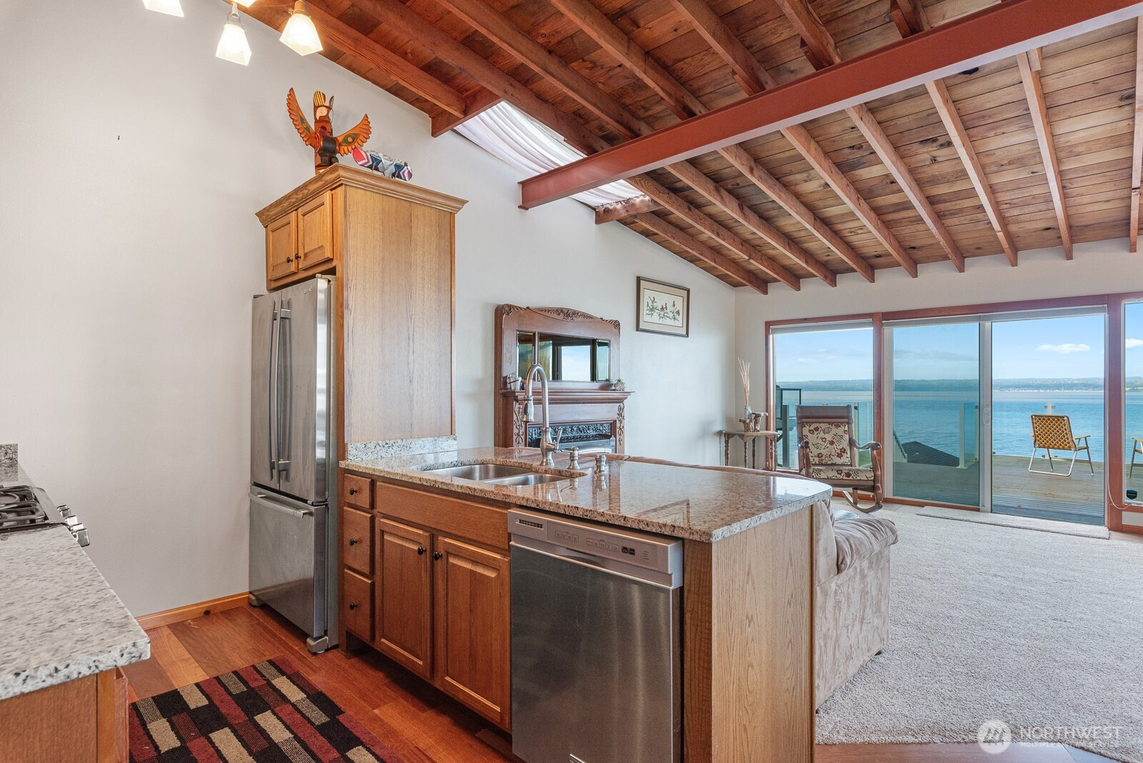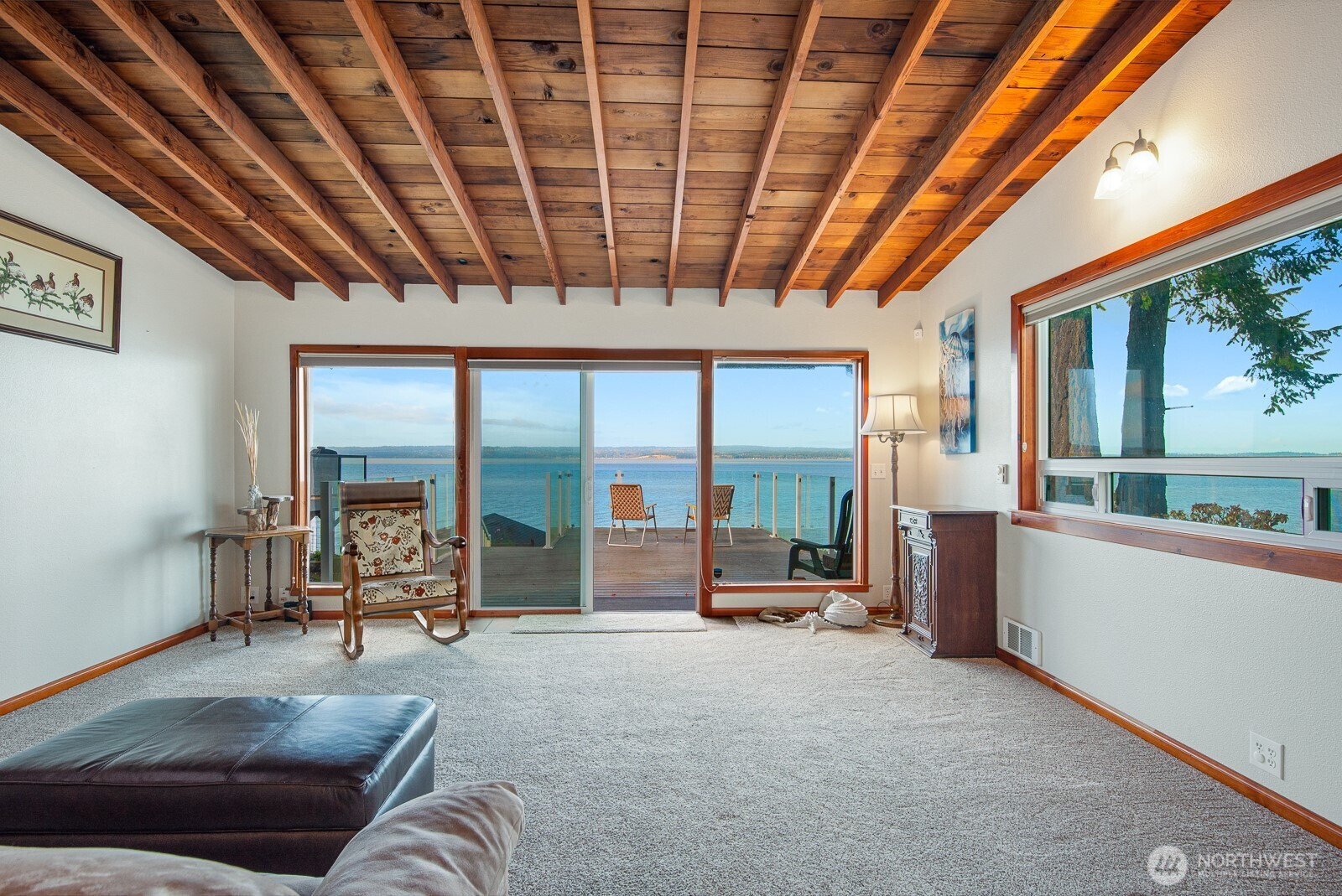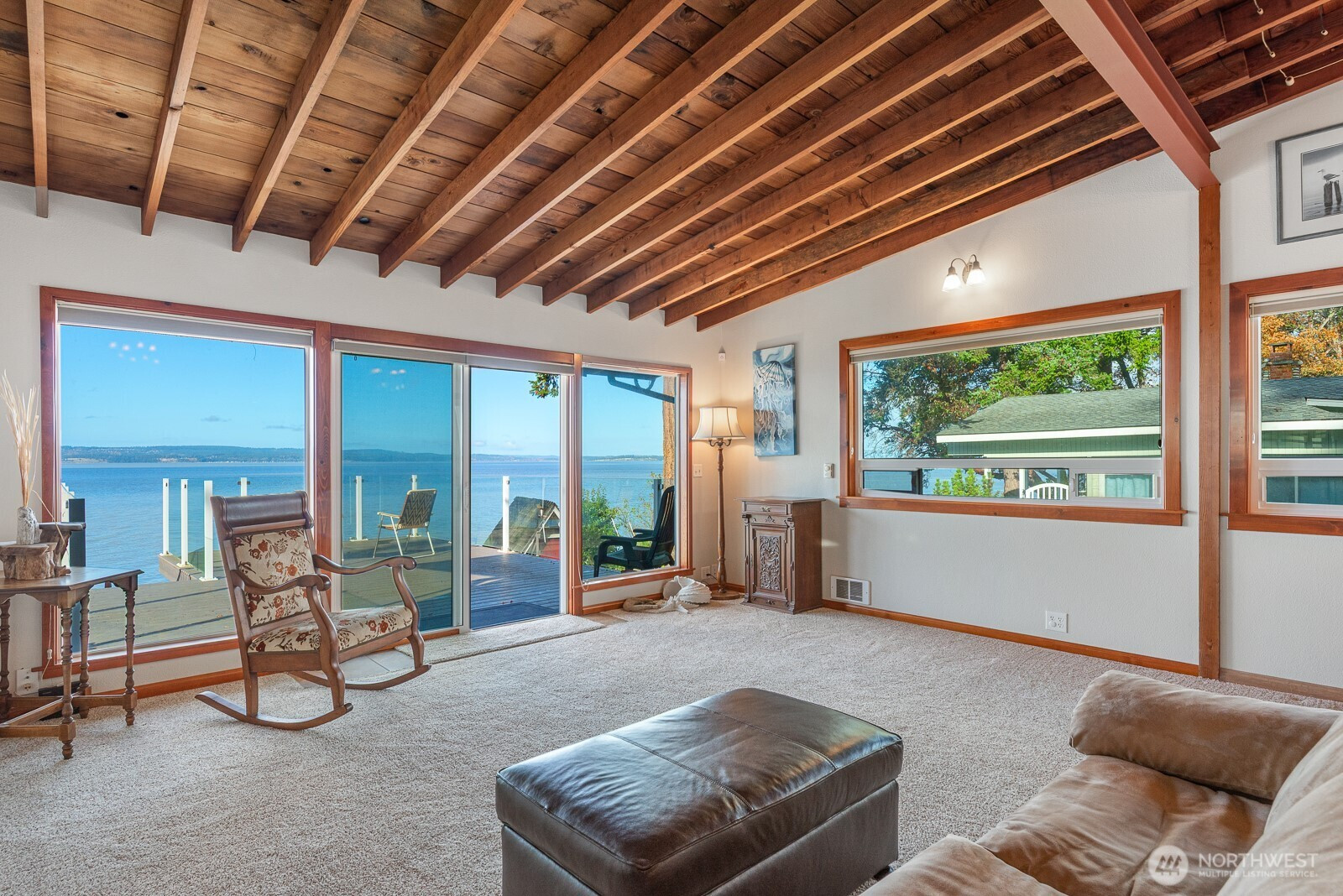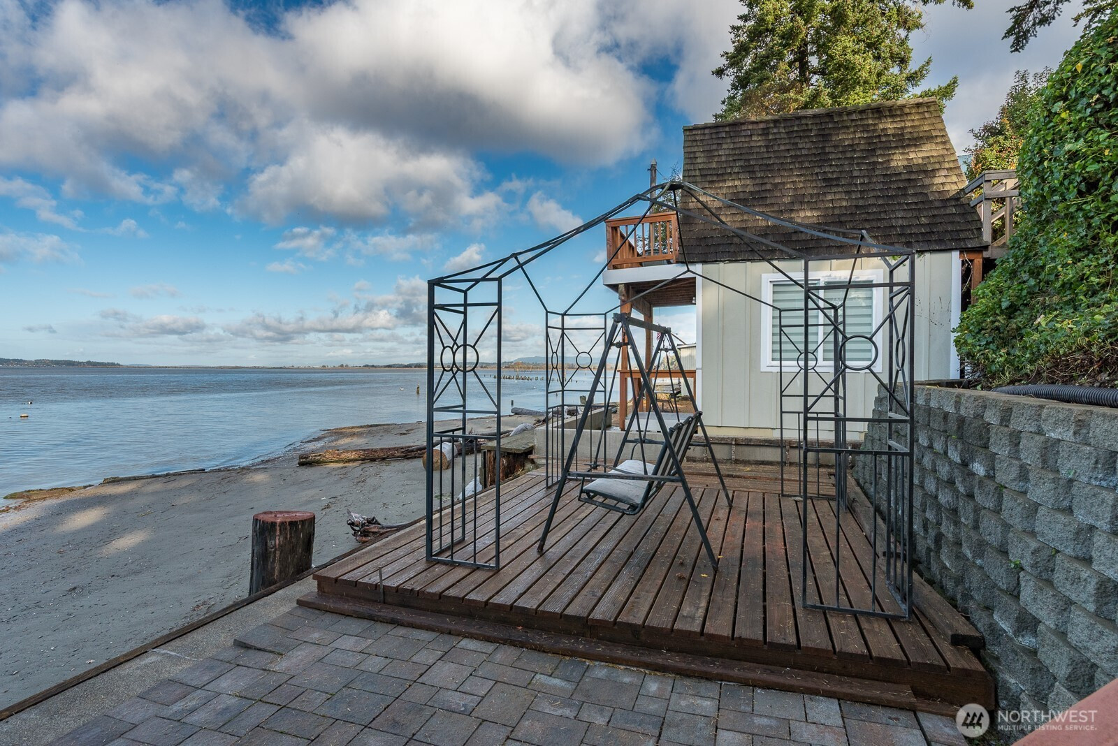 Experience the magic of waterfront living in the highly desired Warm Beach community. This beautifully remodeled cabin offers west-facing views that capture sweeping panoramas of the Sound and unforgettable sunsets. Step inside to a warm and inviting living space featuring granite countertops, rich wood cabinetry, and stunning hardwood flooring—all thoughtfully updated for comfort and style. A spacious deck extends your living area outdoors, perfect for morning coffee, evening gatherings, or relaxing while the sun dips below the horizon. The home also features a new metal roof for peace of mind and long-lasting durability. The reinforced bulkhead enhances both function and beauty, complemented by elegant brick pavers & a charming gazebo.