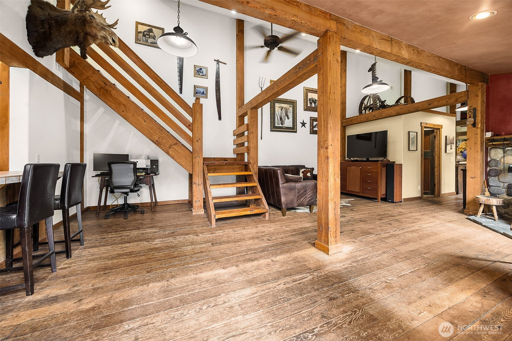 Bath Off Primary, Ceiling Fan(s), Dbl Pane/Storm Window, Dining Room, Fireplace, French Doors, Loft,