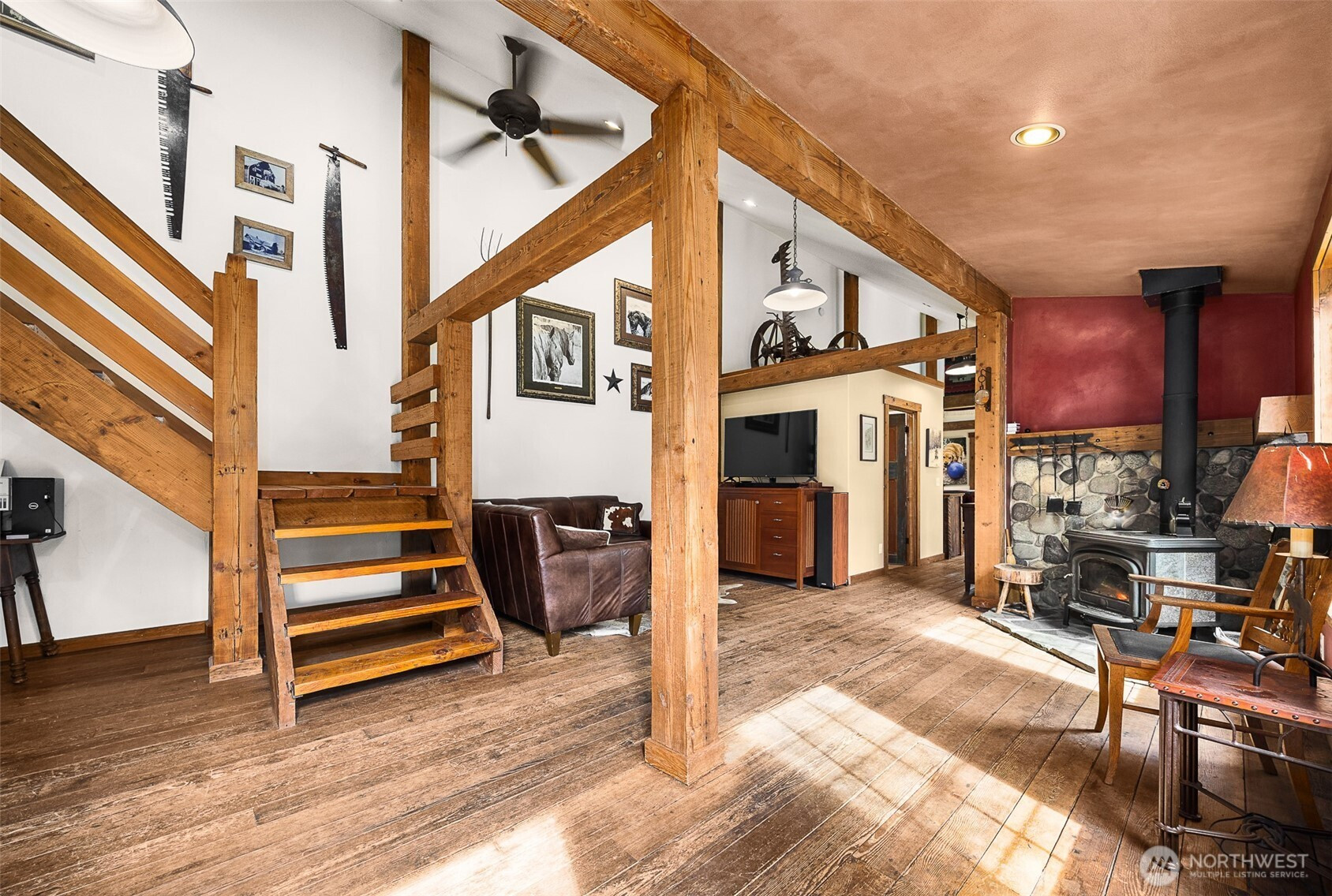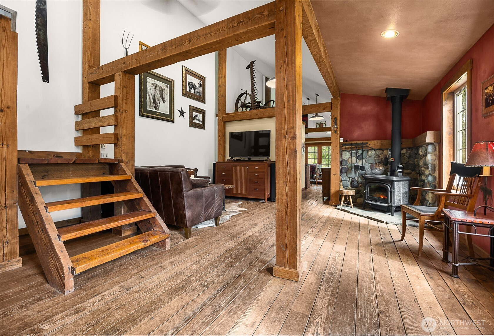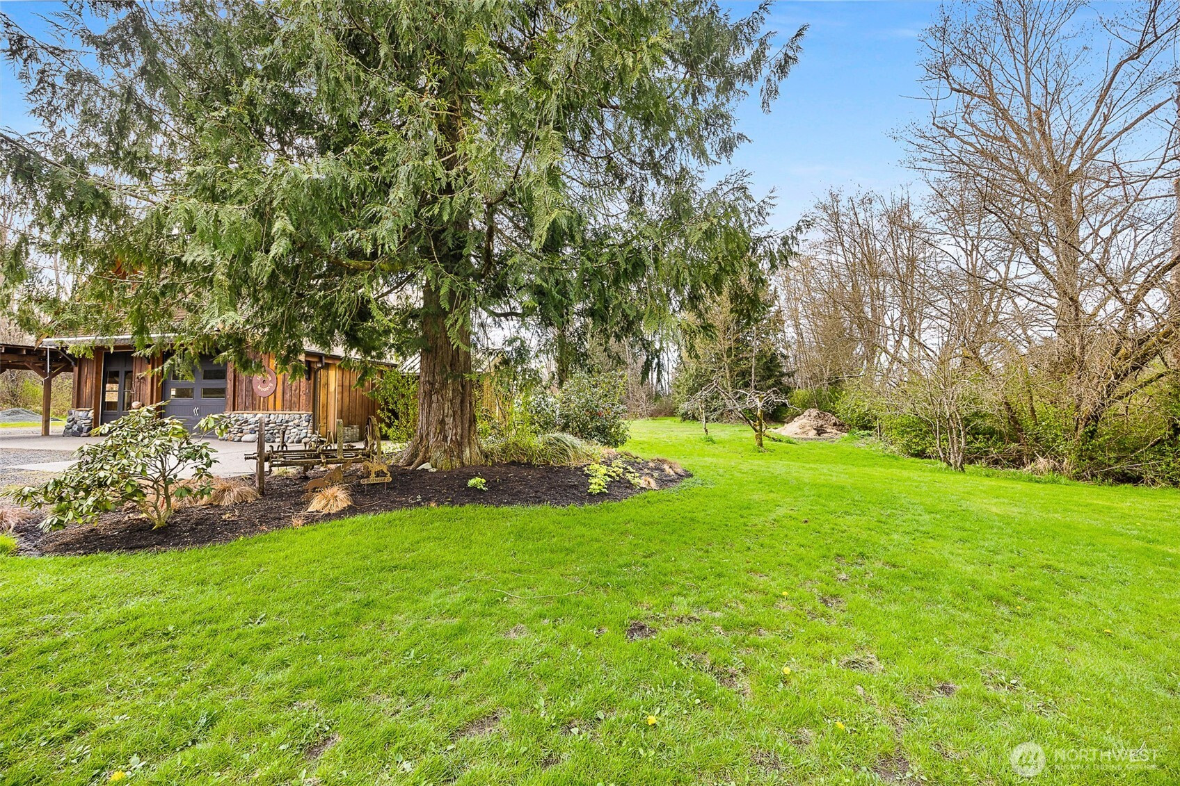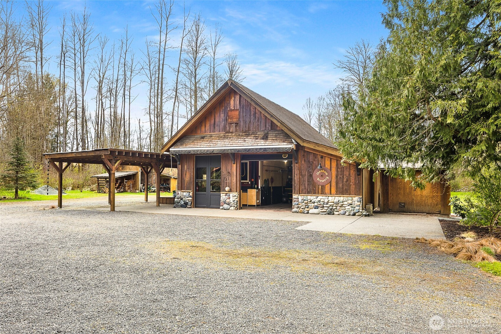 LUXURY BARN LIVING! Discover this exceptional 21 acre self-sustained homestead, offering a perfect blend of natural beauty. The spacious property features lush fields, and a majestic expansive mixed forest. Highlights include a reclaimed timber frame barndominium planned for expansion, complete with a 4-bedroom septic system. The versatile buildings and amenities include: A spacious shop it's own 200 amp service, an upper-level area, a dedicated freeze-dryer/canning room, a mechanic workroom, a four-bay carport, a garden shed for tools and supplies, a pole barn suitable for RV or trailer storage, a tractor and woodshed area, an adorable timber-frame outdoor entertainment structure, a covered hot tub area overlooking a peaceful small pond. The charming, isolated home features a master bedroom with French doors opening onto a covered porch, perfect for relaxing and enjoying the natural surroundings. Locally reclaimed fir floors add an organic rustic touch. Set within a private yet close-in location, this retreat offers excellent connectivity to I-5 for convenient travel. Expansive railed pastures provide ample space for horses, livestock, or other outdoor pursuits. The entire property is flat, with plenty of room to build your dream home, horse arena, or additional structures. This property combines the tranquility of nature with practicality of a well-equipped homestead - an ideal place for sustainable living, recreation and future expansion.