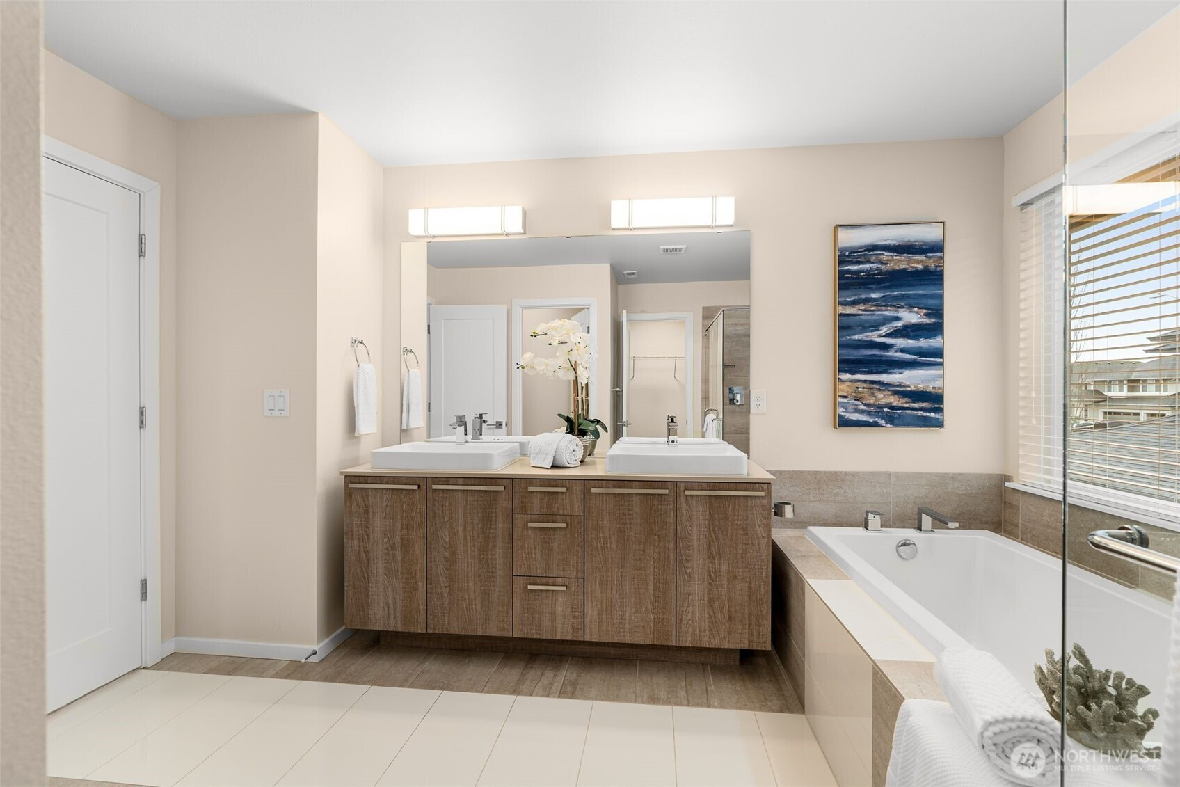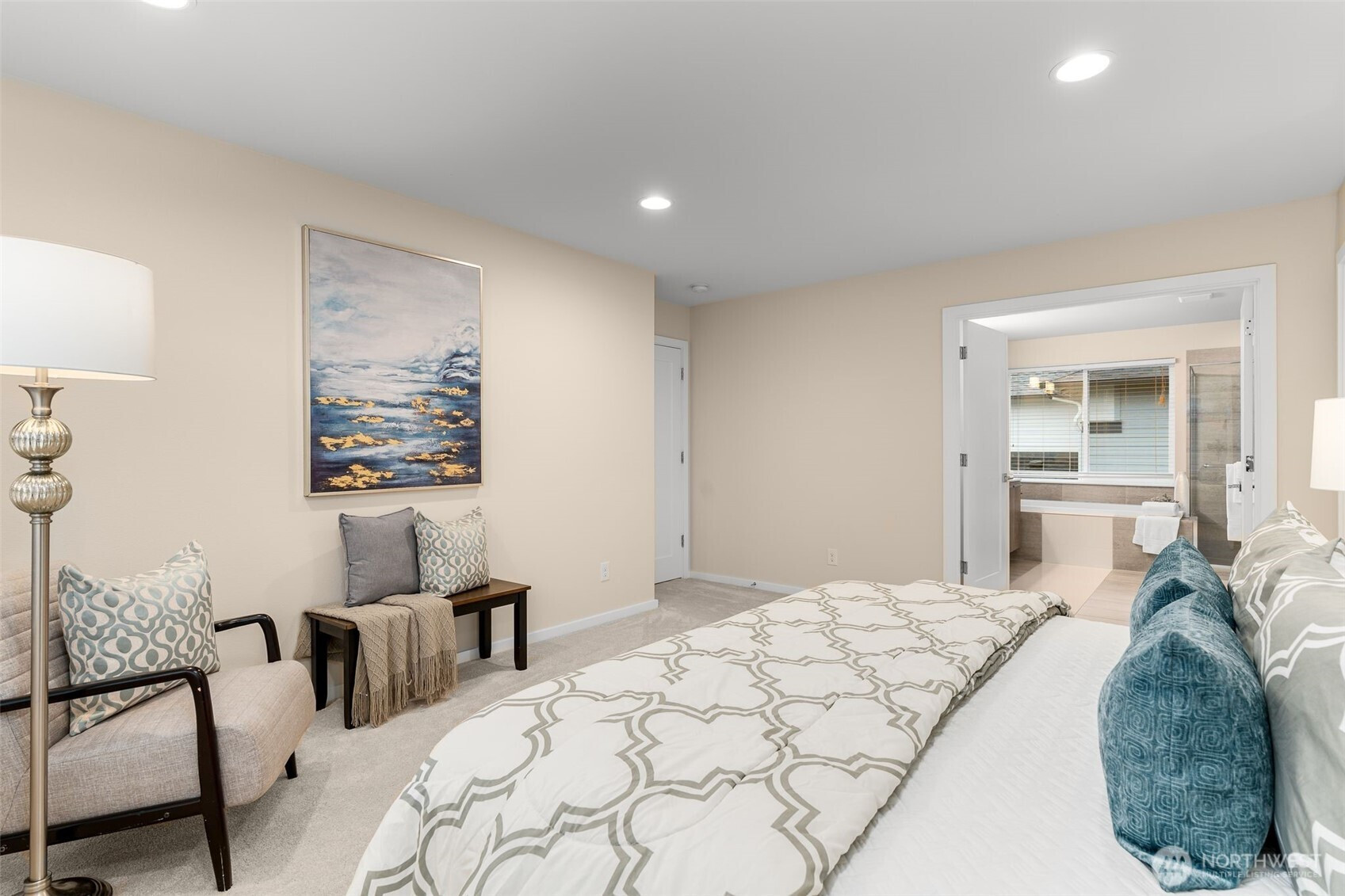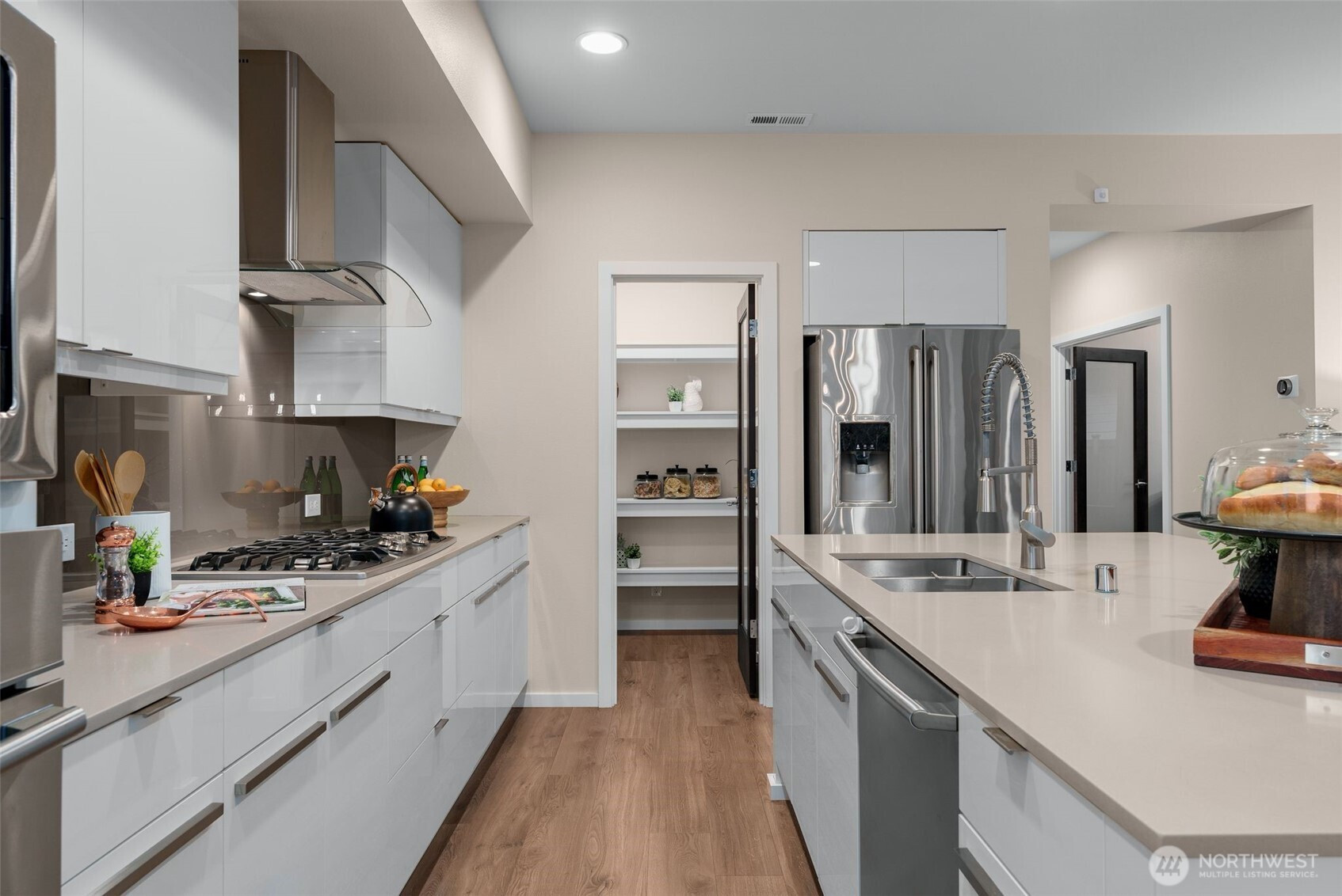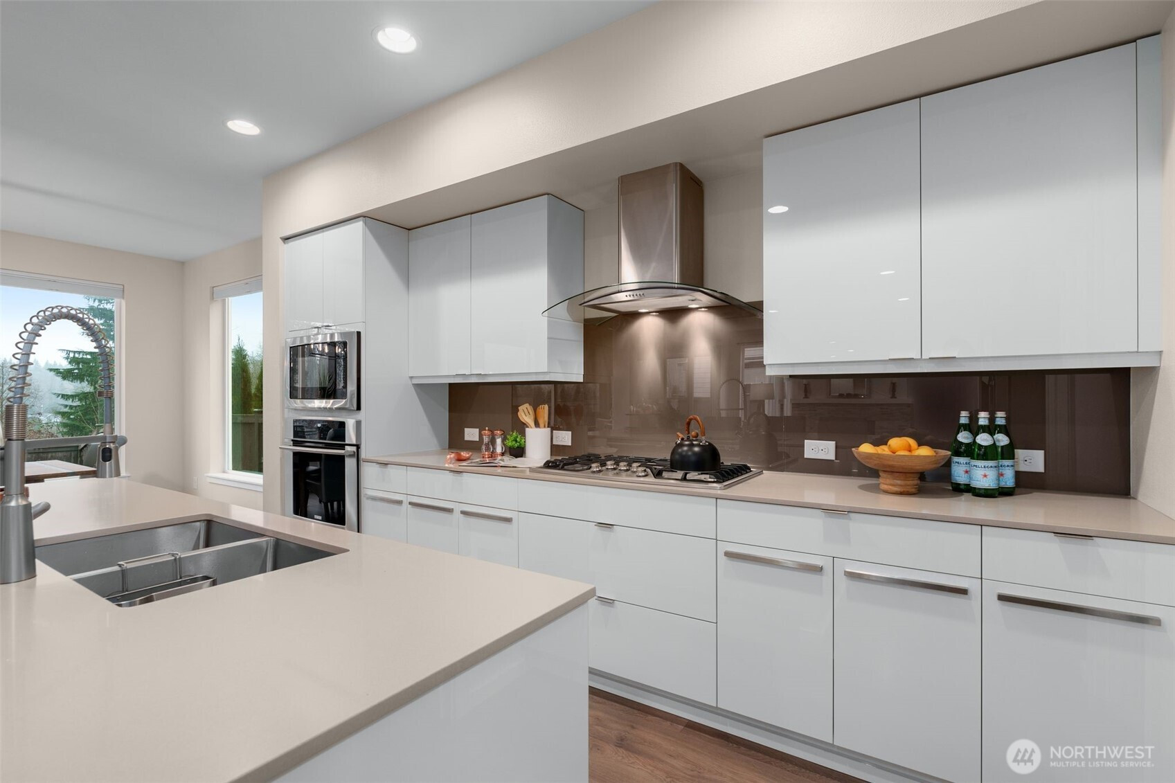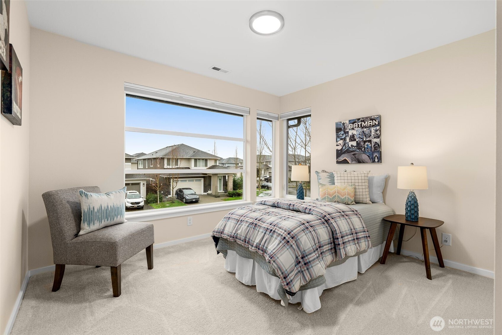 Meticulously maintained MainVue home that faces rare private green space. Light and bright open floor plan with A/C, engineered hardwood floors, and spacious 3-car garage with EV charger and slat storage system. Chef's kitchen includes high-end cabinetry, center island with quartz countertops, and premium appliances. Main floor office with custom California Closets could be 5th bedroom or perfect WFH set-up! Rare covered pergola outdoor patio deck with gas fireplace plus gas BBQ stub makes year round outdoor entertaining a breeze. Spacious primary suite with luxurious five piece bath and TWO walk-in closets. Upper bonus room provides versatile flex space. New interior paint and new carpeting upstairs. Govee permanent holiday lighting system provides app-controlled exterior lighting. Prime location minutes to stores, amenities, walking trails and restaurants with gorgeous valley views.