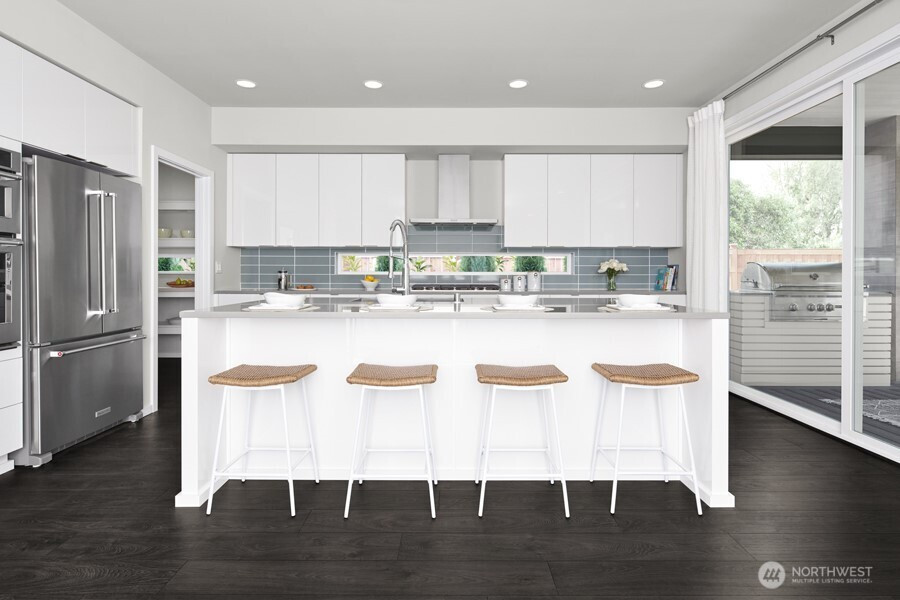 The Maple V5 at Eaglemont Community with MainVue Homes in Monroe is a luxury three-story home featuring a 3-car garage and a double-story Foyer on the lower floor. A Home Office at the front of the home offers direct access to an expansive covered deck, seamlessly connected via wall-height sliding glass doors. At the heart of the home, the centralized Gourmet Kitchen boasts a 3cm Quartz-capped island, a Grand Butler’s Pantry, and an additional walk-in pantry for extra storage. The Multi-Purpose Room on the main floor provides flexible living space with access to the Signature Outdoor Room. The Grand Suite is a private retreat with a double-door entry, a spacious dressing room, a free-standing tub, dual vanities, and a frameless shower.