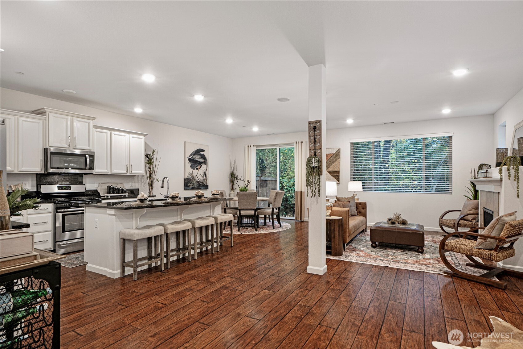 Charming, move-in ready home effortlessly blends a commuter’s dream with peaceful living. Walk to Whole Foods; Just blocks from Alderwood Mall, Costco, Light Rail Station; Quick access to I-5, I-405. This 3B 2.5B home situated next to lush greenery & trails to playground, offers many appealing features. Inviting entry opens to open-concept living space w/gourmet kitchen, featuring a large slab granite island, gas cooktop, pantry; Gas fireplace warms your winter; Enjoy year-round views from serene back patio; Main floor half bath. Upstairs, bright primary suite w/private 5-piece bath & generous closet; plus two bedrooms, full bath, and laundry. Attached 2-car garage. Heat pump provides efficient heating & AC. Inspected—Don’t miss this one!