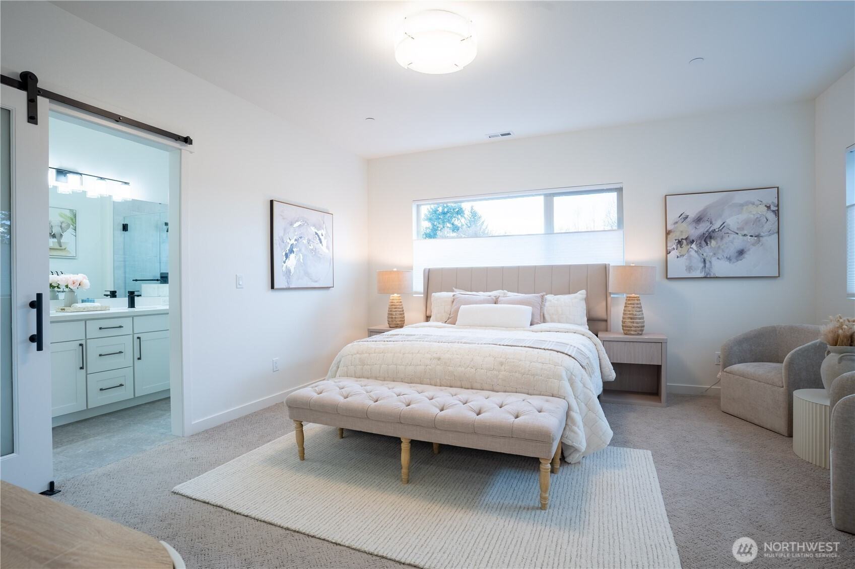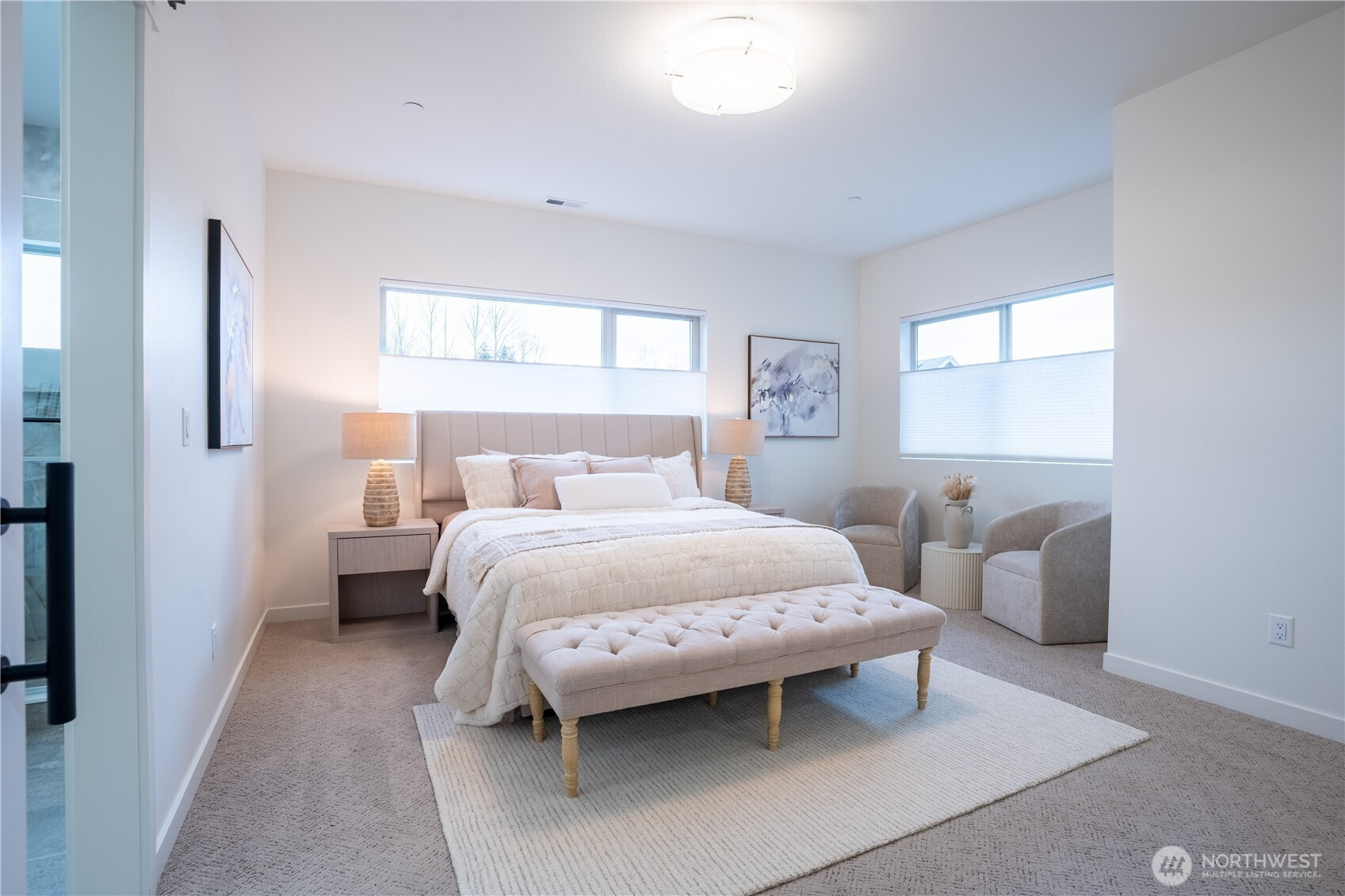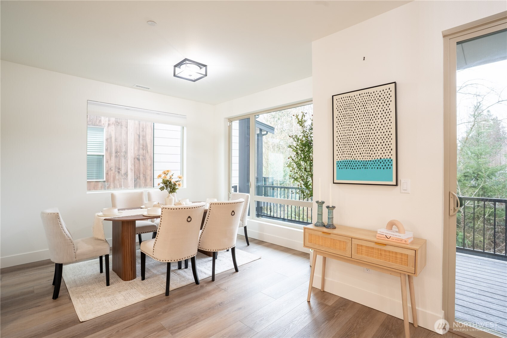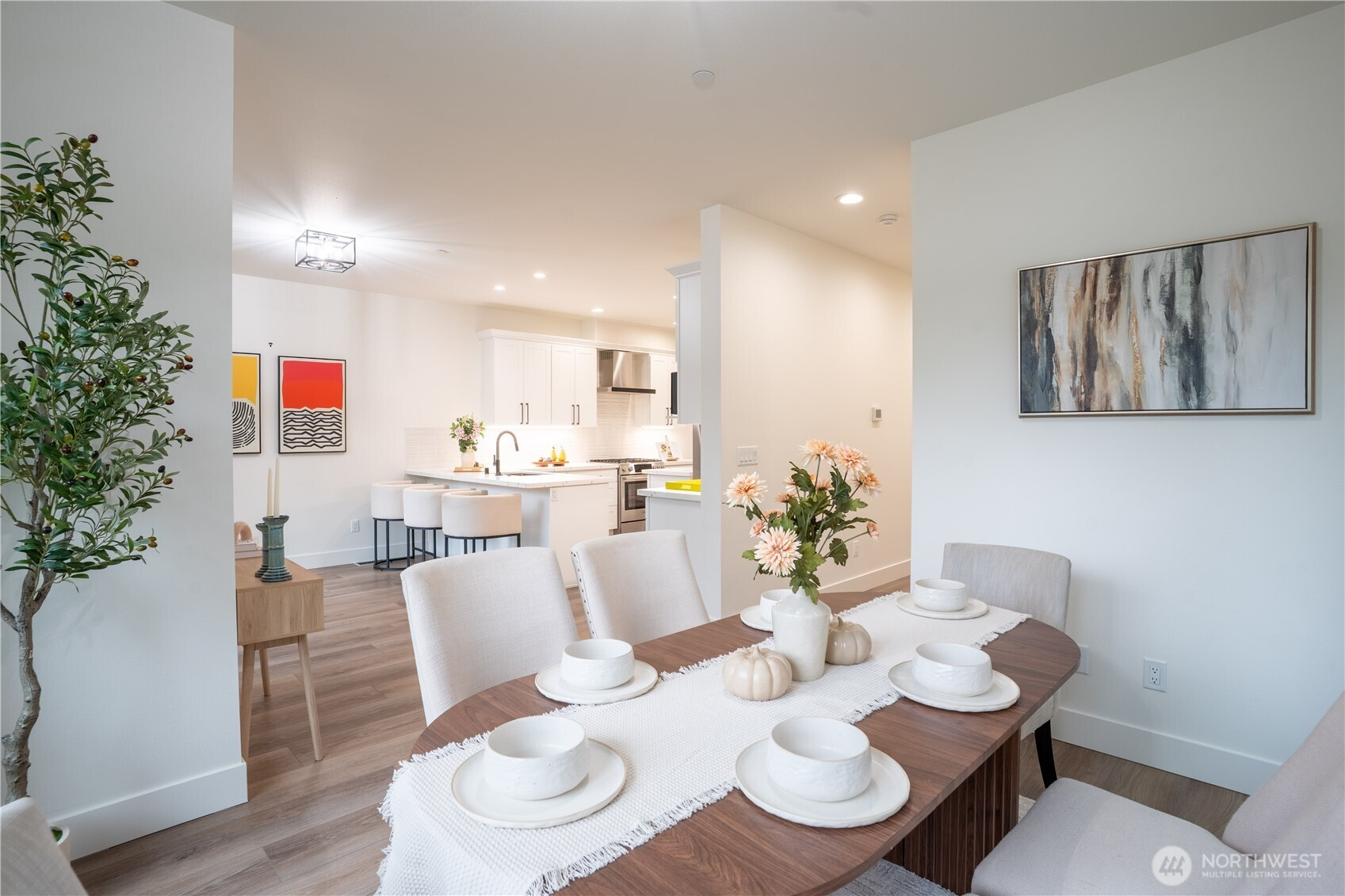 Stylish and spacious home in the desirable Arbor Mist Village community, offering modern finishes and greenbelt privacy with convenient access to Whole Foods, light rail, and Alderwood Mall. This well-designed home features 4 bedrooms plus a bonus/rec room, 3.5 baths, and a 2-car garage. The bright island kitchen includes white shaker cabinets, quartz countertops, stainless steel appliances, and an open layout ideal for everyday living and entertaining. Primary suite offers a designer tiled walk-in double shower with glass doors and a spacious walk-in closet. Enjoy covered decks, a fully-fenced backyard backing to a peaceful greenbelt, and a welcoming front porch. Additional features include 9-foot ceilings, 7-foot doors, a heat pump with A/C, on-demand gas water heater, LVP flooring, fully tiled bathrooms, and window coverings. Convenient commuter location with nearby light rail and easy access to I-5 and I-405. Whole Foods is just across the street, with Alderwood Mall, dining, and everyday conveniences minutes away, while the home remains tucked inside a quiet residential community.