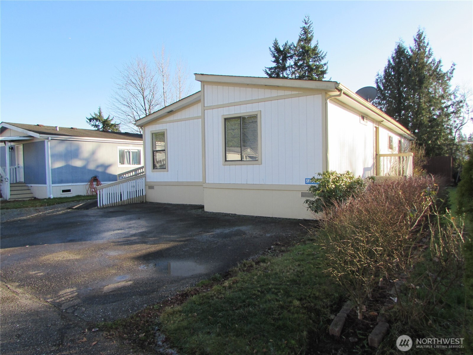 LOCATED IN ALL-AGE PARK BETWEEN SMOKEY POINT & DOWNTOWN ARLINGTON, ON BUS LINE. NICE GLEN RIVER HOME W/ CUSTOM UPDATES THRU-OUT, 3 BEDROOM & 2 BATH 1,456 SQ FT, W/ LIVING & FAMILY ROOMS. CUSTOM WALK-IN SHOWER & CLOSET OFF MASTER BEDROOM, CERAMIC FLOORING IN MAIN LIVING AREAS. LOT RENT IS $895 P/M (UTILITIES COST ARE SEPERATE). OUTSIDE FEATURES ARE NEWER ROOF, PRIVATE PARTIALLY FENCED BACK YARD, LARGE (10' X 12') INSULATED SHED, RAMP TO FRONT DOOR LANDING & SIDE BY SIDE PARKING IN FRONT OF HOME. INSIDE FEATURES ARE UPDATED BATHROOMS/ NEWER FURNACE, CUSTOM WINDOWS AND LOTS OF STORAGE. HOME IS VACANT (ESTATES SALE) AND MOVE IN READY. BUYER NEEDS PARK APPROVAL TO LIVE HERE AND LIMIT TO 2 DOGS OR CATS UNDER 25 LBS./ 12" IN HEIGHT. FINANCING IS AVAILABLE (O.A.C.). SELLER IS WORKING ON GETTING TILE WORK (SMALL AREA IN MASTER BATH) COMPLETED PRIOR TO CLOSING.