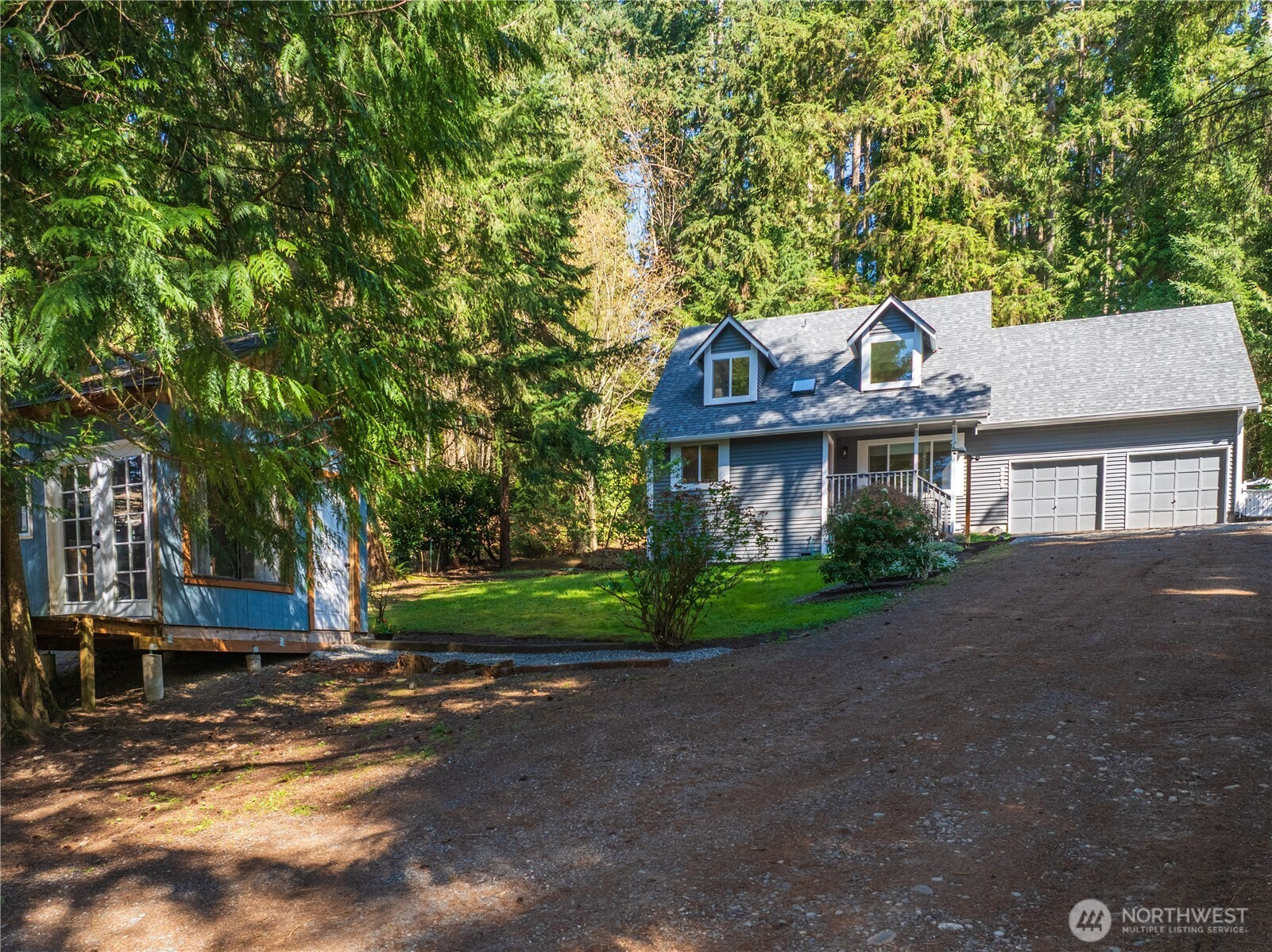 Exquisitely reimagined from the studs out (including all systems), this 3+Bedroom (4th bedroom potential), 1.75 bath residence is set on a shy 3/4 acre parcel enveloped by tranquil, wooded surroundings. A charming country porch introduces a refined interior defined by elevated craftsmanship and thoughtfully curated finishes. The dramatic living room showcases soaring vaulted ceilings and a fireplace adorned with a custom solid wood mantel. The chef's kitchen is appointed with wonderful finishes, expansive prep space, and a generous dining area, with French doors opening to a secluded deck and fire pit for effortless indoor-outdoor living. The upper-level primary suite offers a spa-inspired bath, walk-in closet, and intimate sitting nook. An open loft with upper-level laundry provides flexibility, while the impressive 400 sqft bonus room with exposed beam vaulted ceilings is ideal as a theater, game or secondary suite room. A 110 sqft outbuilding adds versatility for studio, crafts, or office. Complete with a 2 car garage and proximity to premier amenities. This is truly a special place to call home!