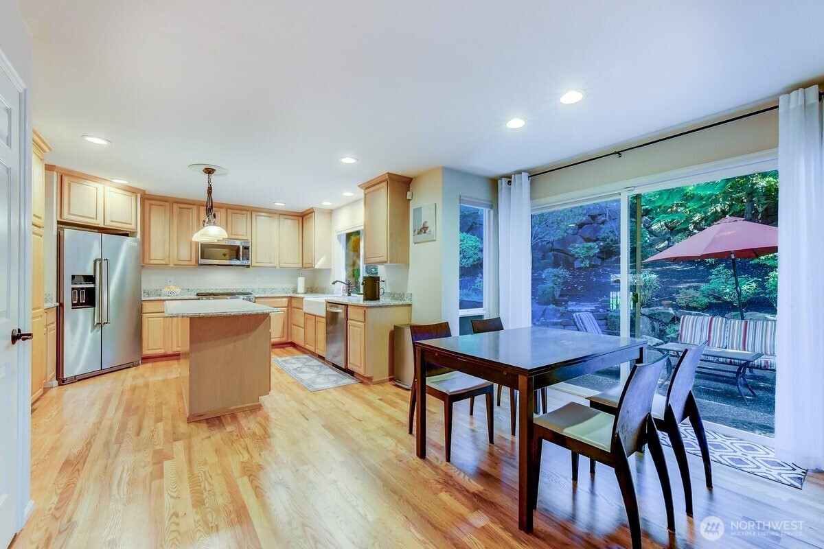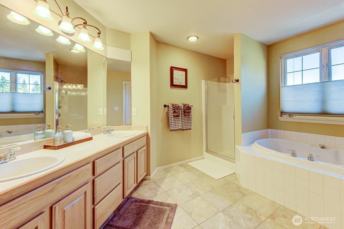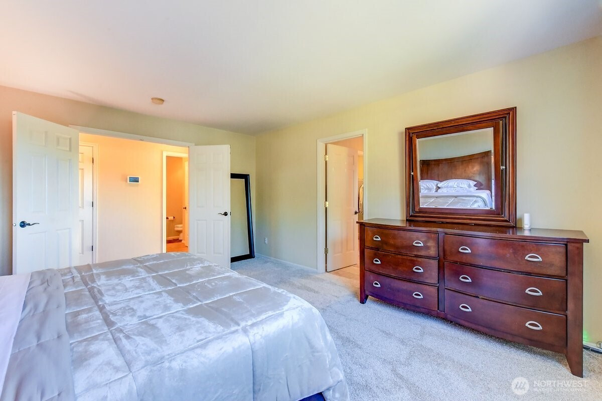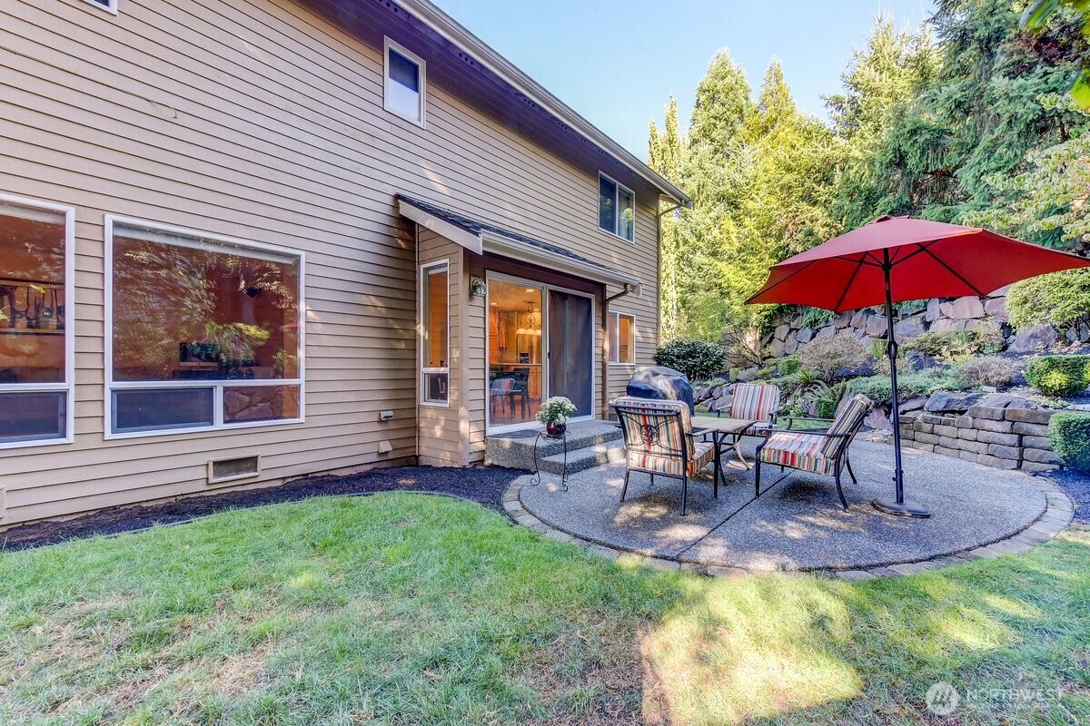 Welcome home to this exceptional Buchan-built residence, ideally located at the end of a premier cul-de-sac in Bothell’s highly desirable Redhawk community. Set on one of the largest and most private lots in the neighborhood, this fully fenced property offers a serene backyard oasis while maintaining convenient access to top-rated Northshore schools. Inside, the thoughtfully designed floor plan showcases soaring ceilings and sun-filled living spaces, all meticulously maintained. Major updates provide peace of mind, including a new roof and furnace (2016), water heater (2023), and fresh exterior paint (2024). At the heart of the home, the chef’s kitchen features quartz countertops, a generous island, a farmhouse sink, and premium KitchenAid appliances—perfect for everyday living and entertaining alike. The main-floor primary suite offers comfort and convenience, complete with a spacious en-suite bath and walk-in closet. An adjacent flex room offers a versatile layout, easily serving as an additional bedroom or a dedicated home office. Upstairs, two additional bedrooms are complemented by an expansive bonus room, offering endless possibilities and showcasing beautiful mountain views on clear days. A three-car garage and oversized driveway provide abundant space for vehicles, hobbies, and guests. Blending timeless architecture with modern updates, this remarkable home is a rare opportunity not to be missed! Perfect location near several amenities, I-405, and much more!