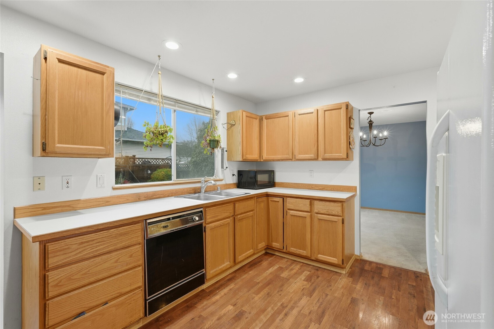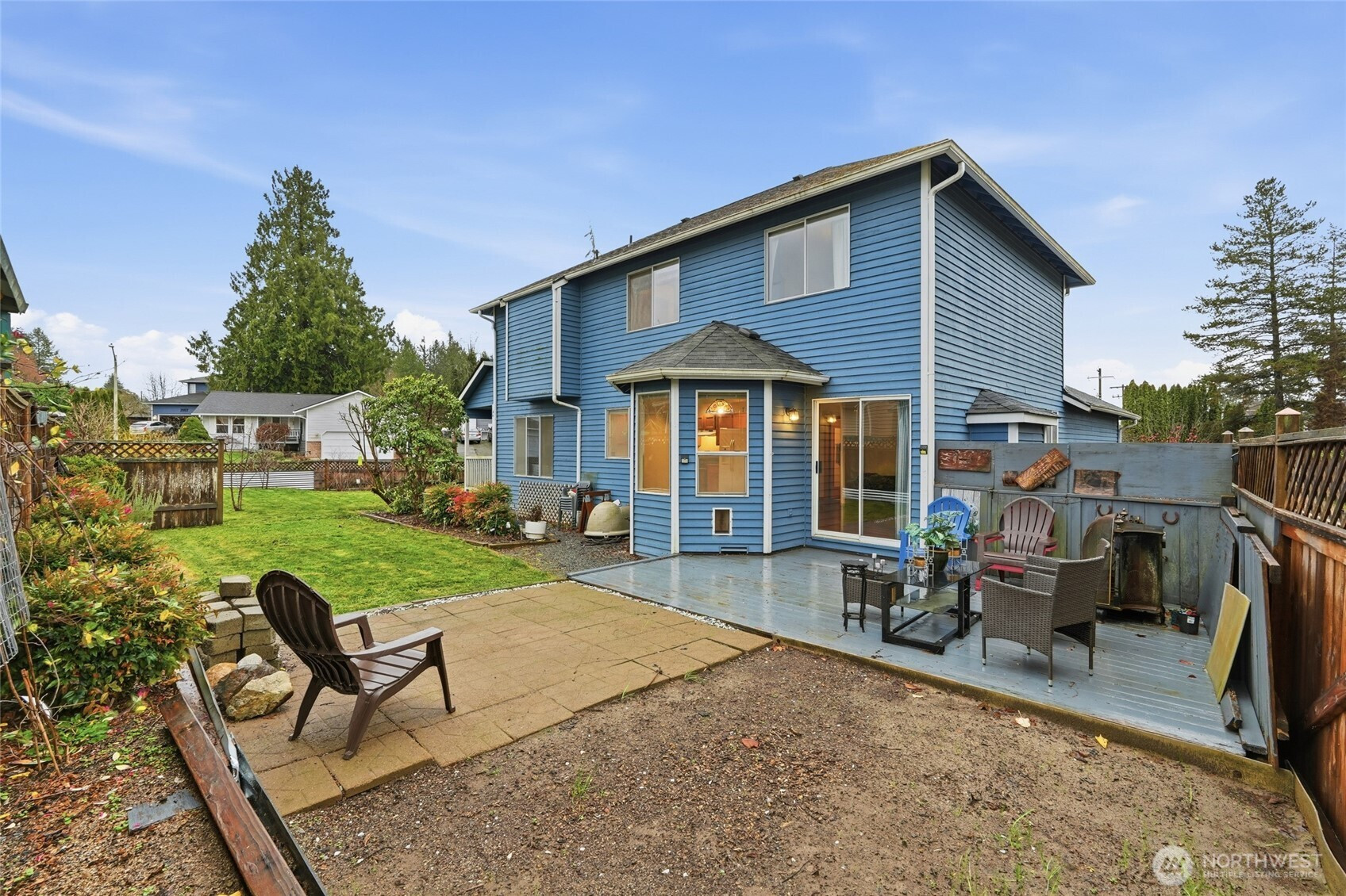 Step into comfort and convenience in this charming 3-bedroom, 2.5-bath Lake Stevens home. With 1,980 sq ft of thoughtfully designed living space, this two-story features an inviting hardwood entry, a dedicated dining room, and a generous kitchen overlooking the family room. Relax in the additional living room with its warm gas fireplace. Upstairs, the expansive primary suite offers a walk-in closet and a spacious private bath with dual sinks. Outside, the level fenced backyard is perfect for outdoor living, pets, and gatherings. Spacious 2 car garage and gas utilities. Separate mud/laundry room next to downstairs half bath. All set within the sought-after Lake Stevens community—just a short walk to downtown amenities, parks, and the lake.
