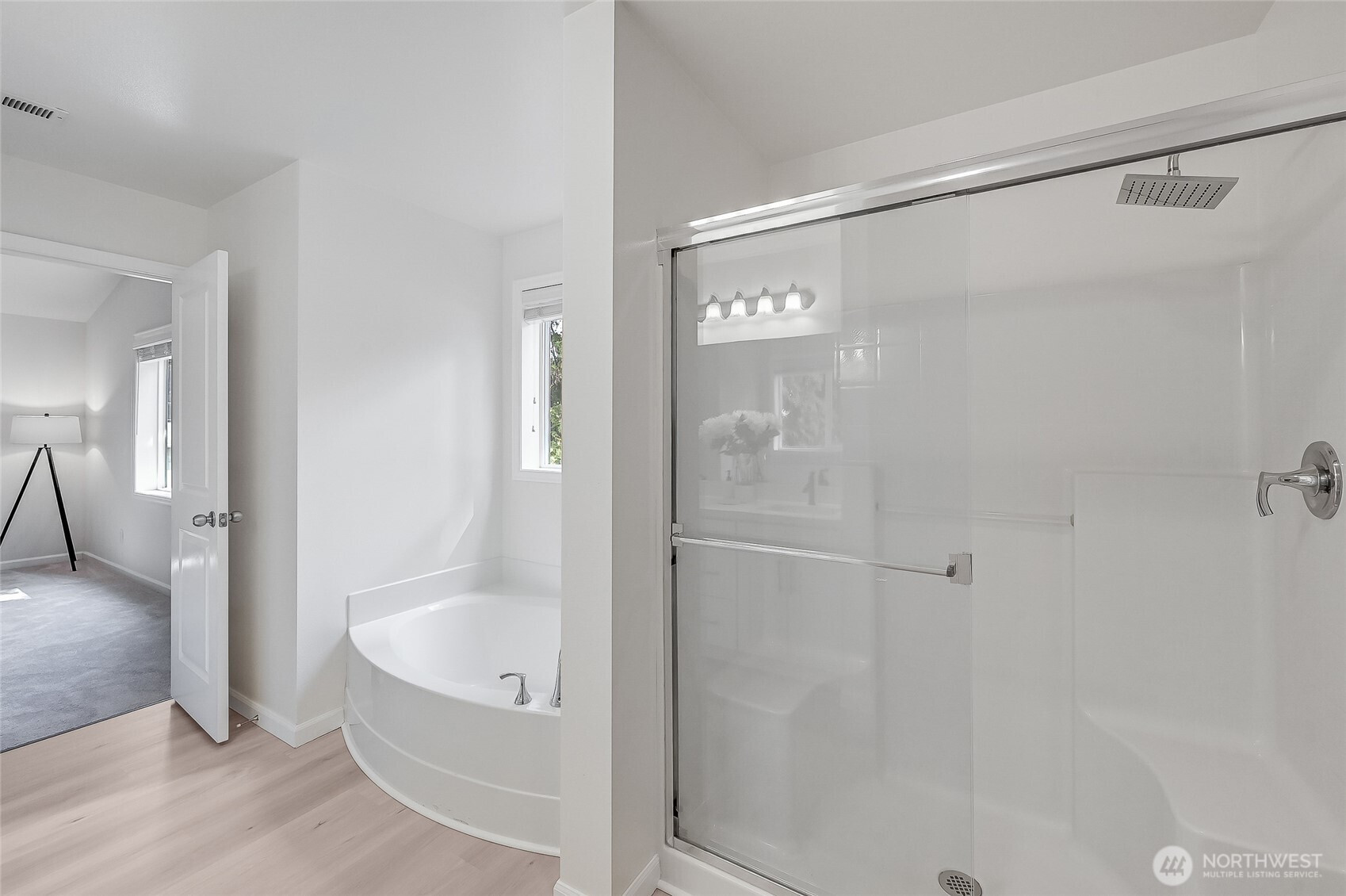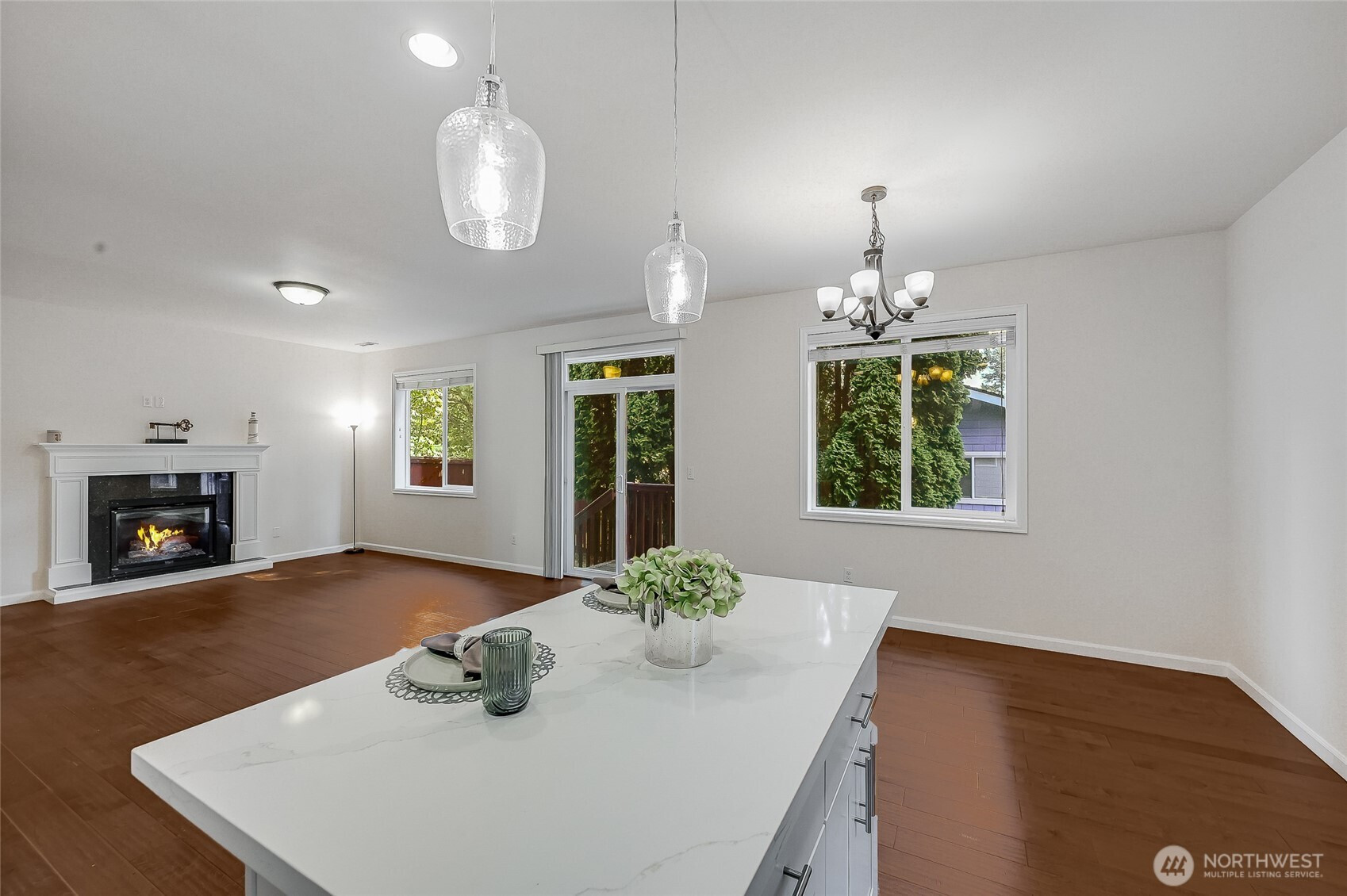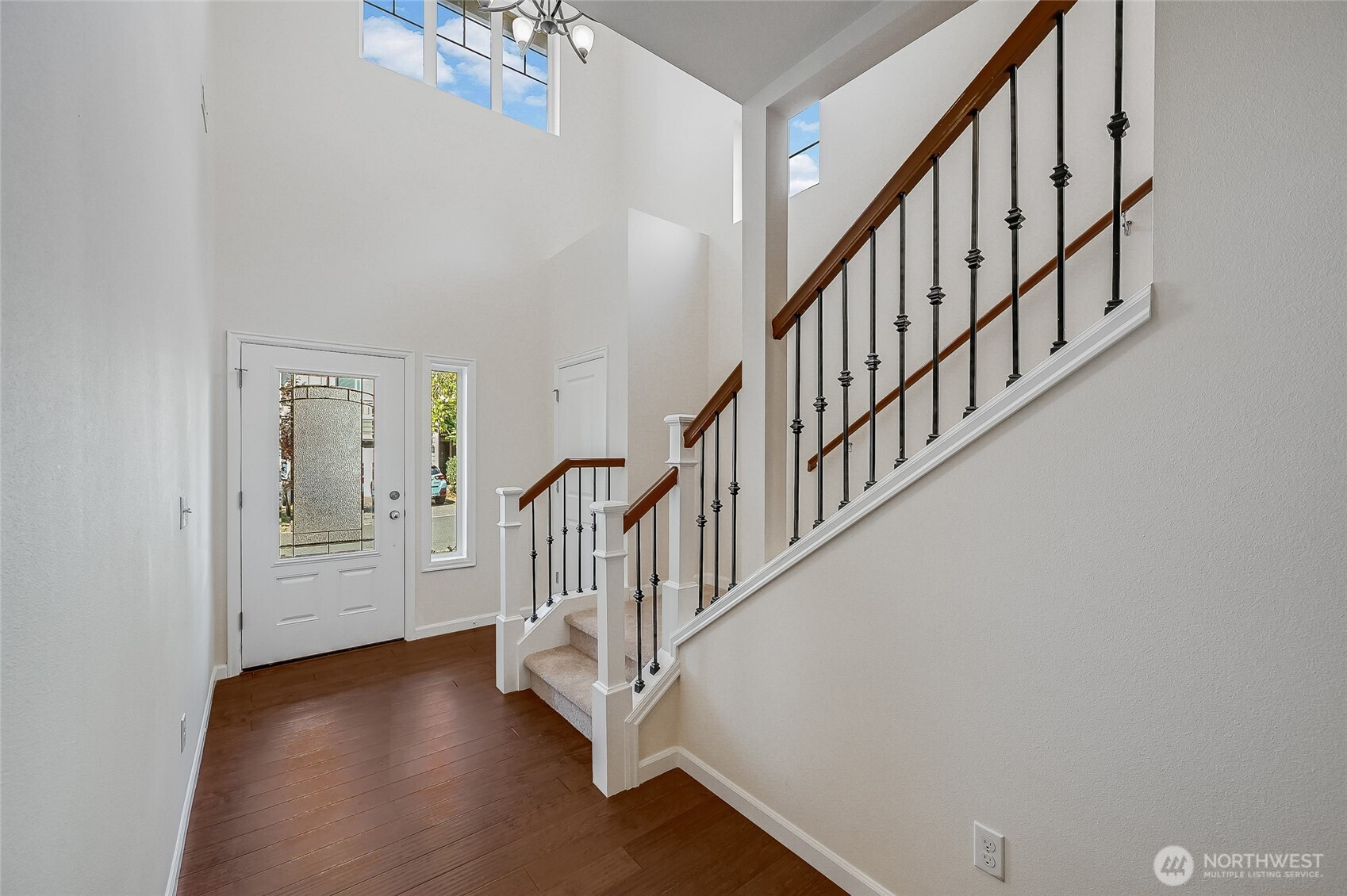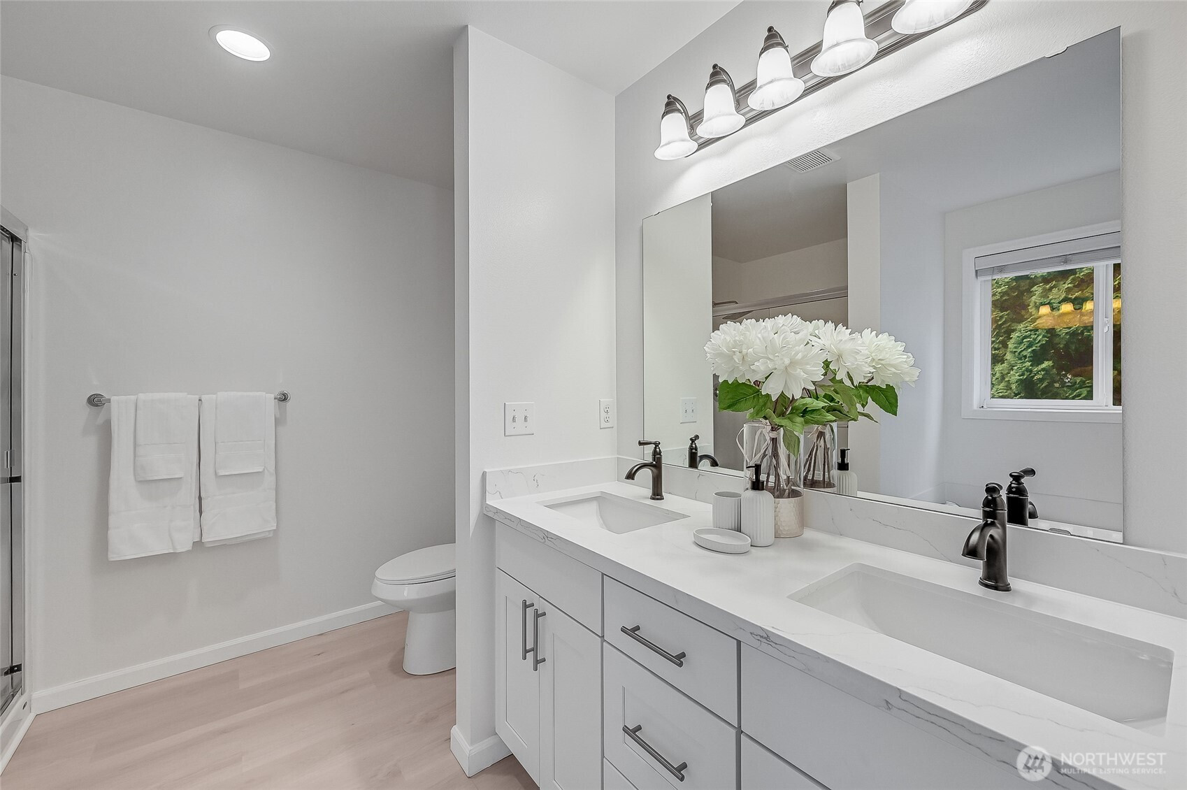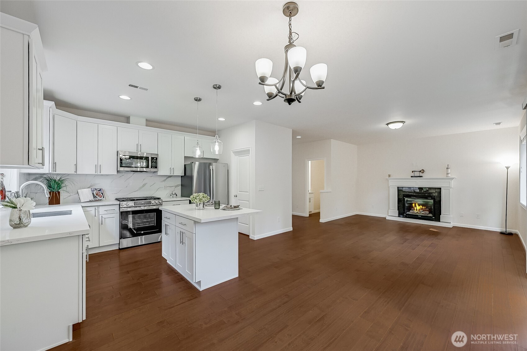 Welcome to Danbury! MOVE IN READY!!!! This detached corner home boasts high ceiling entryway, open floor plan with a fully remodeled kitchen and tile backsplash, brand new kitchen appliances, and bathroom cabinets and quartz counter top. New carpet upstairs and fresh new paint. Painted millwork, light fixtures throughout, wrought iron ballasts. Master suite w/elegant vaulted ceiling. Plenty of natural sunlight with trees in backyard for added privacy. Lake and parks near by. Close to I-5 and Hwy 99. Low HOA Dues !!