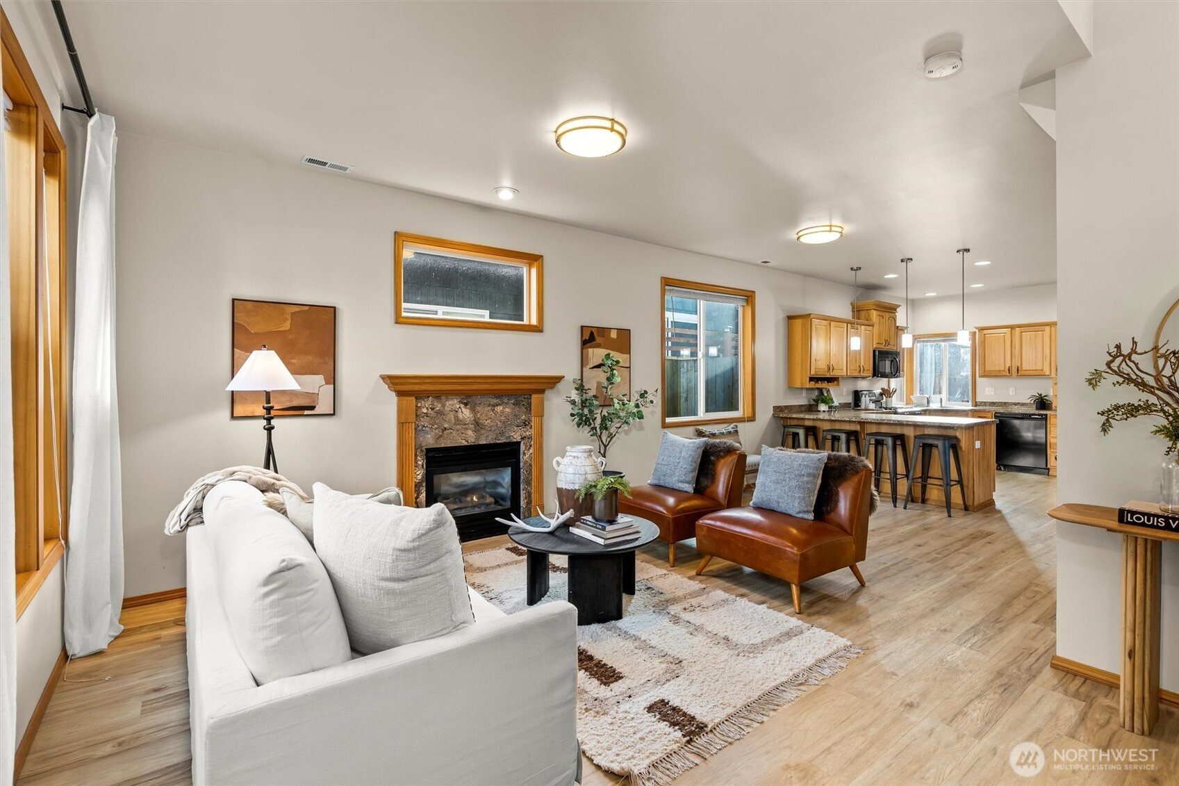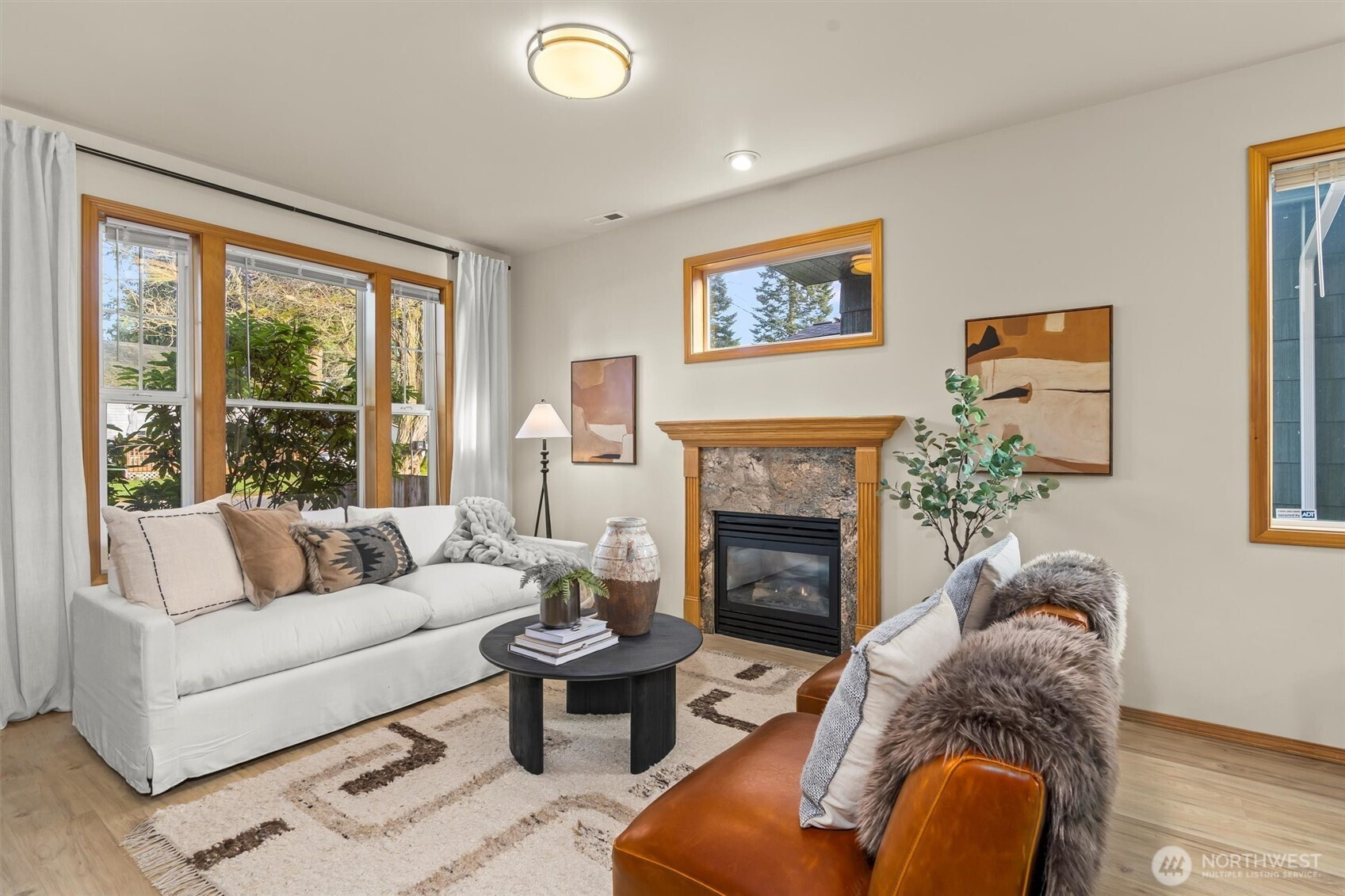 Welcome home to this standout, commuter friendly residence in the heart of central Everett! Built in 2009 this beautifully maintained home features soaring 9-foot ceilings throughout, cozy gas fireplace, chef inspired kitchen with gas cooktop range, massive counter space, rich hickory cabinetry, eat-on bar, and built-in wine rack. Perfect for entertaining this spacious layout offers 3 beds and 2.5 baths, each showcasing custom tiled showers for a spa like feel. Energy efficiency shines with a tankless water heater and Aqua Thermal heat + hardie board siding. Enjoy a charming covered front porch, a low-maintenance backyard retreat, and a detached two car garage with alley access. Minutes to transit, shopping, dining, and major Hwys. No HOA!
