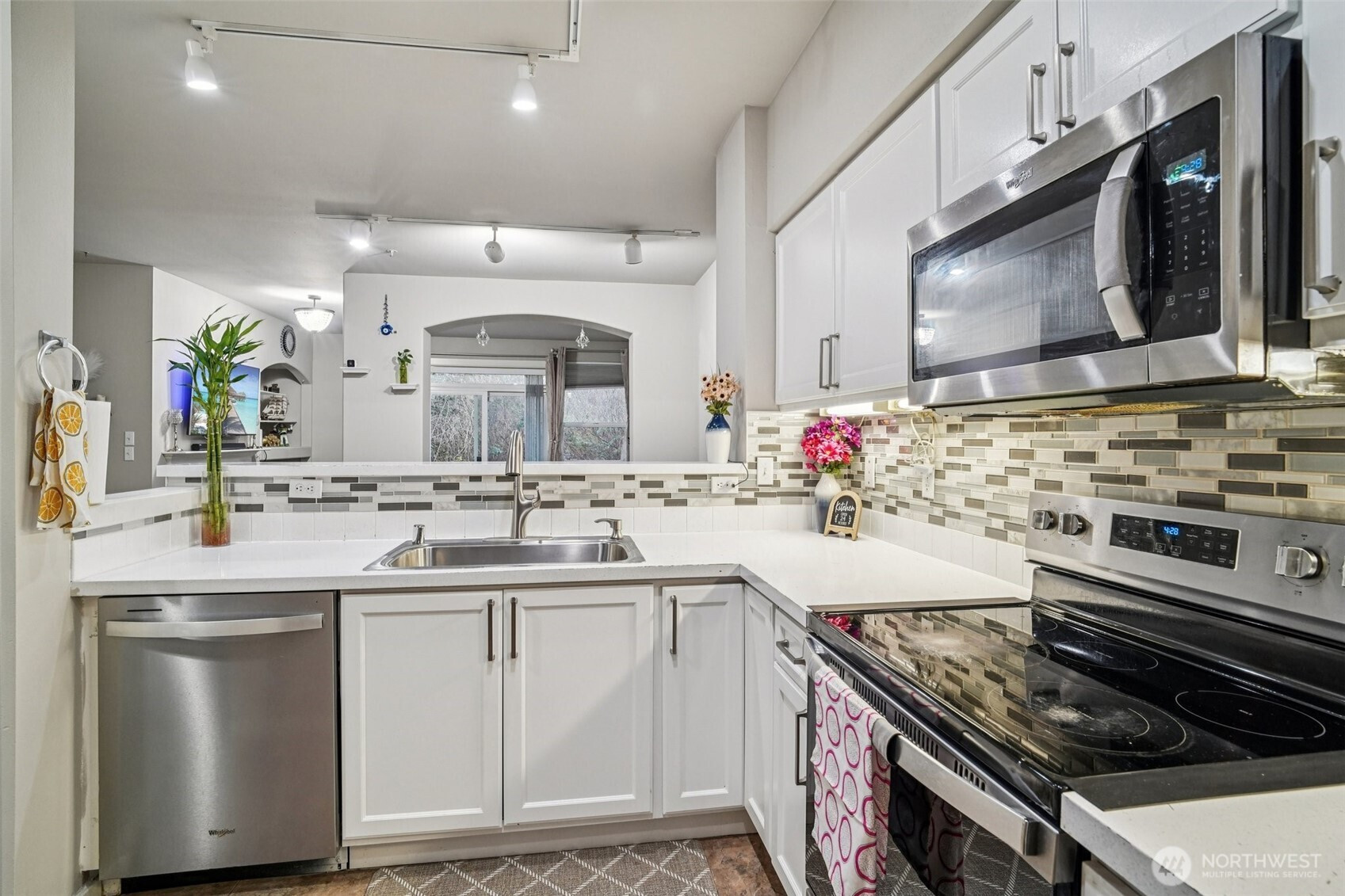 Ground-floor remodeled unit at Tambar Condos offering the perfect blend of location, comfort, and privacy in the desirable Northshore School District. This light and bright 3-bedroom, 2-bath condo features a spacious kitchen with breakfast bar, pantry, updated cabinets, Stainless Steel kitchen appliances (2023), and adjacent dining area. Large living room with gas fireplace overlooking a lush greenbelt. Step outside to your private walkout patio with storage closet. The generous primary suite includes dual vanities and a walk-in closet. You’ll love the convenience of in-unit laundry. Enjoy ample guest parking, a pet-friendly community, and no rental cap. HOA dues cover natural gas for fireplace, water, sewer, garbage, and common area maintenance. Rare parking package includes three parking spots: an attached 1-car garage, an additional 1-car garage, and an uncovered space out front (plus room to park in front of the garage). Ideally located near parks, shops, dining, and easy access to I-405 and I-5 for a seamless commute.