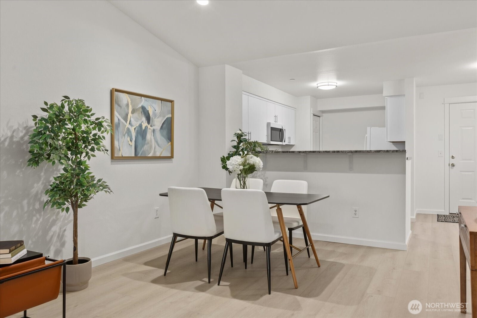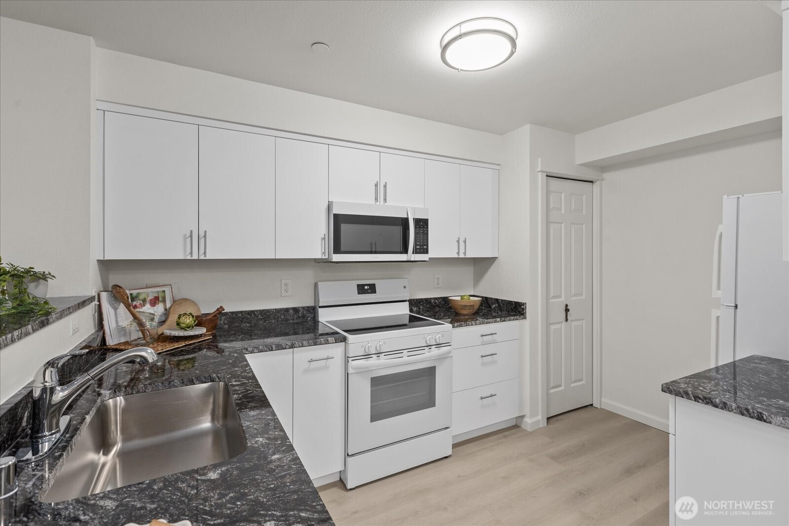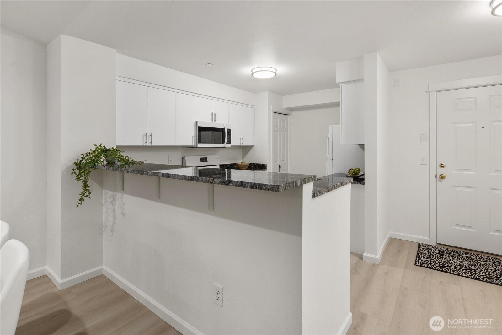 ALMOST EVERYTHING IS NEW in this TOP-FLOOR, 2-BEDROOM, 2-BATH, 924 sqft condo at ever-popular TAMBAR! Step inside to freshly painted interiors with airy vaulted ceilings and new luxury vinyl plank flooring! Brand-new crisp white kitchen cabinets with soft-close drawers, all new sleek white appliances, elegant slab granite countertops and an undermount kitchen sink! Plush new carpet in both bedrooms. The Primary bedroom has an attached ensuite bathroom and a walk-in closet! New bathroom vanities with granite countertops! All new 6-panel interior doors and modern brushed nickel light fixtures used throughout! Enjoy the warmth and convenience of the gas fireplace under an art niche in the living room. Step onto your private balcony to watch the birds while sipping morning coffee; or relax with a nightcap under the stars. Stack washer and dryer in the utility closet plus a brand-new hot water tank! There's also an extra storage closet off the balcony. Two deeded parking spaces available. Park in your oversized single car garage (#107 that has shelving and overhead storage) or use your uncovered parking space located directly across from your garage (#74). Ample guest parking available. New building roof! Low HOA fee! No rental cap and no special assessments! Outstanding location near Thrasher's Corner, Canyon Park and Mill Creek has an abundance of dining, shopping, transit options. Only about 2 miles from 405 & I5. Welcome home!