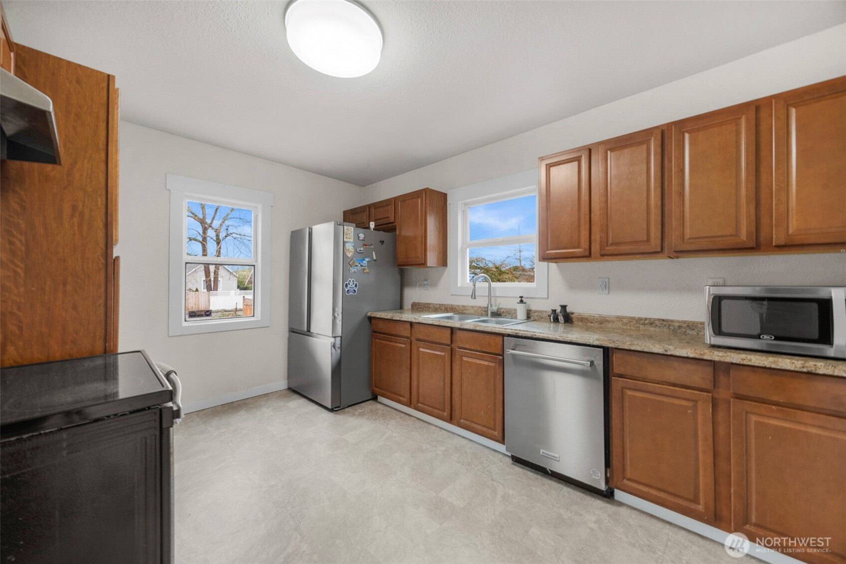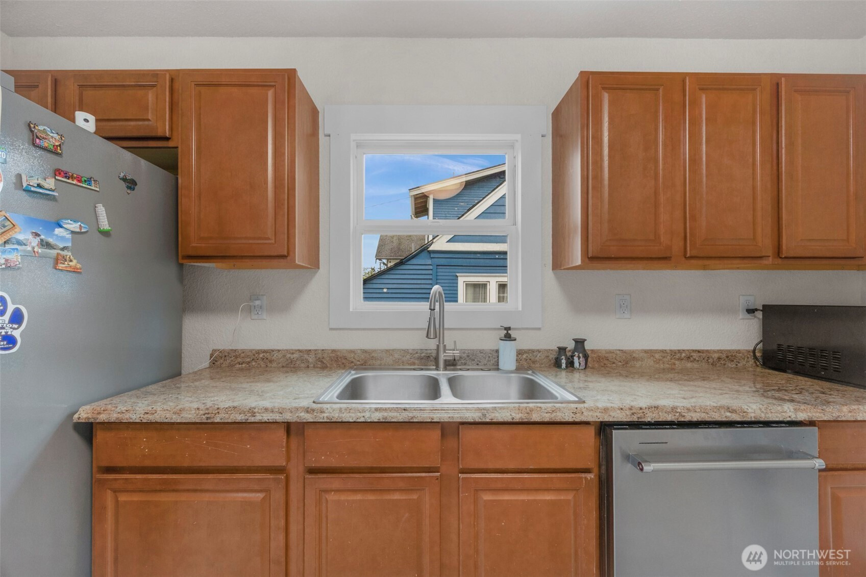 Clean, updated, and filled with natural light, this 3-bedroom home offers a warm, welcoming feel with a layout that is both functional and inviting. The spacious main living area flows effortlessly into a large kitchen and an updated main-floor bath, while new flooring and fresh interior paint add a crisp, refreshed touch. Upstairs, you’ll find two comfortable bedrooms along with a versatile loft—perfect for a home office, reading nook, or flex space. Thoughtful updates, including a newer roof, windows, siding, and hot water tank, provide everyday peace of mind. Set on a level, usable lot with R2 zoning and potential DADU opportunity (buyer to verify), the property also features RV parking, alley access, a storage shed, and room to relax or entertain. Tucked into a quiet, walkable neighborhood near parks, downtown Everett, the marina, shopping, and dining, with easy access to commuting routes and North Cascades adventures.