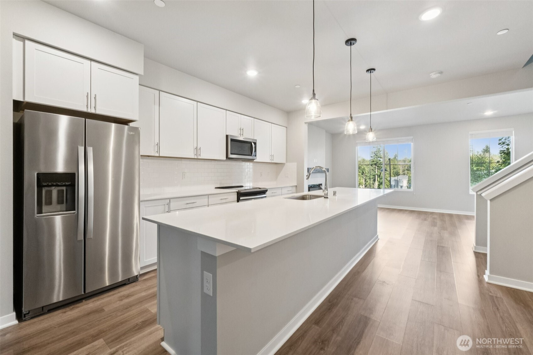 Welcome to The Farmhouses at Roxburghe! This well maintained & move-in ready townhouse boasts 1,836 sq.ft. of modern living space. End unit features greenbelt NGPA on 2 sides, deep garage w/ storage space, extra parking space & nearby guest parking. Covered front patio entry opens to a large foyer space. Main floor boasts 9ft ceilings & open floor plan w/ lots of natural light. Quartz kitchen w/ ample counter & cabinet space, matching ss appliances, living room w/ gas fp, full dining room & powder room. Upstairs find a spacious primary suite w/ 3/4 bath inc. quartz vanity, 2 additional bedrooms, full guest bathroom & laundry. Community features trails, parks & recreation areas. Desirable Lake Stevens School District.