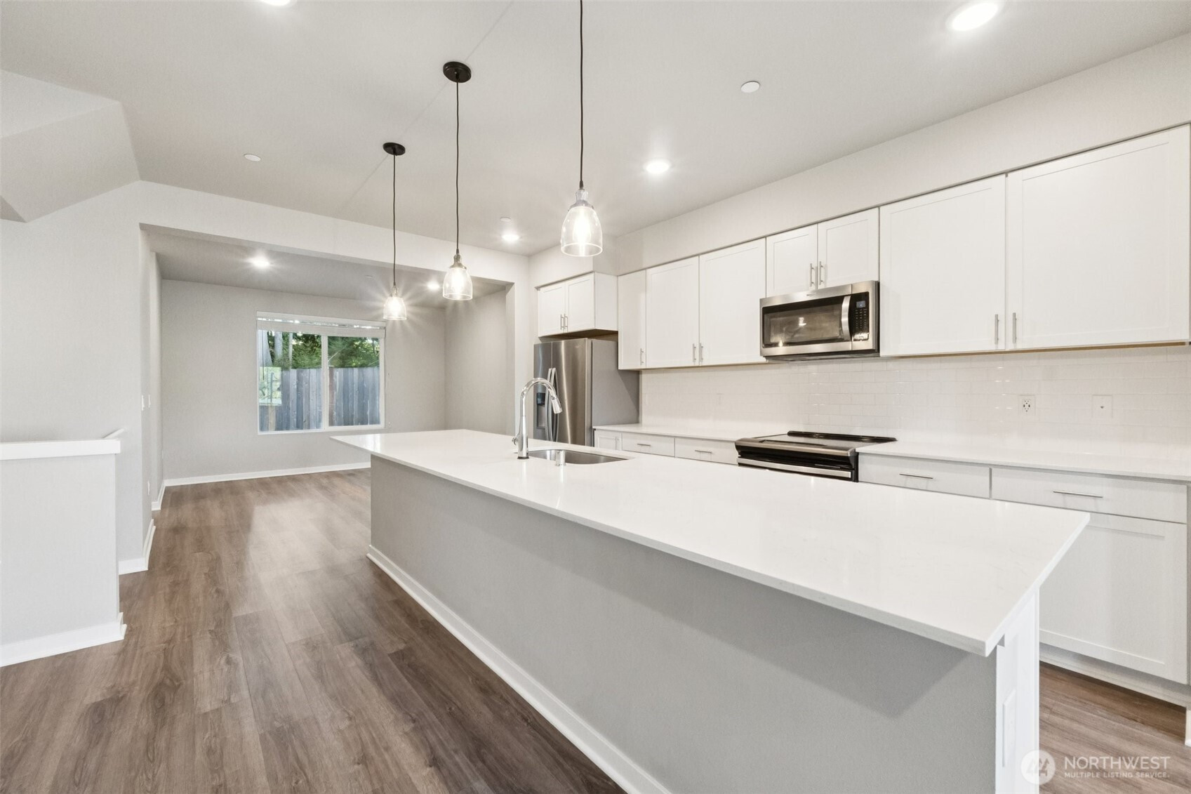 Welcome to The Farmhouses at Roxburghe! This well maintained & move-in ready townhouse boasts 1,836 sq.ft. of modern living space. End unit features greenbelt NGPA on 2 sides, deep garage w/ storage space, extra parking space & nearby guest parking. Covered front patio entry opens to a large foyer space. Main floor boasts 9ft ceilings & open floor plan w/ lots of natural light. Quartz kitchen w/ ample counter & cabinet space, matching ss appliances, living room w/ gas fp, full dining room & powder room. Upstairs find a spacious primary suite w/ 3/4 bath inc. quartz vanity, 2 additional bedrooms, full guest bathroom & laundry. Community features trails, parks & recreation areas. Desirable Lake Stevens School District.