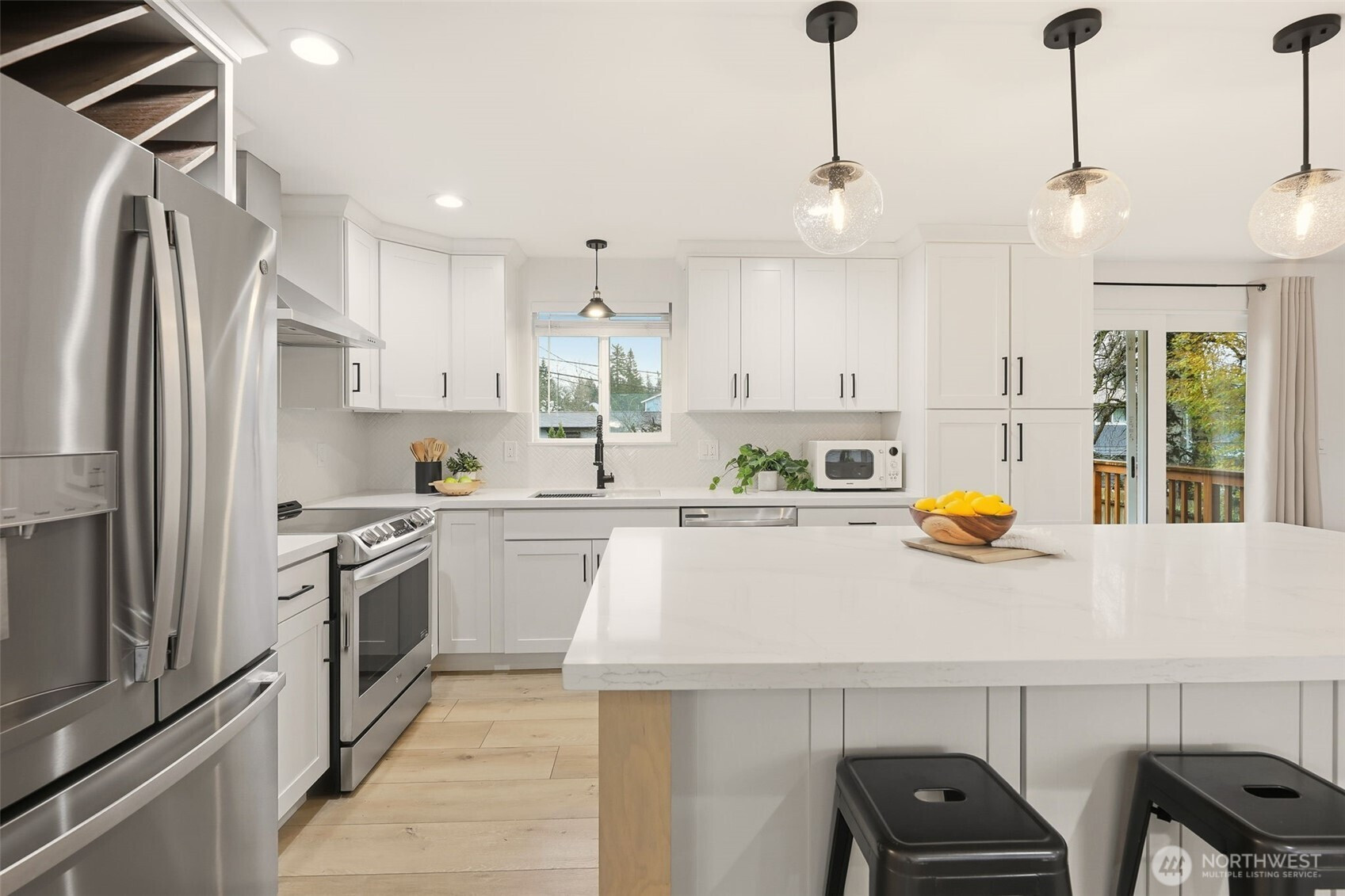 Welcome home. 3-bed 2-bath in a quiet cul-de-sac w/ no HOA—perfect for those who want freedom to park a boat, RV, or extra vehicles. Inside, you’ll find a remodeled kitchen & bathrooms w/ new cabinets, modern quartz counters, & fresh flooring for a clean contemporary feel. The spacious bonus room makes a great home office, media space, gym, or playroom. The home has also been upgraded w/ enhanced cooling for year-round comfort. Step outside to your fully fenced, oversized yard, w/ newer deck & covered patio. Ideal space for pets, gardening, or outdoor entertaining. Located just min from Whole Foods in Lynnwood, this home offers unbeatable location, convenience, excellent high-speed internet, & Edmonds School District. Pre Inspected.