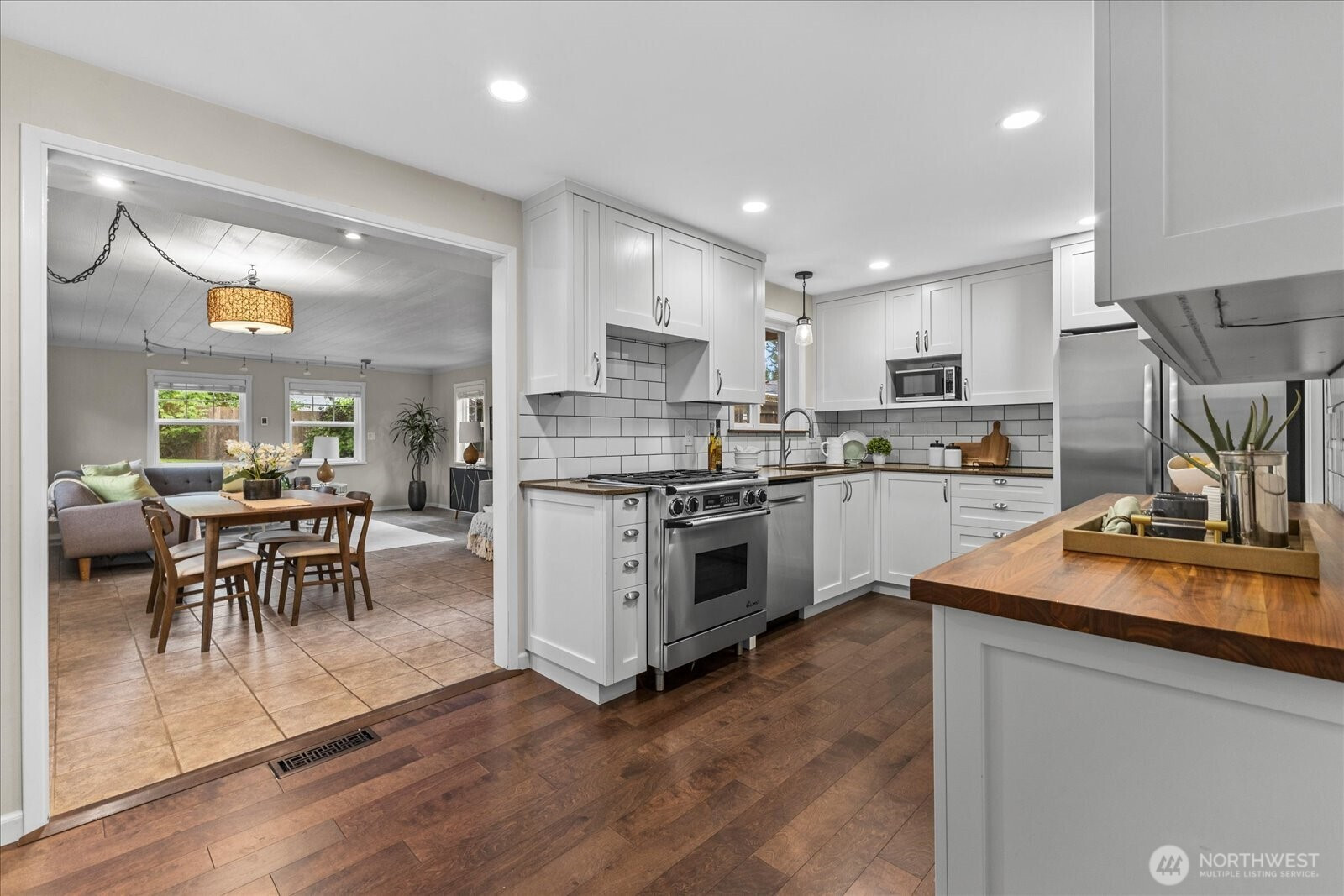[Fully Updated w/ Premium Finishes], this is a home designed for those who love to gather & entertain. Expansive living spaces w/ engineered hardwoods create a warm, inviting atmosphere. The chef’s kitchen shines w/ quartz countertops, crisp white cabinetry & high end SS appliances. Two spacious living rooms invite both lively gatherings and quiet moments. 2 main-floor bedrooms & upstairs, the primary suite w/ flex space provides a private retreat. Outdoors enjoy gorgeous landscaping, fully fenced backyard w/ storage shed, a spacious patio perfect for BBQs & cozy summer evenings. 2 car garage + RV parking. New roof just installed. Prime location w/ quick access to I5, 405, shopping, dining, interurban trail & mins to new light rail station.