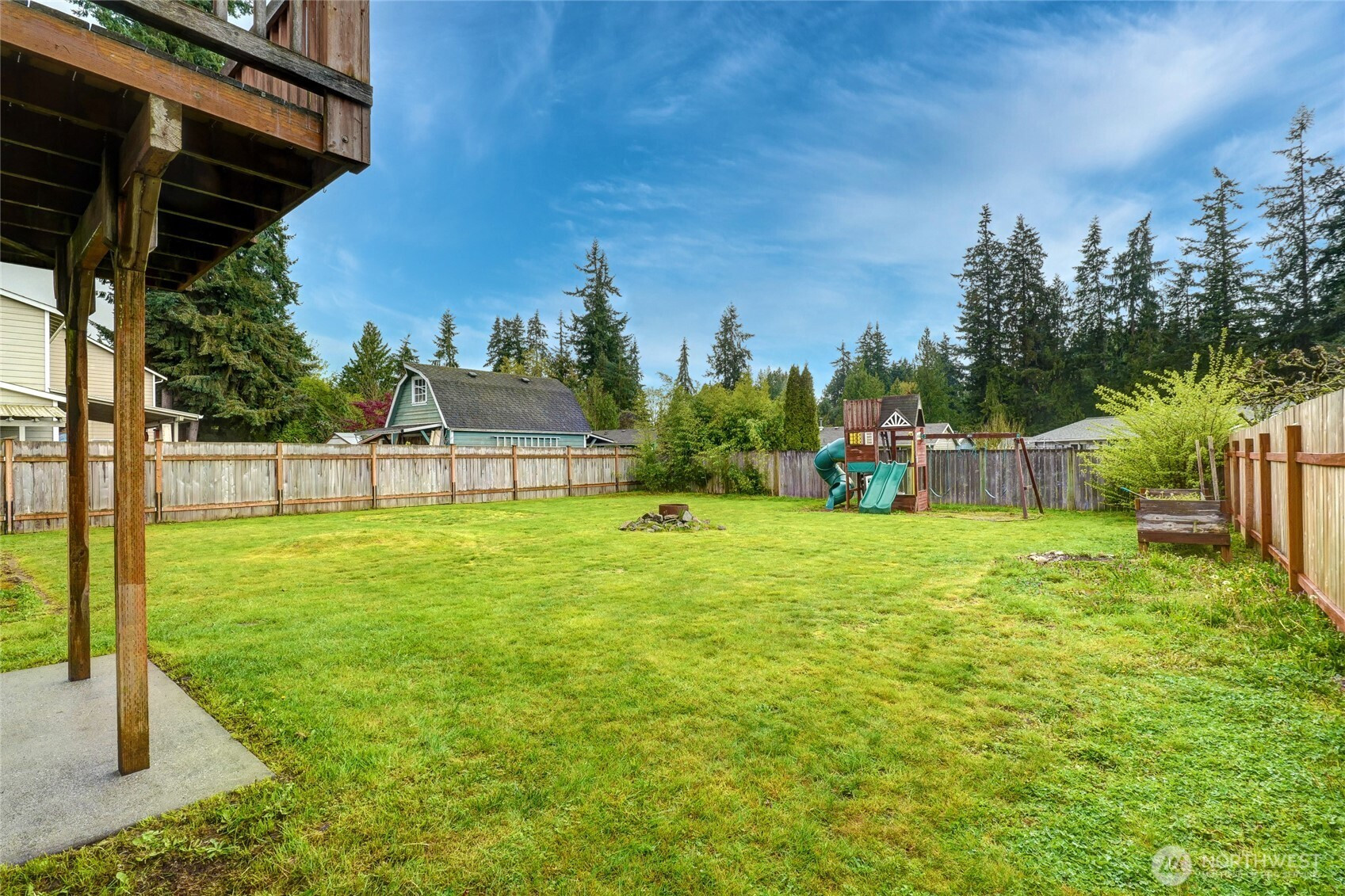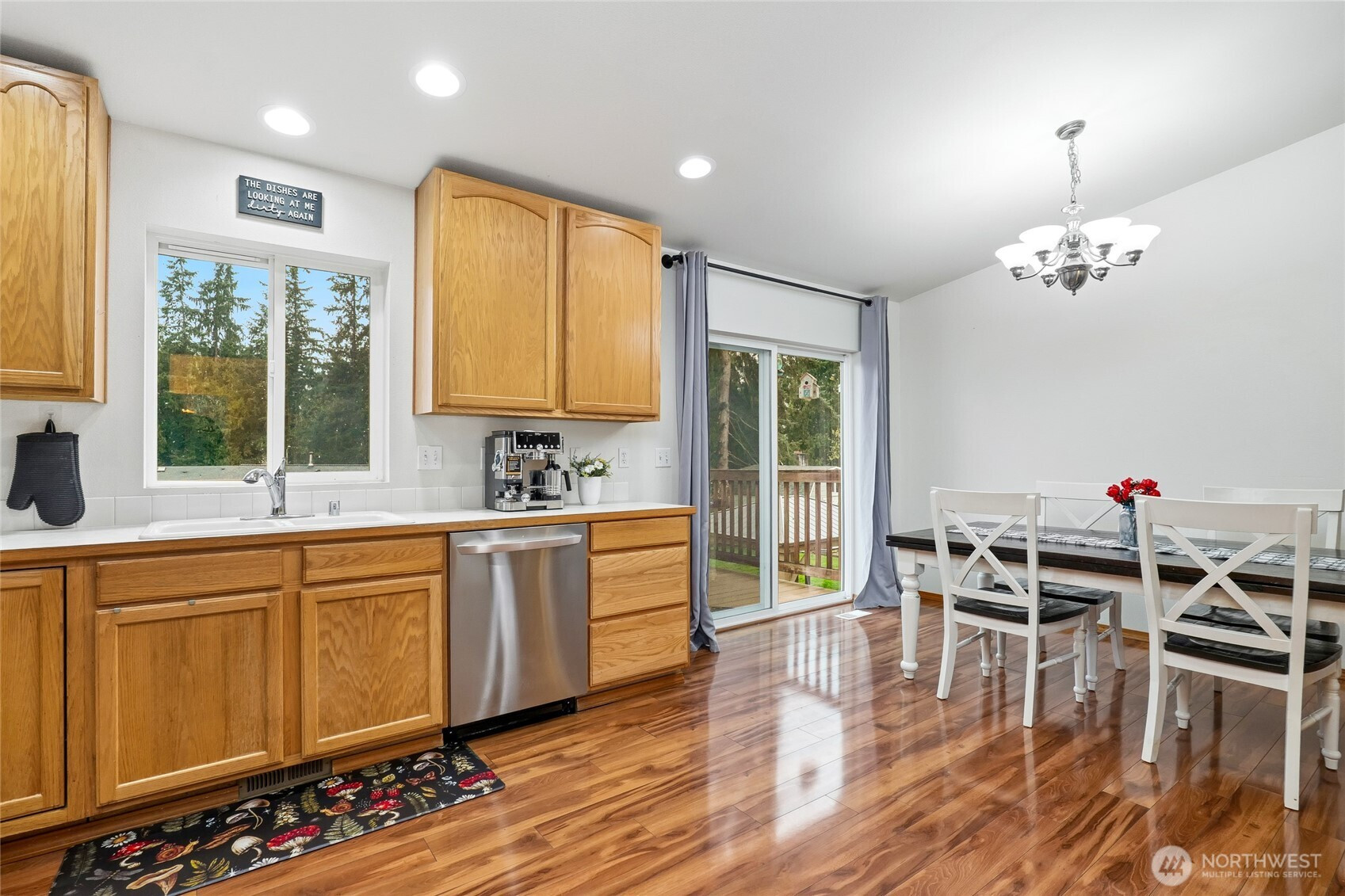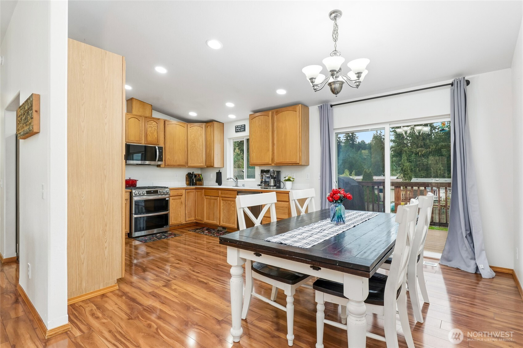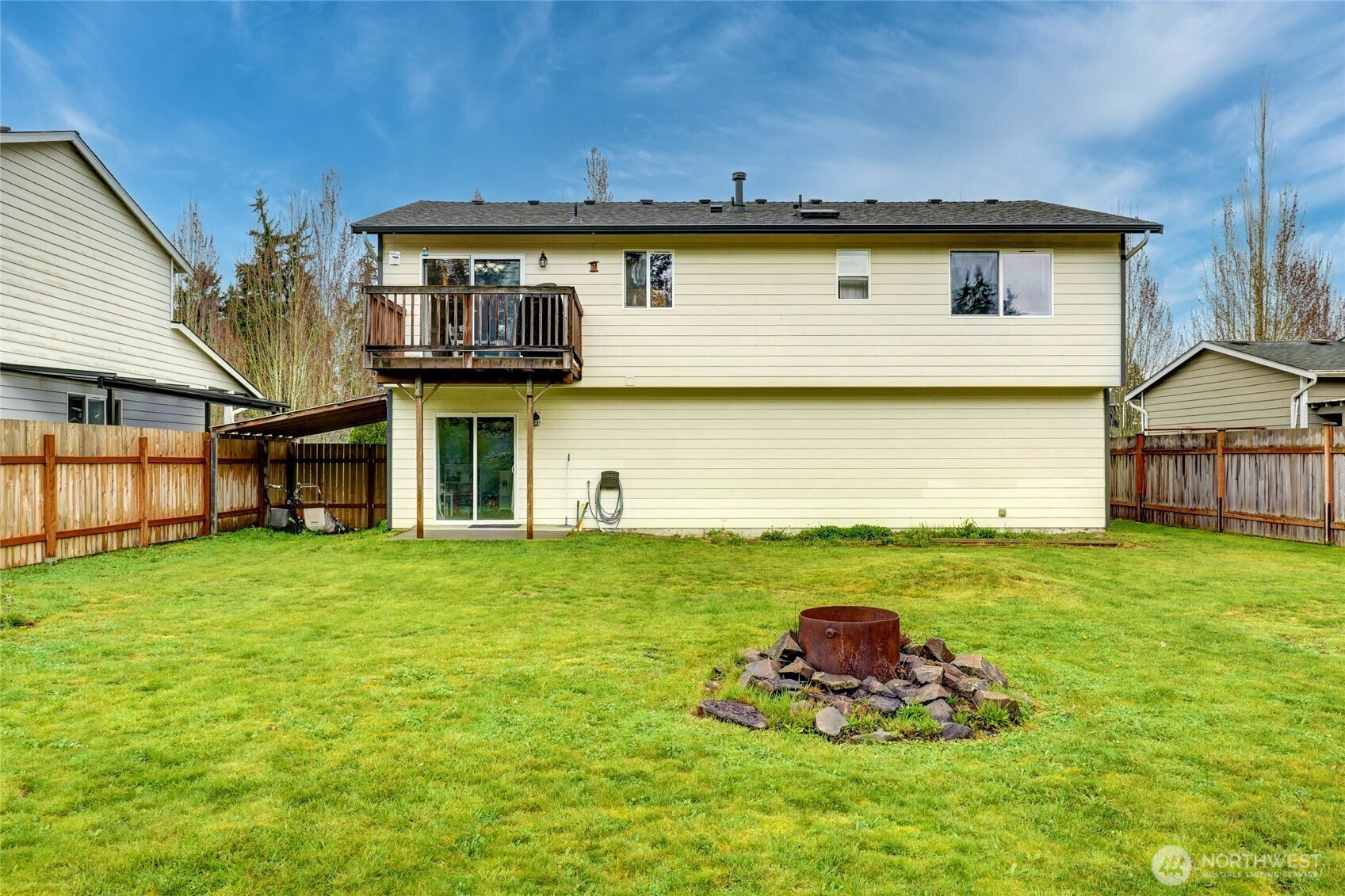 Step into a beautifully maintained, spacious 5-bedroom split-level home nestled in a warm and welcoming neighborhood. From the moment you enter, you’ll be drawn to the living room, where soaring vaulted ceilings and a cozy gas fireplace create the perfect setting for both relaxation and entertaining. The kitchen features newer stainless-steel appliances, making meal prep both stylish and convenient. Just off the dining area, a sliding door opens to a deck overlooking a large, fully fenced backyard—an ideal space for gatherings, play, or simply enjoying the outdoors in privacy. Also on the main level, the primary suite offers comfort and convenience with its own ensuite bath, accompanied by two additional bedrooms and a full hall bath. Downstairs, you’ll find a versatile layout with two more bedrooms, a spacious laundry room with a 3/4 bath, and direct backyard access—perfect for guests, multi-generational living, or a home office setup. With abundant storage throughout and a generous two-car garage, this home combines functionality, comfort, and charm—ready for you to move in and make it your own. Every August, watch the fabulous Arlington Air Show from your backyard!