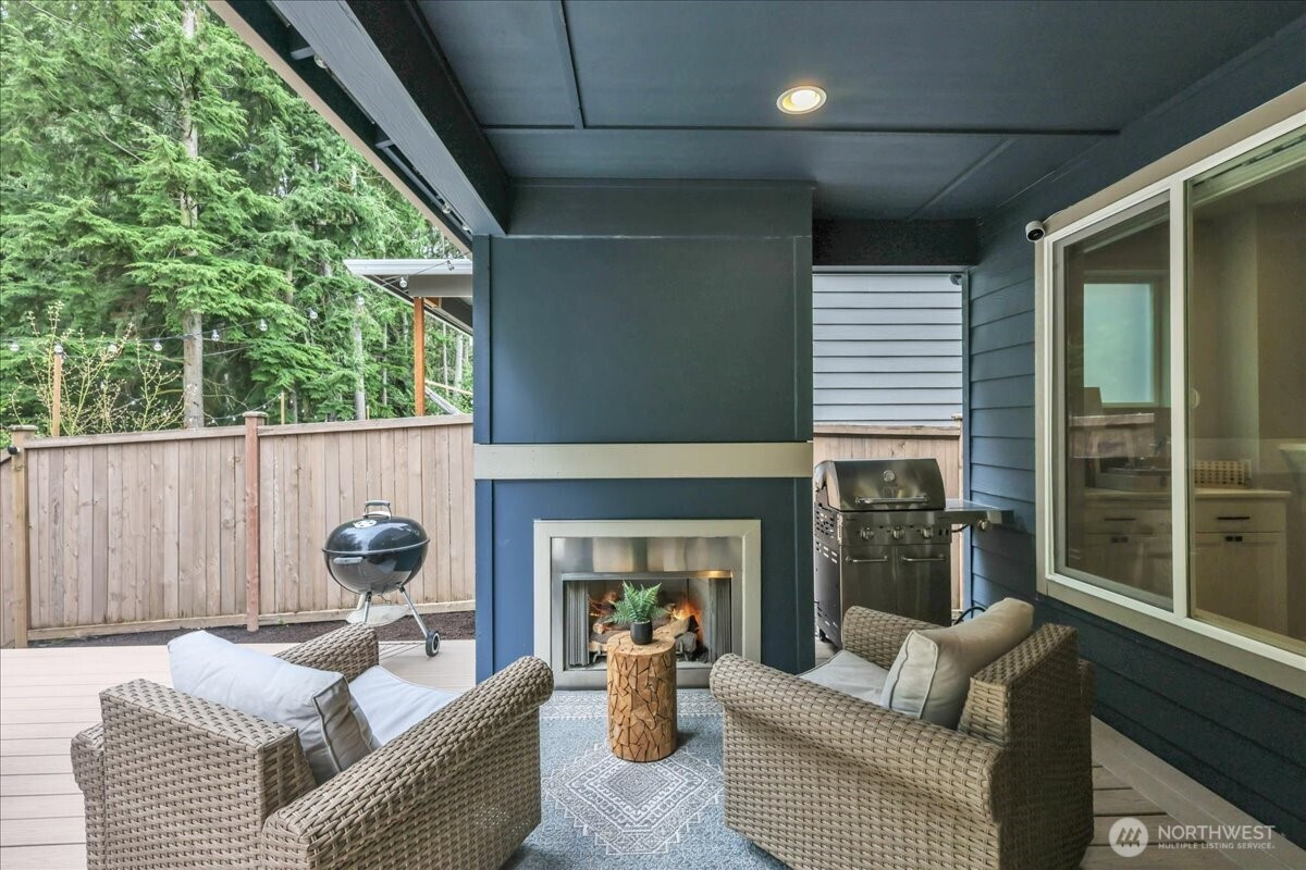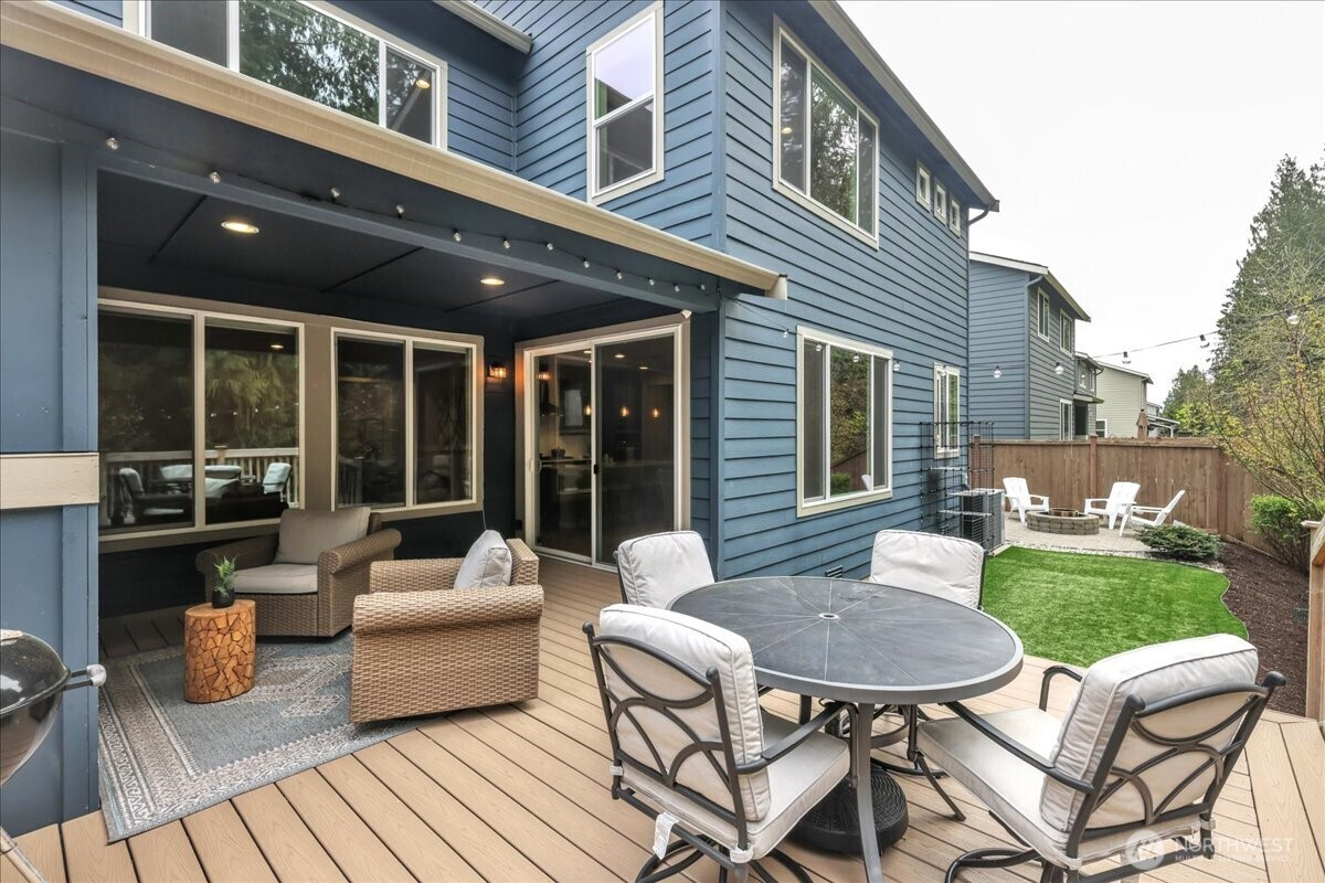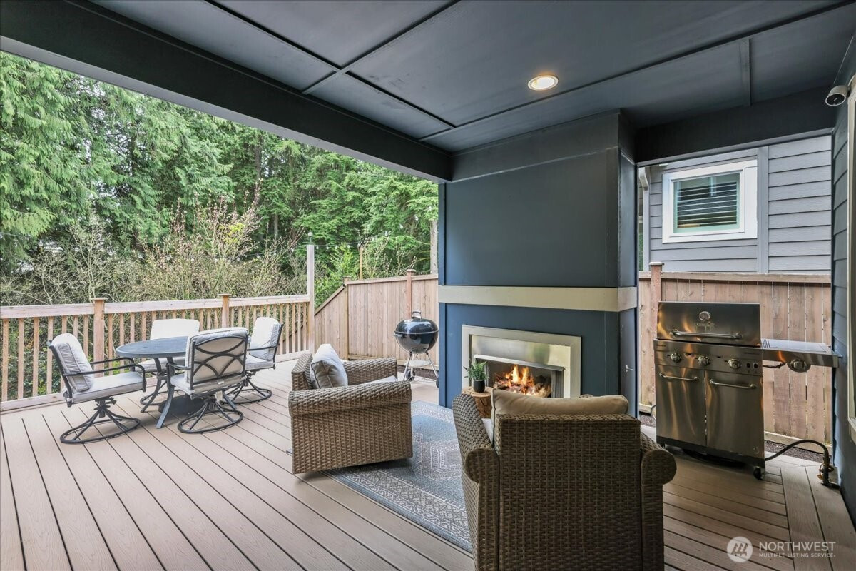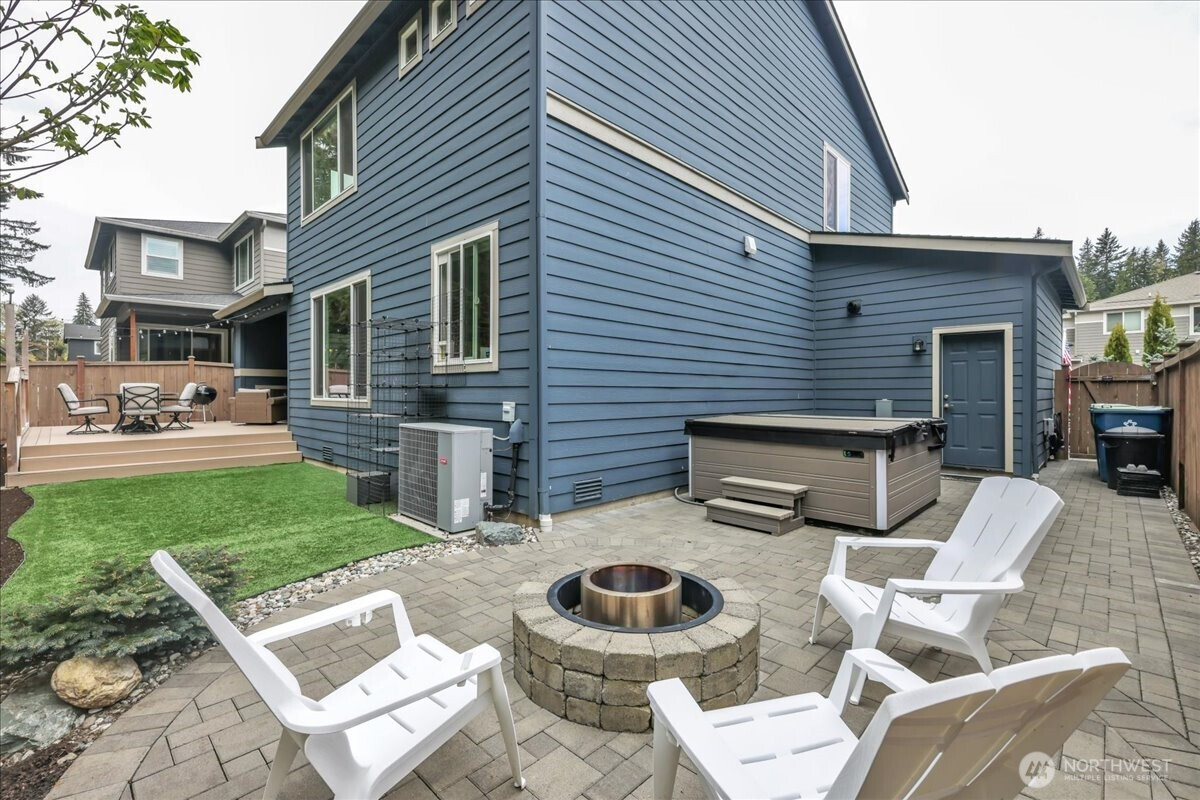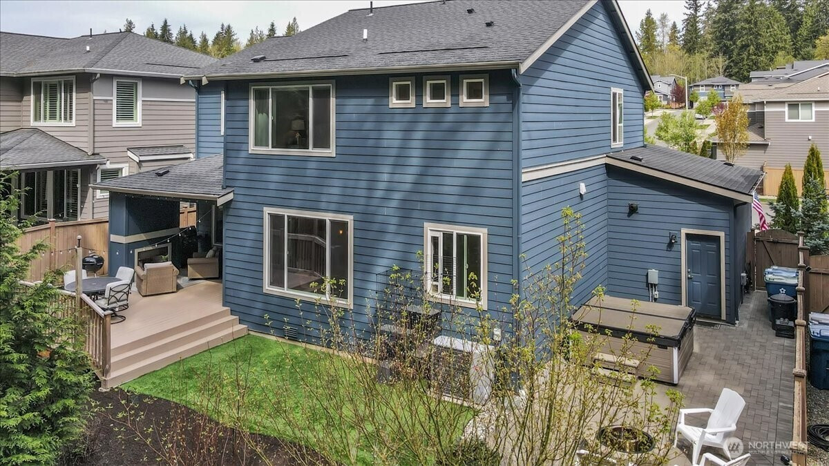 Better than new & dialed in to perfection—this exquisite Pulte/Easton Cove resale delivers the upgrades you want without the wait! Meticulously maintained w/a smart, flexible layout: main floor office + bonus office nook, spacious dining, & a light-filled great room w/lovely gas fireplace designed for everyday living & entertaining. The chef’s kitchen shines w/gorgeous grey cabinetry, 6-burner gas range, SS appliances, farmhouse sink & a HUGE pantry. Mudroom w/built-ins keeps life organized. Step outside to your private greenbelt retreat—$30K Trex-style deck + covered deck with outdoor fireplace - needed for those rainy days! Newer Olympic 7' hot tub for year-round soaking & ultra-low maintenance artificial turf front & back. Fully fenced for peace of mind and fully landscaped. One of the few in the community with a 3-car garage (one bay currently a gym—flooring negotiable). Upstairs: massive bonus room (projector TV stays!) & an oversized primary suite w/spa-like bath featuring an expansive full-tile shower. Three generous bedrooms and main bath round out the layout. Loaded w/modern comforts: Tesla charger, on-demand HWH, A/C, advanced networking & custom blinds throughout. Roof recently treated and landscaping refreshed. All this just minutes to town, freeways & daily conveniences—luxury, function & ease in one exceptional home! If you have been hoping to buy in this coveted community now is the time - this will not last with this level of exceptional quality!