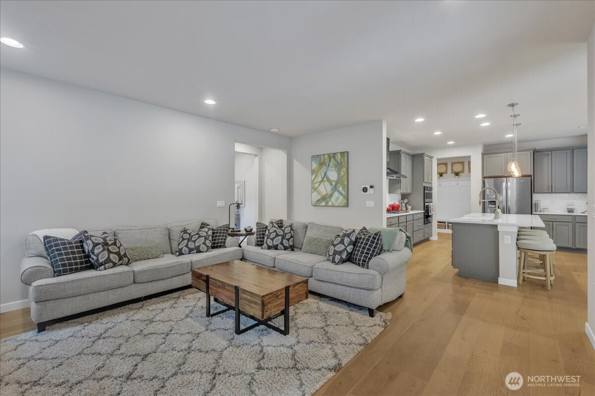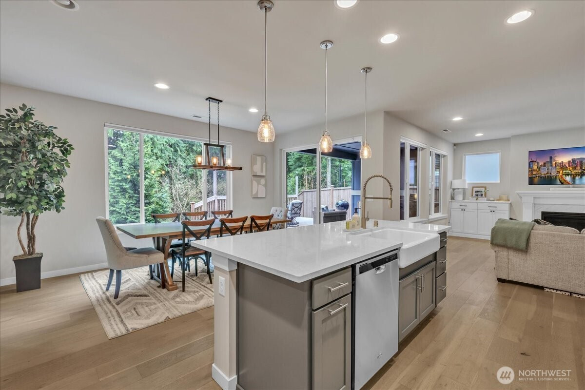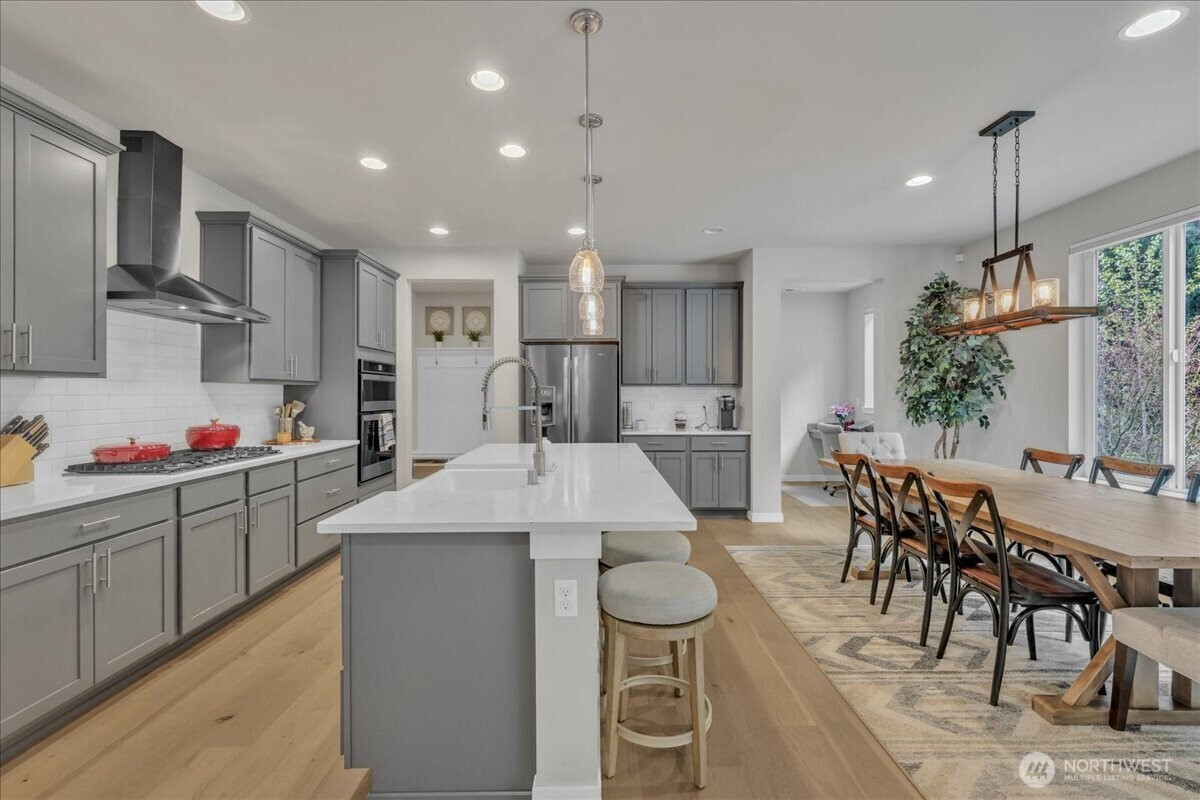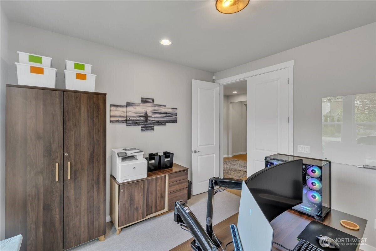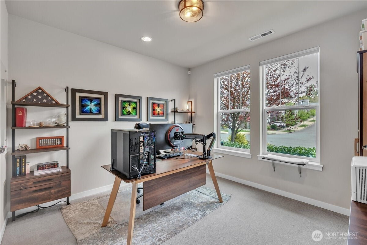 Better than new & dialed in to perfection—this exquisite Pulte/Easton Cove resale delivers the upgrades you want without the wait! Meticulously maintained w/a smart, flexible layout: main floor office + bonus office nook, spacious dining, & a light-filled great room w/lovely gas fireplace designed for everyday living & entertaining. The chef’s kitchen shines w/gorgeous grey cabinetry, 6-burner gas range, SS appliances, farmhouse sink & a HUGE pantry. Mudroom w/built-ins keeps life organized. Step outside to your private greenbelt retreat—$30K Trex-style deck + covered deck with outdoor fireplace - needed for those rainy days! Newer Olympic 7' hot tub for year-round soaking & ultra-low maintenance artificial turf front & back. Fully fenced for peace of mind and fully landscaped. One of the few in the community with a 3-car garage (one bay currently a gym—flooring negotiable). Upstairs: massive bonus room (projector TV stays!) & an oversized primary suite w/spa-like bath featuring an expansive full-tile shower. Three generous bedrooms and main bath round out the layout. Loaded w/modern comforts: Tesla charger, on-demand HWH, A/C, advanced networking & custom blinds throughout. Roof recently treated and landscaping refreshed. All this just minutes to town, freeways & daily conveniences—luxury, function & ease in one exceptional home! If you have been hoping to buy in this coveted community now is the time - this will not last with this level of exceptional quality!