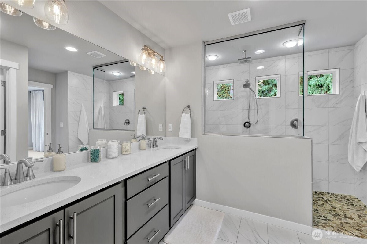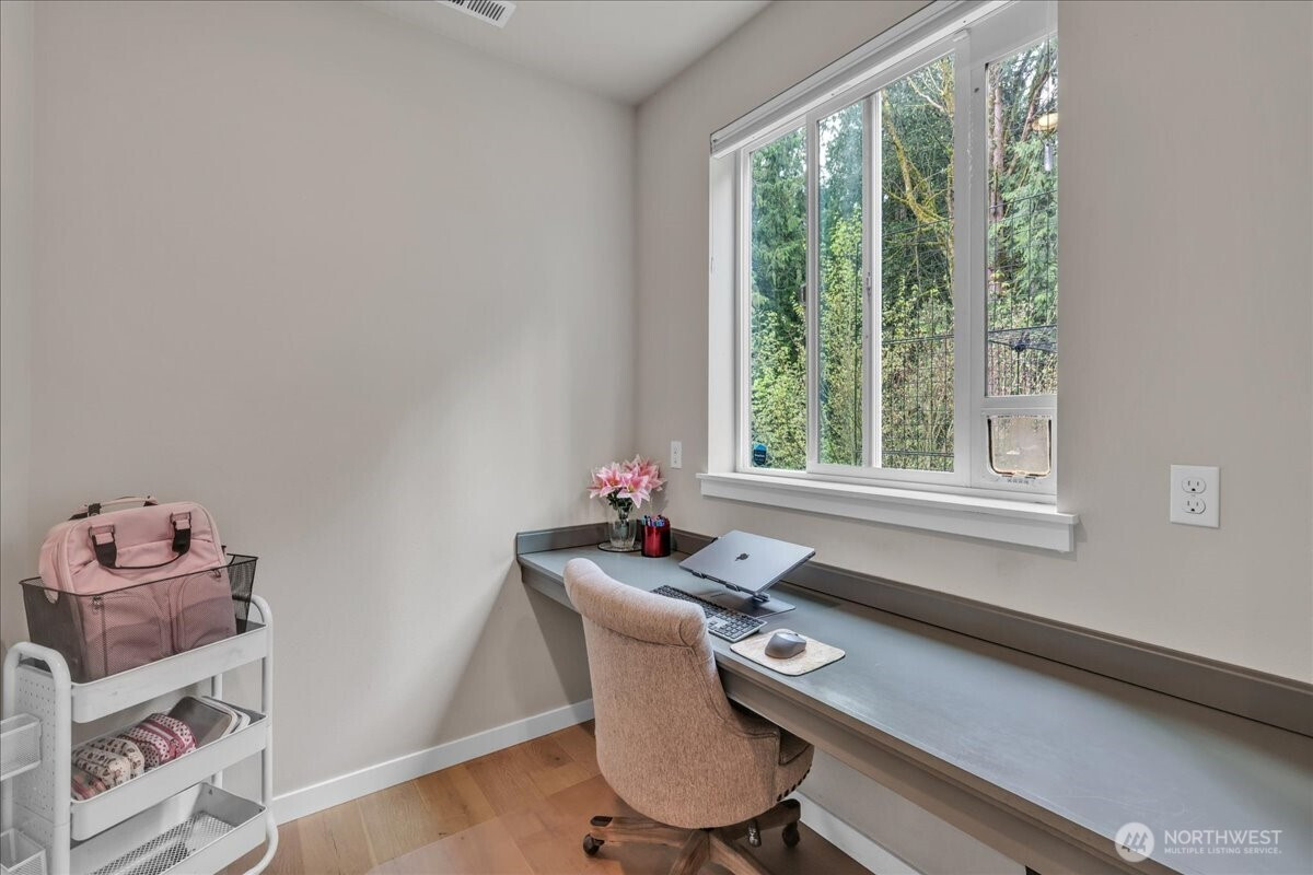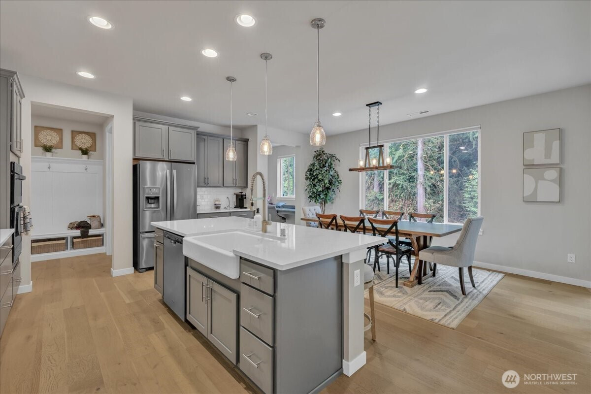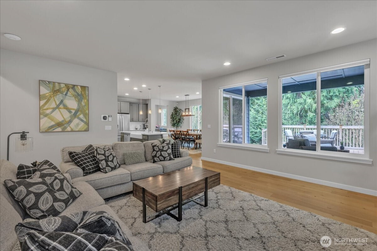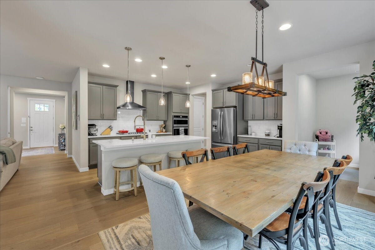 Better than new & dialed in to perfection—this exquisite Pulte/Easton Cove resale delivers the upgrades you want without the wait! Meticulously maintained w/a smart, flexible layout: main floor office + bonus office nook, spacious dining, & a light-filled great room w/lovely gas fireplace designed for everyday living & entertaining. The chef’s kitchen shines w/gorgeous grey cabinetry, 6-burner gas range, SS appliances, farmhouse sink & a HUGE pantry. Mudroom w/built-ins keeps life organized. Step outside to your private greenbelt retreat—$30K Trex-style deck + covered deck with outdoor fireplace - needed for those rainy days! Newer Olympic 7' hot tub for year-round soaking & ultra-low maintenance artificial turf front & back. Fully fenced for peace of mind and fully landscaped. One of the few in the community with a 3-car garage (one bay currently a gym—flooring negotiable). Upstairs: massive bonus room (projector TV stays!) & an oversized primary suite w/spa-like bath featuring an expansive full-tile shower. Three generous bedrooms and main bath round out the layout. Loaded w/modern comforts: Tesla charger, on-demand HWH, A/C, advanced networking & custom blinds throughout. Roof recently treated and landscaping refreshed. All this just minutes to town, freeways & daily conveniences—luxury, function & ease in one exceptional home! If you have been hoping to buy in this coveted community now is the time - this will not last with this level of exceptional quality!