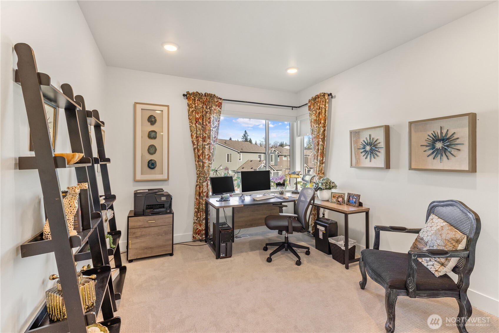 Privacy. Privacy. Privacy. Bordered on two sides by protected native growth, this exceptional Tri Pointe resale offers a rare sense of serenity where nature becomes your everyday backdrop. Light-filled interiors showcase 9-foot ceilings, expansive windows and refined architectural details throughout. The thoughtfully designed main floor features a private office and guest suite ideal for visiting guests. The gourmet kitchen is equipped with quartz countertops, an oversized walk-in pantry and generous prep space perfect for both daily living and entertaining. Extensively upgraded with high-quality finishes and thoughtful enhancements throughout this home reflects pride of ownership and elevated design at every turn. Step outside to a secluded backyard retreat with a spacious patio designed to capture beautiful sunset views. Upstairs you’ll find three bedrooms plus a versatile bonus room. The primary suite offers a spa-inspired five-piece bath with a soaking tub creating a peaceful escape at the end of the day. Impeccably maintained and move-in ready, this home blends comfort, sophistication and the luxury of privacy in an exceptional setting.