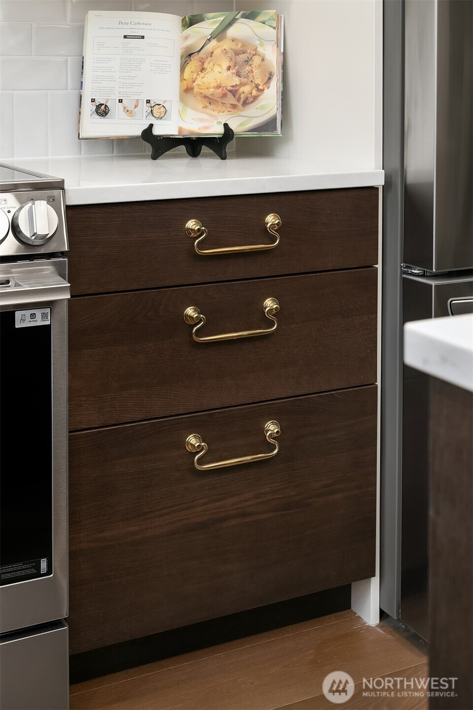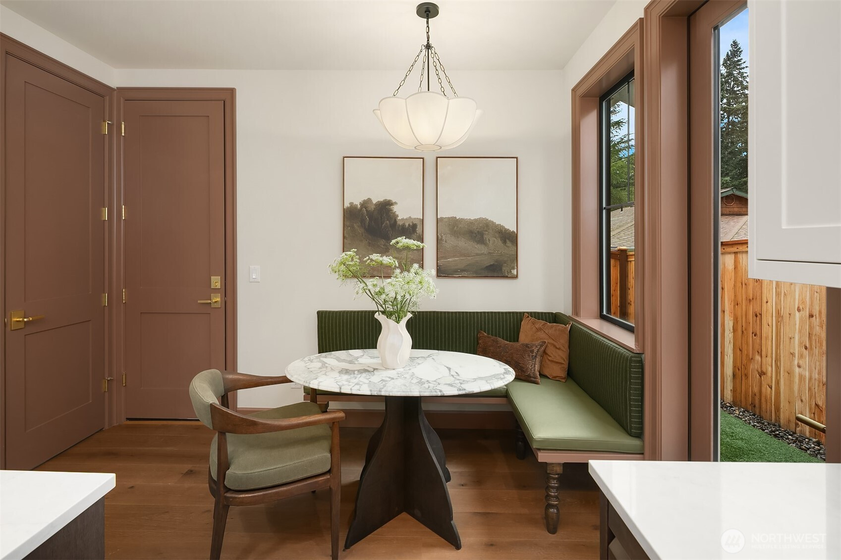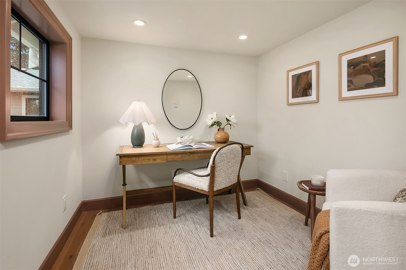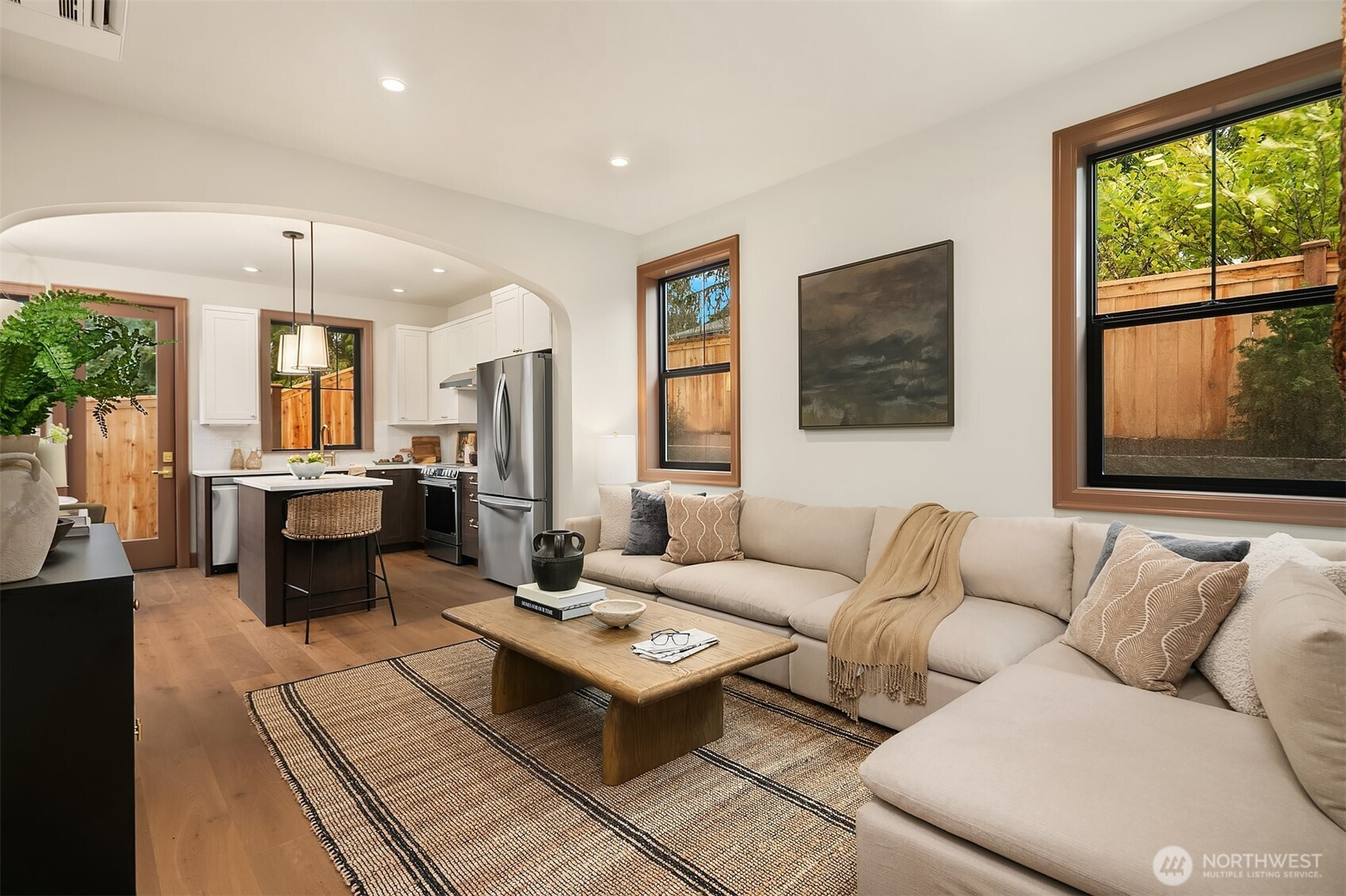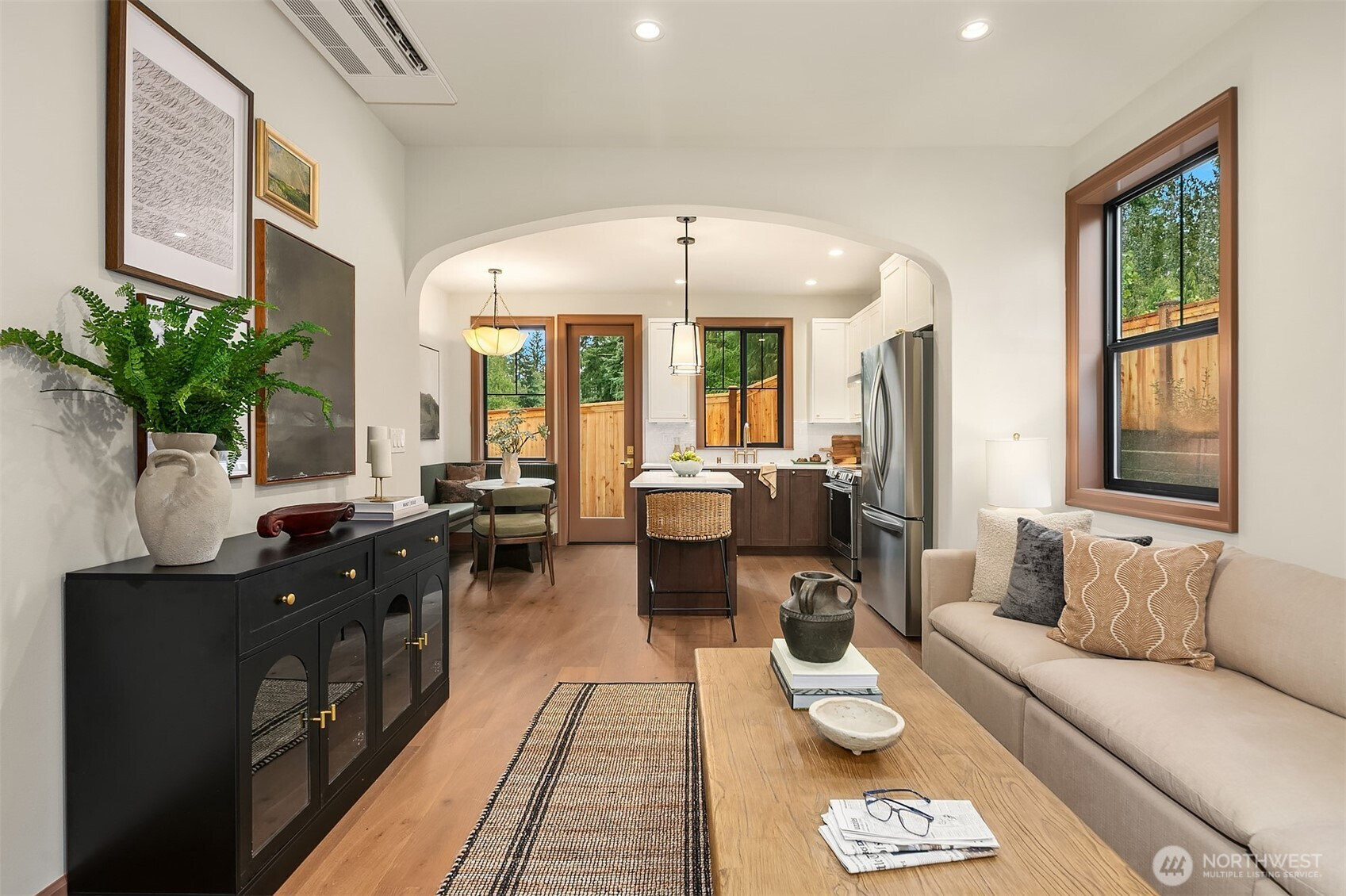 A rare Edmonds new build with the feel and finish of a custom home. Thoughtfully designed by Westerly, this 2-bed + den, 1,078 SF residence stands apart with timeless materials, curated details, and a level of craftsmanship rarely found in new homes today. The open main level is anchored by a statement kitchen featuring Bellmont cabinetry, warm wood lowers + ivory uppers, Zellige tile backsplash, prep island with built-in microwave, walk-in pantry, and a built-in banquette with furniture-style millwork. Rich millwork, wide-plank oak hardwoods, oversized grille windows, designer lighting, and living-finish hardware that patinas beautifully over time create warmth and character throughout. Upstairs, both bedrooms feature vaulted ceilings, while the den offers flexible space for a nursery or home office. Distinctive baths, mini-splits, mudroom nook, hidden bookcase door to mechanicals, heated 1-car garage with room for storage or gym setup, EV-ready wiring, and a fully fenced turf backyard complete this truly special offering. A beautifully executed, design-forward home in one of Edmonds’ most desirable settings.