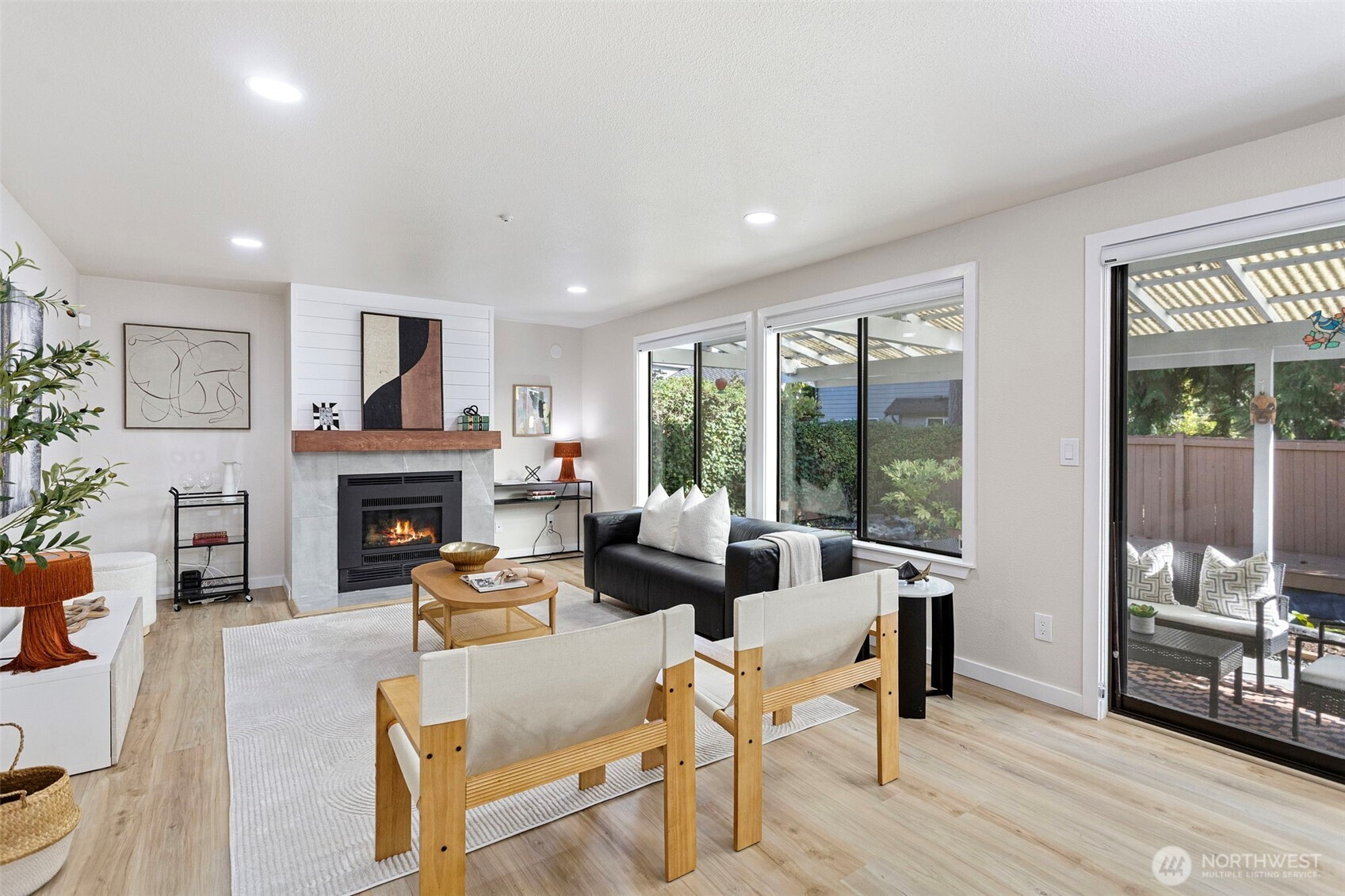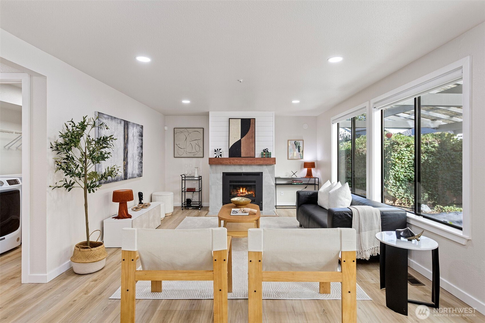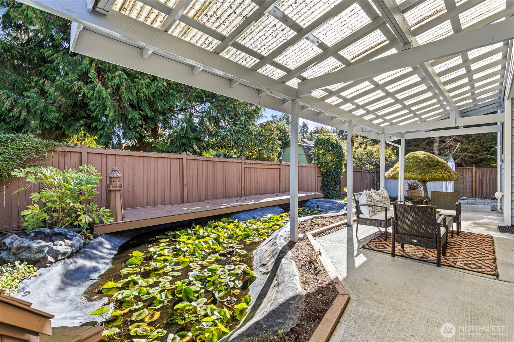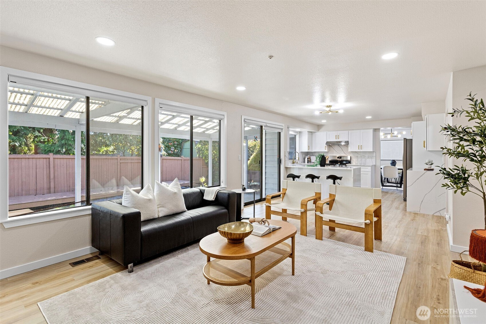 Impeccably maintained 2 story home in sought-after Poplar Ridge neighborhood. This tastefully upgraded home offers an open concept with beautiful new LVP flooring & interior paint throughout. The great room flows directly into the chef's kitchen with new cabinets, quartz countertops & large waterfall island. Formal living room, dining room & large patio are perfect for entertaining. Upstairs has a primary bedroom with an updated bathroom, 2 beds & full bath. All baths have new vanities, countertops & fixtures. 2019 furnace & water heater. 2024 new exterior paint. 2 car garage, & fully fenced yard with a large pond. Great neighborhood in a cul-de-sac. Near I5,405, Alderwood Mall, Costco, Lynnwood light rail, shopping, dining & more.