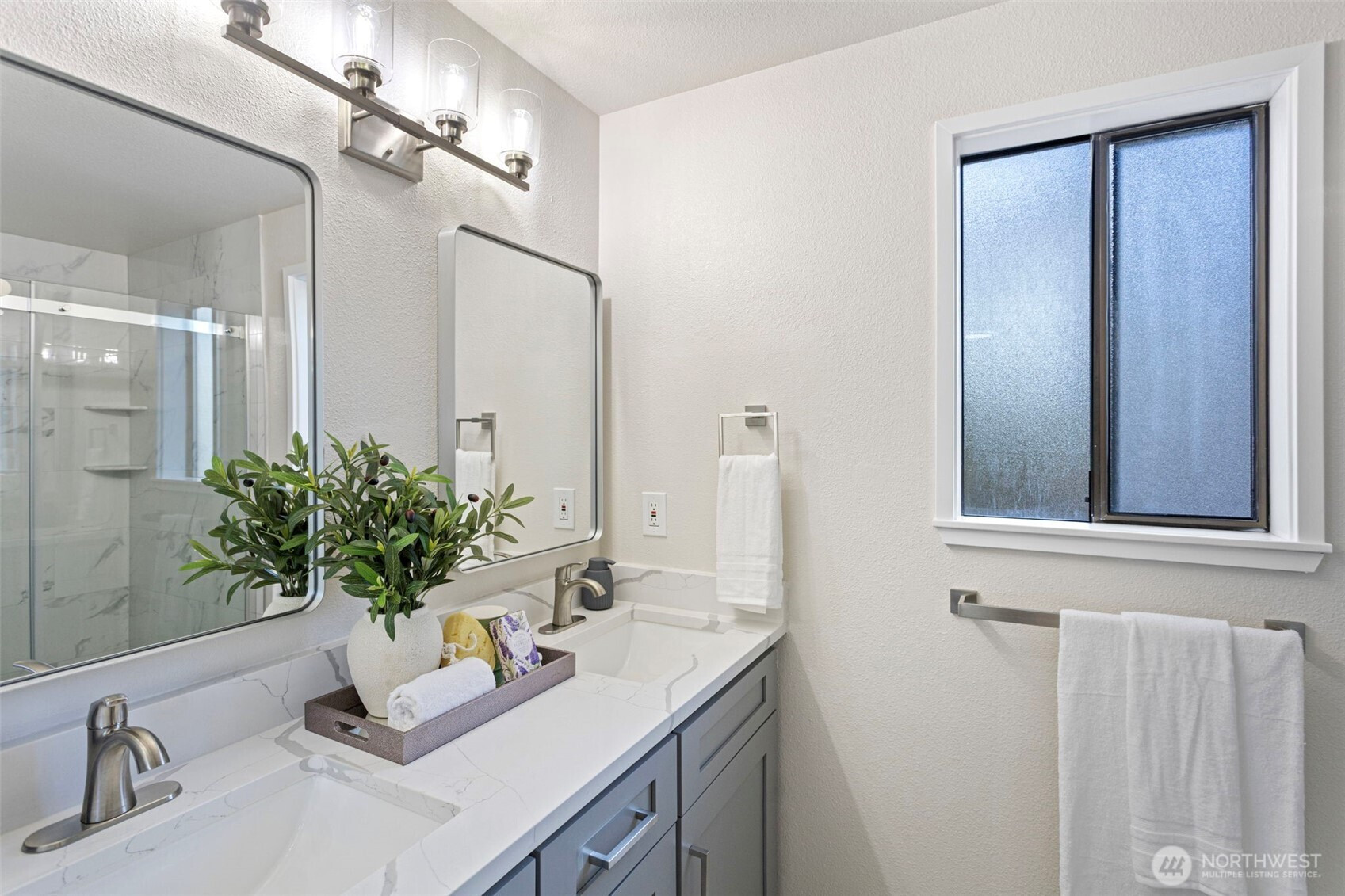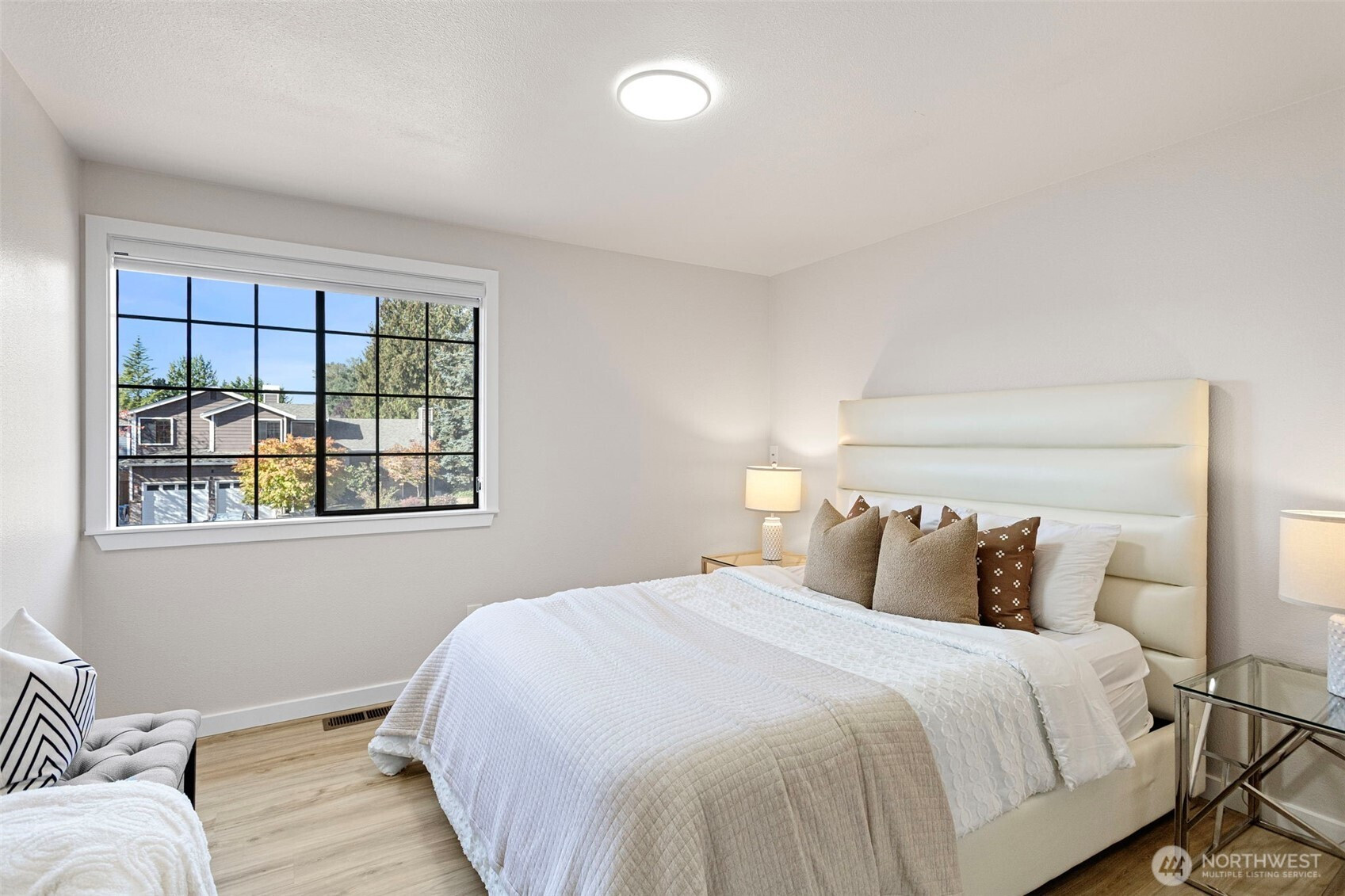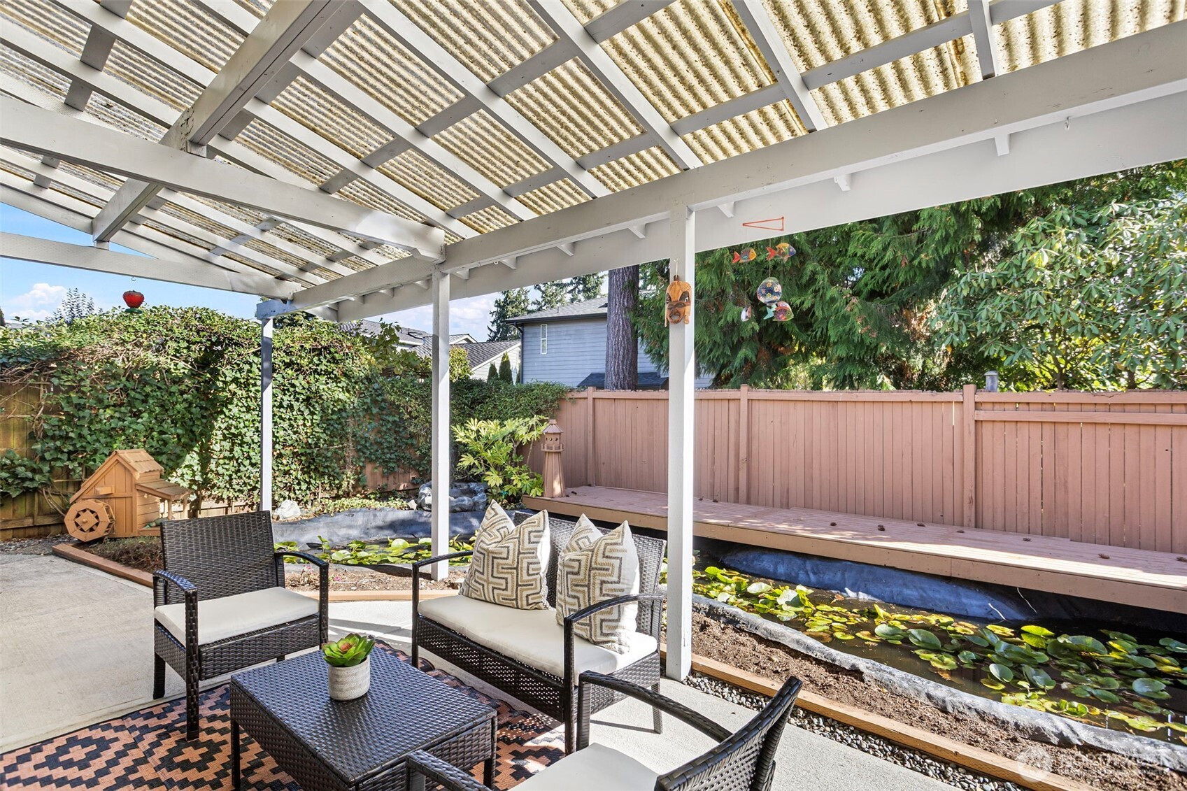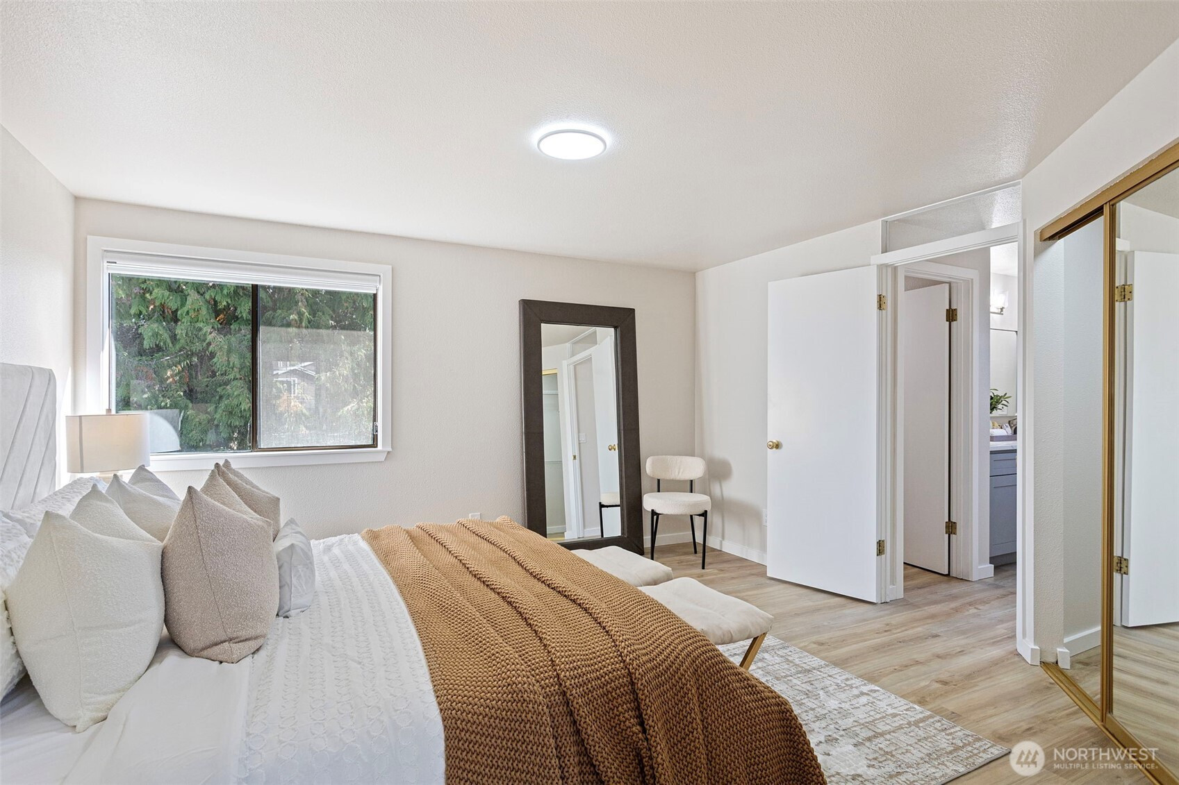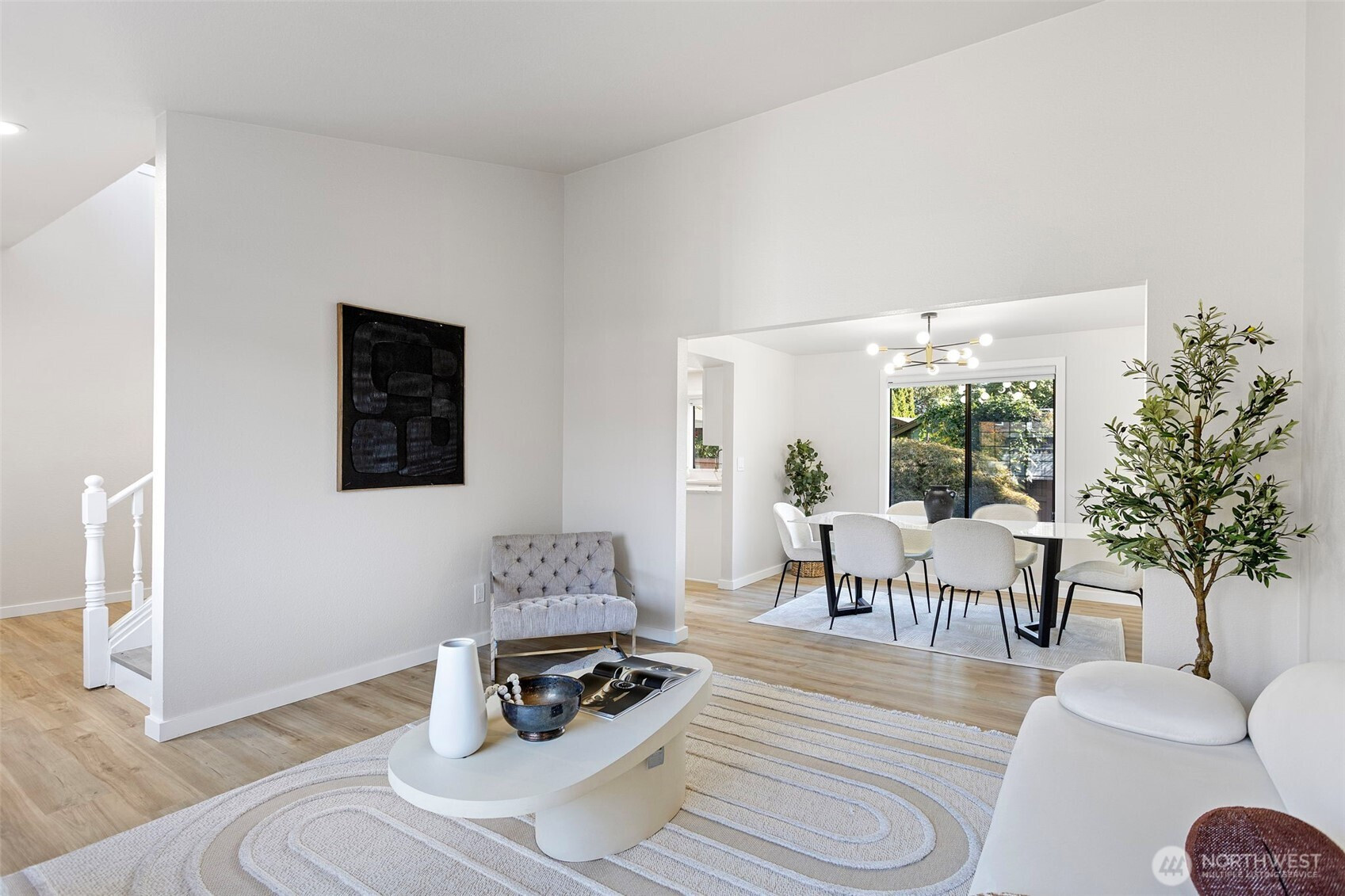 Impeccably maintained 2 story home in sought-after Poplar Ridge neighborhood. This tastefully upgraded home offers an open concept with beautiful new LVP flooring & interior paint throughout. The great room flows directly into the chef's kitchen with new cabinets, quartz countertops & large waterfall island. Formal living room, dining room & large patio are perfect for entertaining. Upstairs has a primary bedroom with an updated bathroom, 2 beds & full bath. All baths have new vanities, countertops & fixtures. 2019 furnace & water heater. 2024 new exterior paint. 2 car garage, & fully fenced yard with a large pond. Great neighborhood in a cul-de-sac. Near I5,405, Alderwood Mall, Costco, Lynnwood light rail, shopping, dining & more.