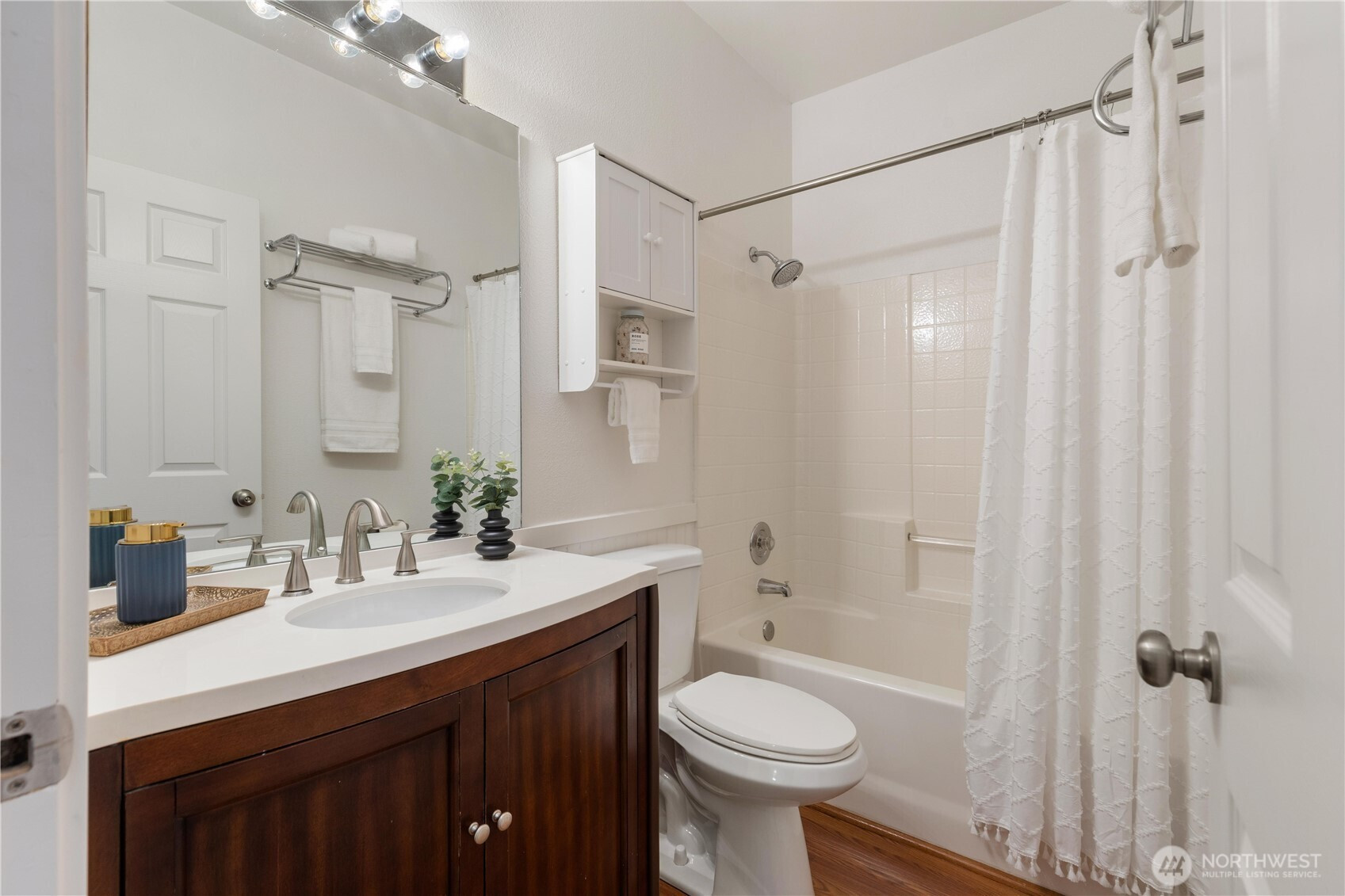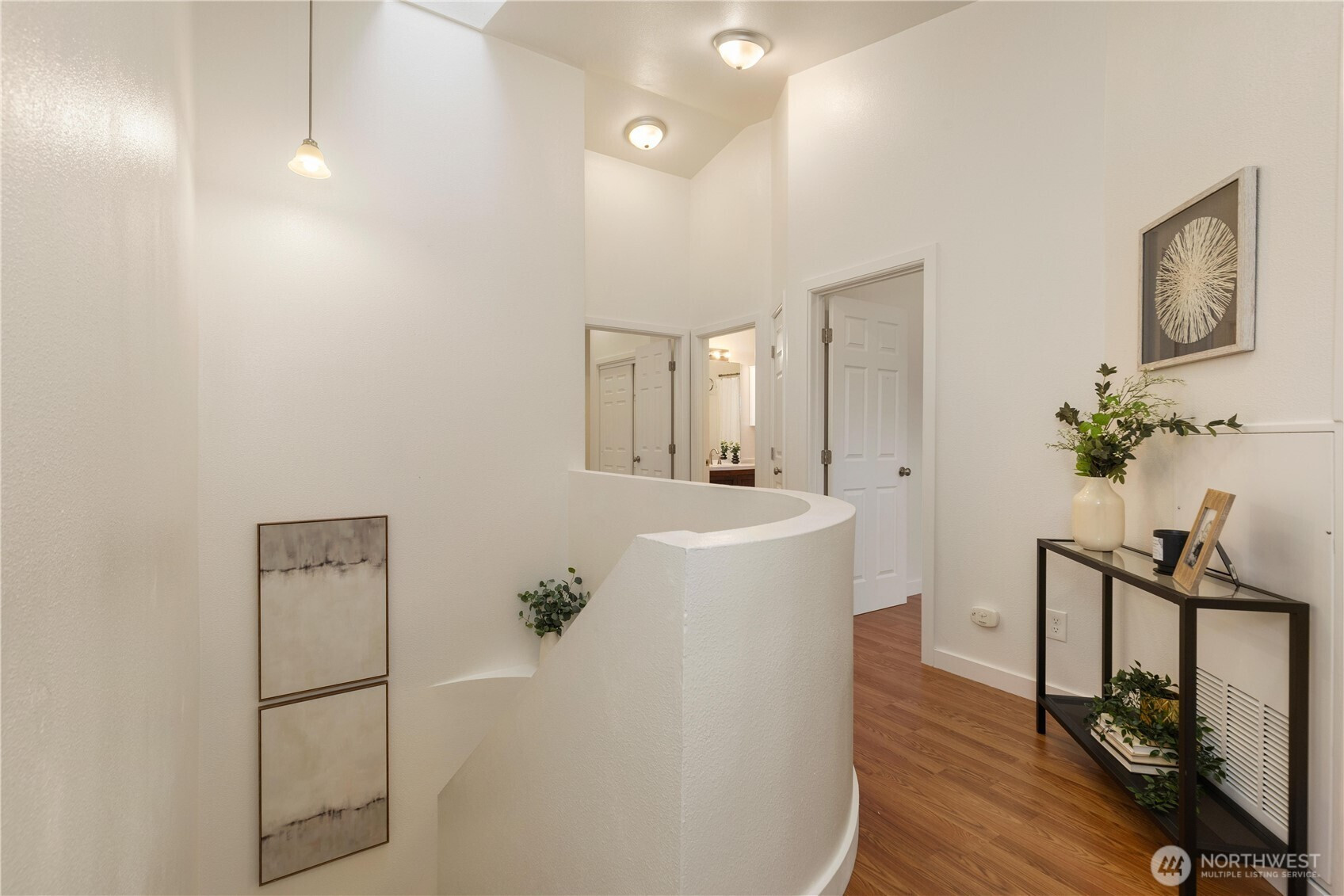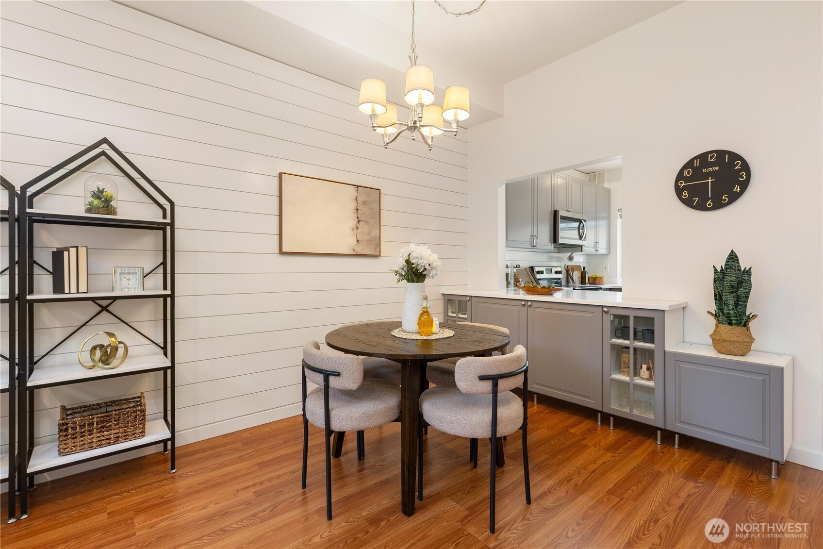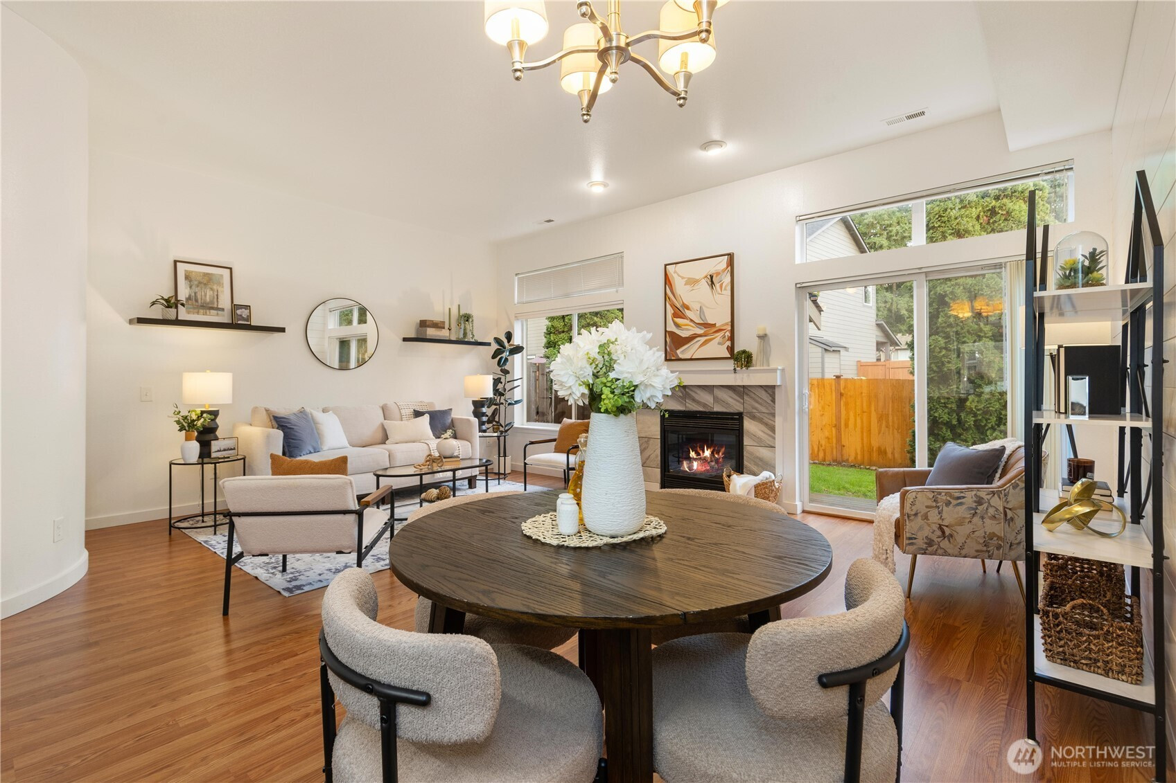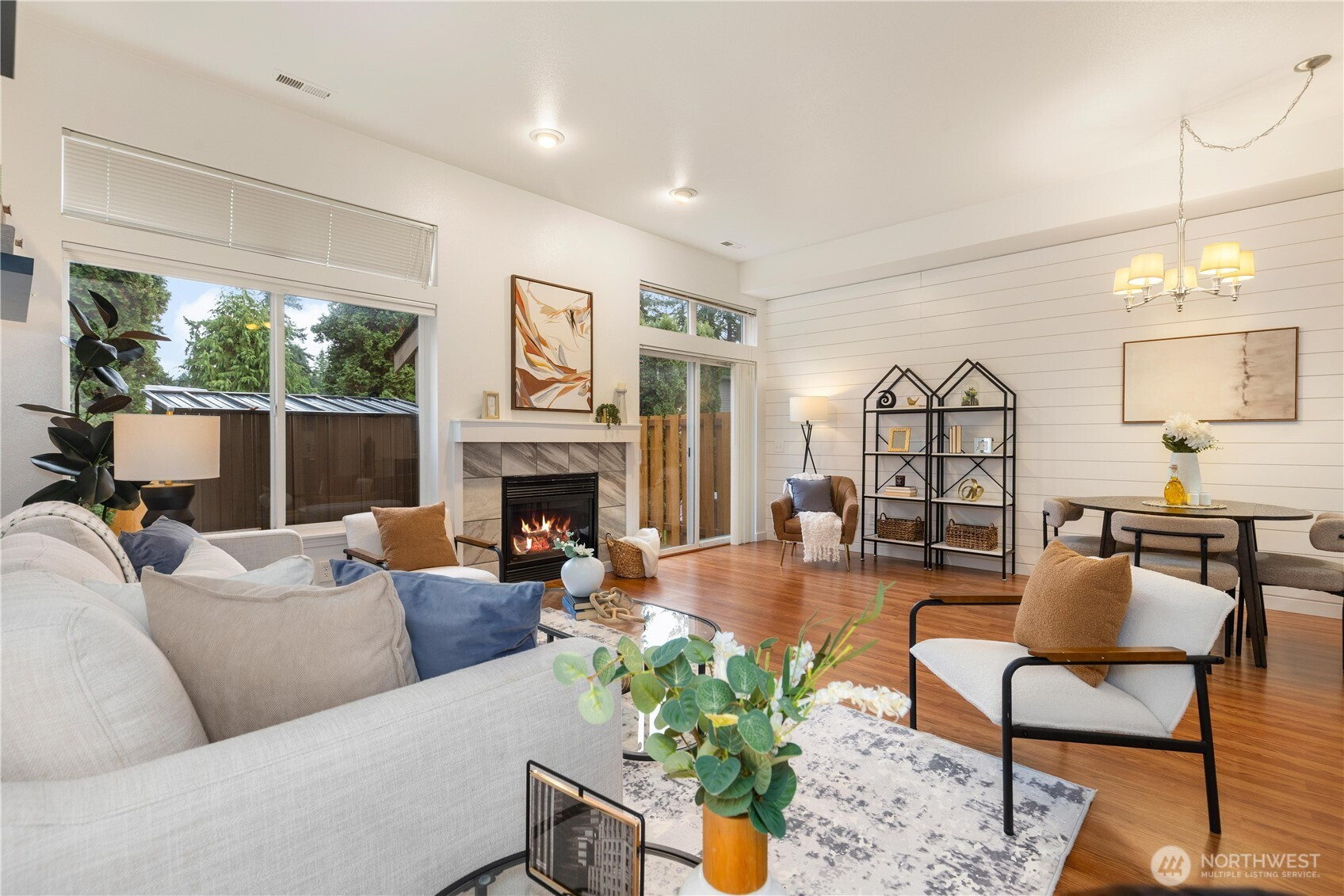 Move-in ready starter home! This bright 3-bedroom townhome-style condo lives like a single-family home. Soaring 12-foot ceilings and large windows fill the open living space with natural light, while the cozy gas fireplace makes it ideal for relaxing nights at home. The gourmet kitchen offers SS appliances and generous cabinet space. Upstairs features 3 bedrooms including a vaulted primary suite w/ updated bath & nearby laundry. Attached 1-car garage plus 2 extra dedicated parking spaces. HOA dues includes water/sewer. Located in a quiet 17-unit community within the Edmonds School District, close to parks, shopping, Alderwood Mall, Lynnwood light rail station, & easy I-5/405 access.