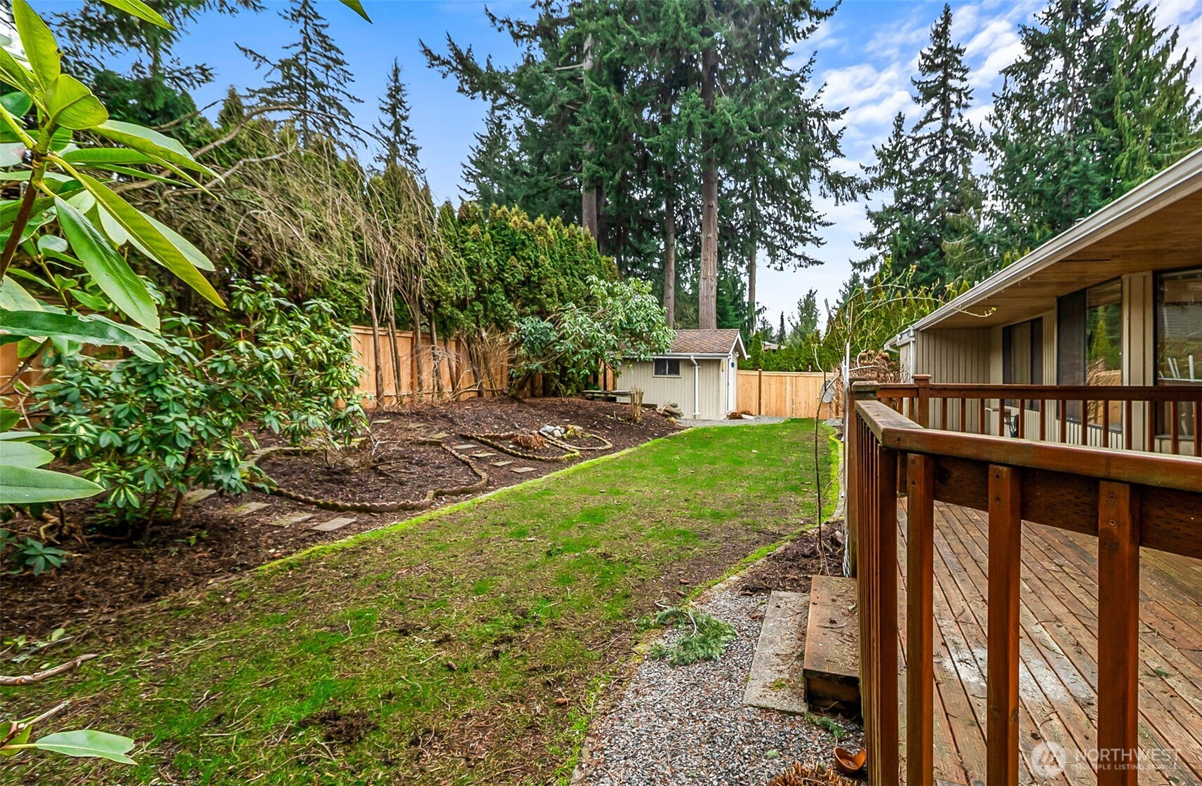 Classic 1983 rambler located in the Vine Maple community offering 2,369 sq ft of single-level living with 4 bedrooms and 2.5 bathrooms on a 9,583 sq ft lot. This well-maintained home features a spacious floor plan with generous living areas, including a formal dining room and a formal living room that has vaulted ceilings which enhances natural light and openness. The primary bedroom includes an attached bathroom and private access to the backyard. Solid construction throughout provides an excellent opportunity for cosmetic updates and personalization. The property includes an attached garage and driveway space for ample parking. The large front yard adds curb presence, while the backyard offers garden space and a storage shed for additional storage or hobby use. It is located within the award-winning Everett Public School District which is recognized for high performance and is just minutes from Mill Creek Town Center for dining, retail, and shopping. It is also close to Mill Creek Golf Course and the community offers great opportunities for walking.