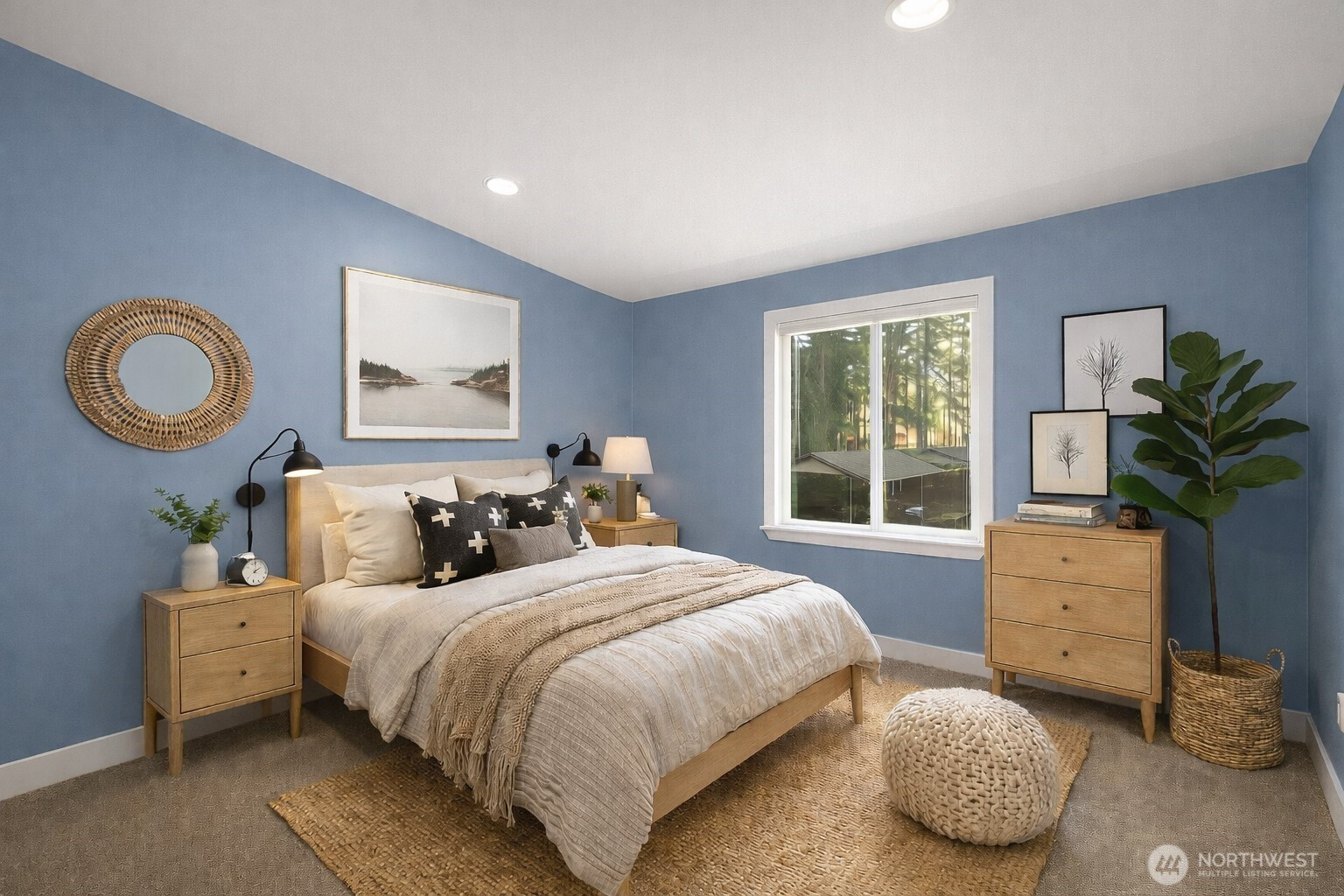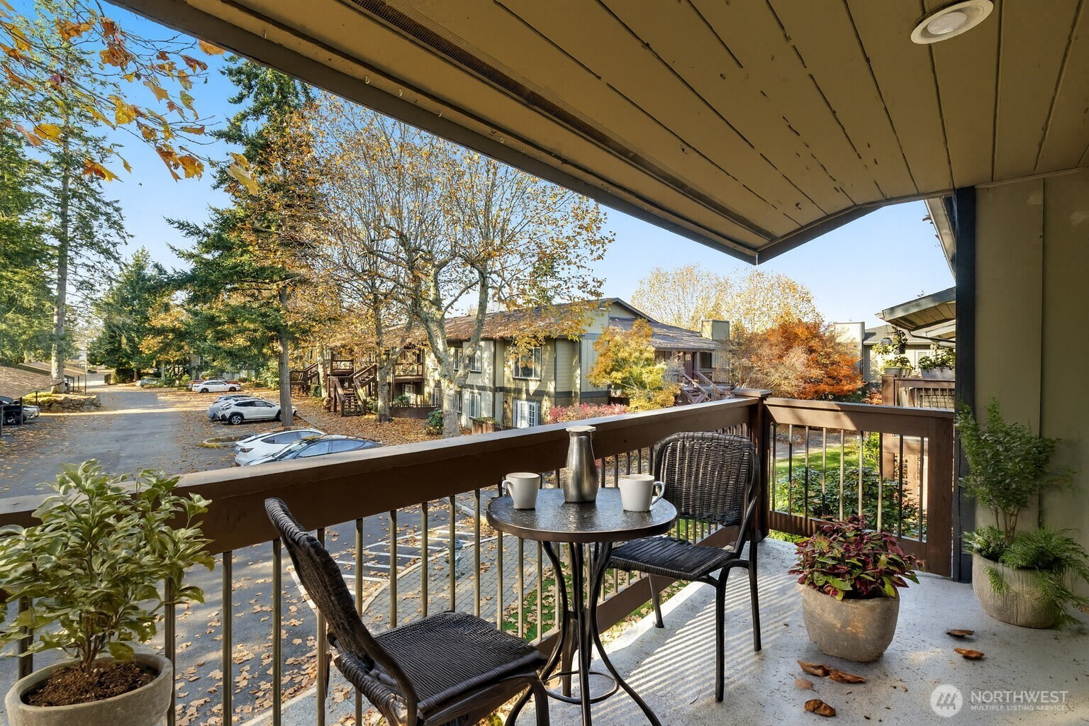 Incredible top-floor, corner unit in the beautiful, gated Axis community. This bright & airy open floorplan lives large w/ vaulted ceilings, bamboo hardwood floors, rich woodwork & NEW carpet. Stylish kitchen w/ stainless appliances + great cabinet space flows seamlessly to sunny dining area. Spacious living room features built-in electric fireplace & slider to private covered deck. 2 comfortable BRs, incl Primary w/ dream walk-in closet. Updated full bath: tile surround, Corian counters + newer LG washer/dryer. Large closets line entry hallway. Pristine condition, quality materials throughout, totally turnkey! Extremely well-maintained grounds & buildings–enjoy heated outdoor pool, community clubhouse, lush landscaping, secure lobby entrance. Well-run HOA. 2 parking spots + storage unit. Prime location just minutes to Light Rail, I-5, shopping, parks, etc. Modern living packed with value, don't miss this gem!
