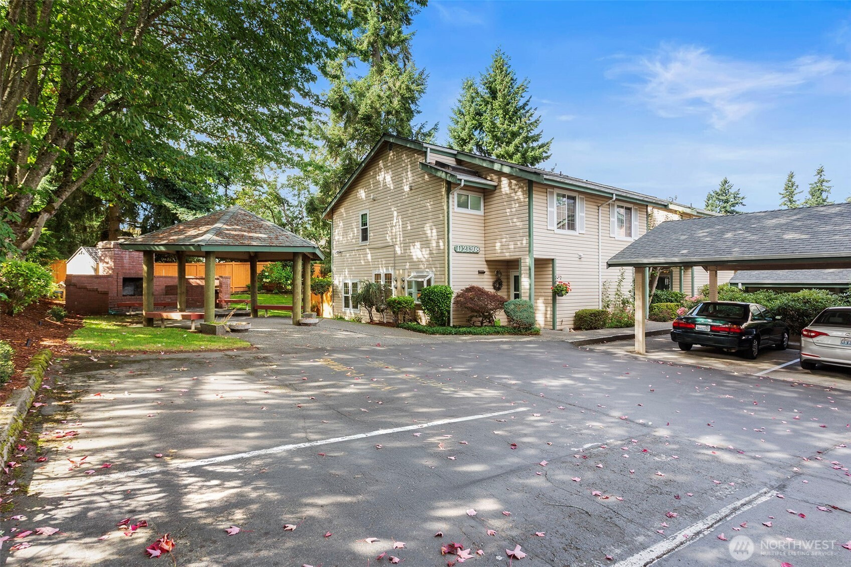 Desirable end-unit townhome in a fantastic location close to multiple light rail stations, shopping, dining, & other amenities. Downstairs features a beautifully updated kitchen, stylish tile flooring & sunken living room with a cozy wood-burning fireplace. Upstairs you’ll find the roomy Primary Suite with connecting full bathroom, soaring vaulted ceilings & custom closet built-ins. Also up are the laundry & 2nd bedroom. Private outdoor patio with storage shed, 2 dedicated parking spots including 1 covered carport space, & low HOA dues that cover water/sewer/garbage & common area maintenance. Pets are welcome! Small, well-maintained community of just 15 homes with low turnover.