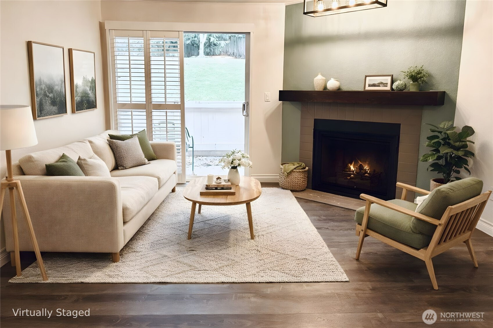 (503) 893-8874One of THE best units in the community! Fronting the peaceful parklike area, perfect for watching fall leaves change colors or letting fur babies have a little playtime! Step inside & you'll find a spacious living room, LVP floors, wood burning fireplace & slider w/plantation shutters leading to the patio w/turf & gate to the grassy area. The quaint galley kitchen for aspiring chefs w/pot hanger, ample cabinets & stainless appliances. 2 good sized bedrooms w/2 full baths, ideal for guests or roommates. Laundry closet has full size W/D & pantry shelves. Minutes to I5 & just 6min drive to MLT light rail station off 236th, getting you downtown Seattle in under 30min! Portable A/C
